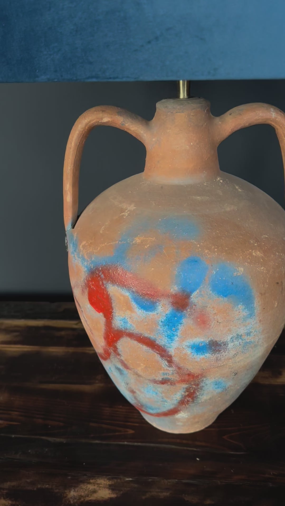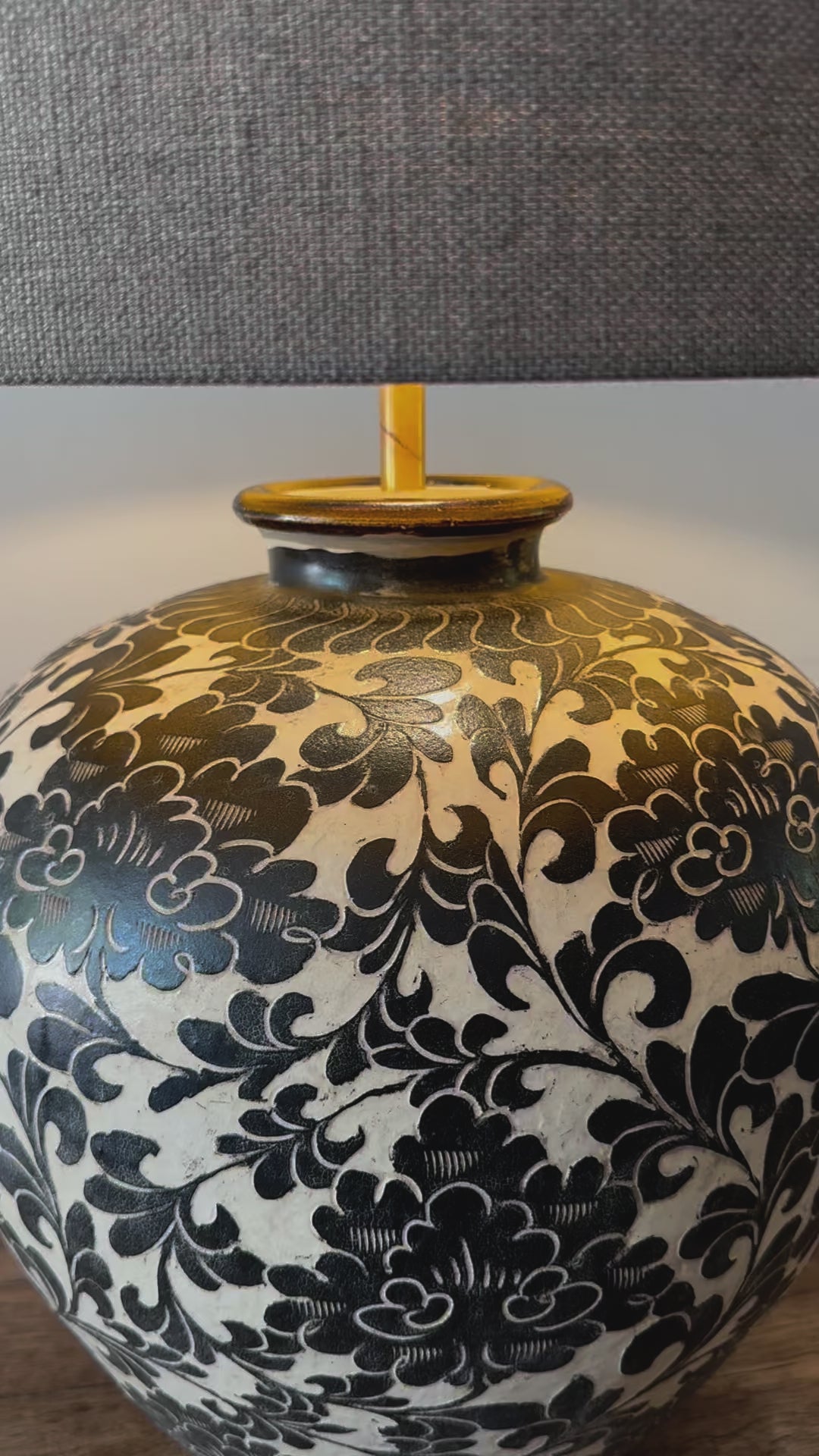• Bodenlampe antiker Oliventopf & Chintz #1