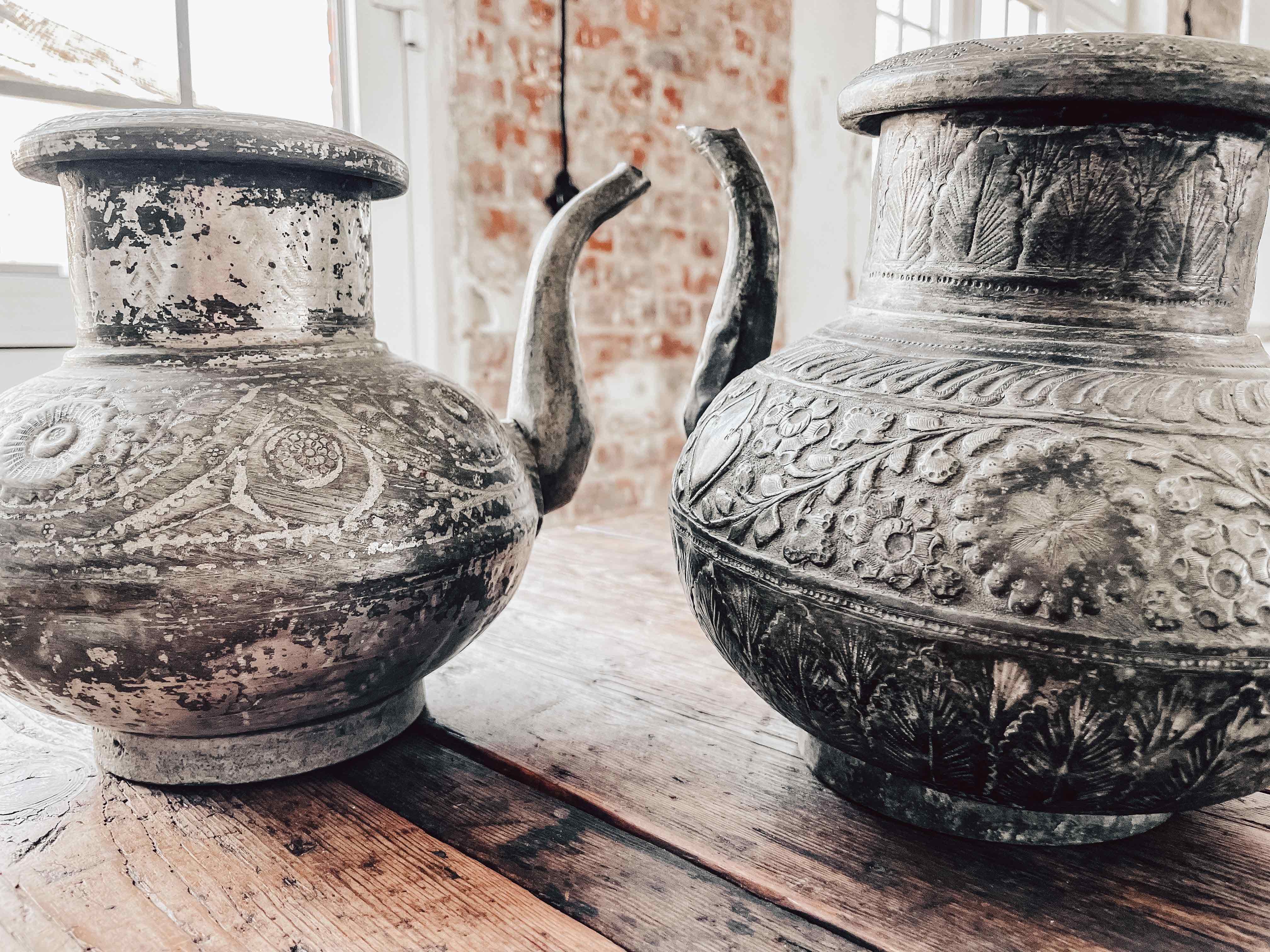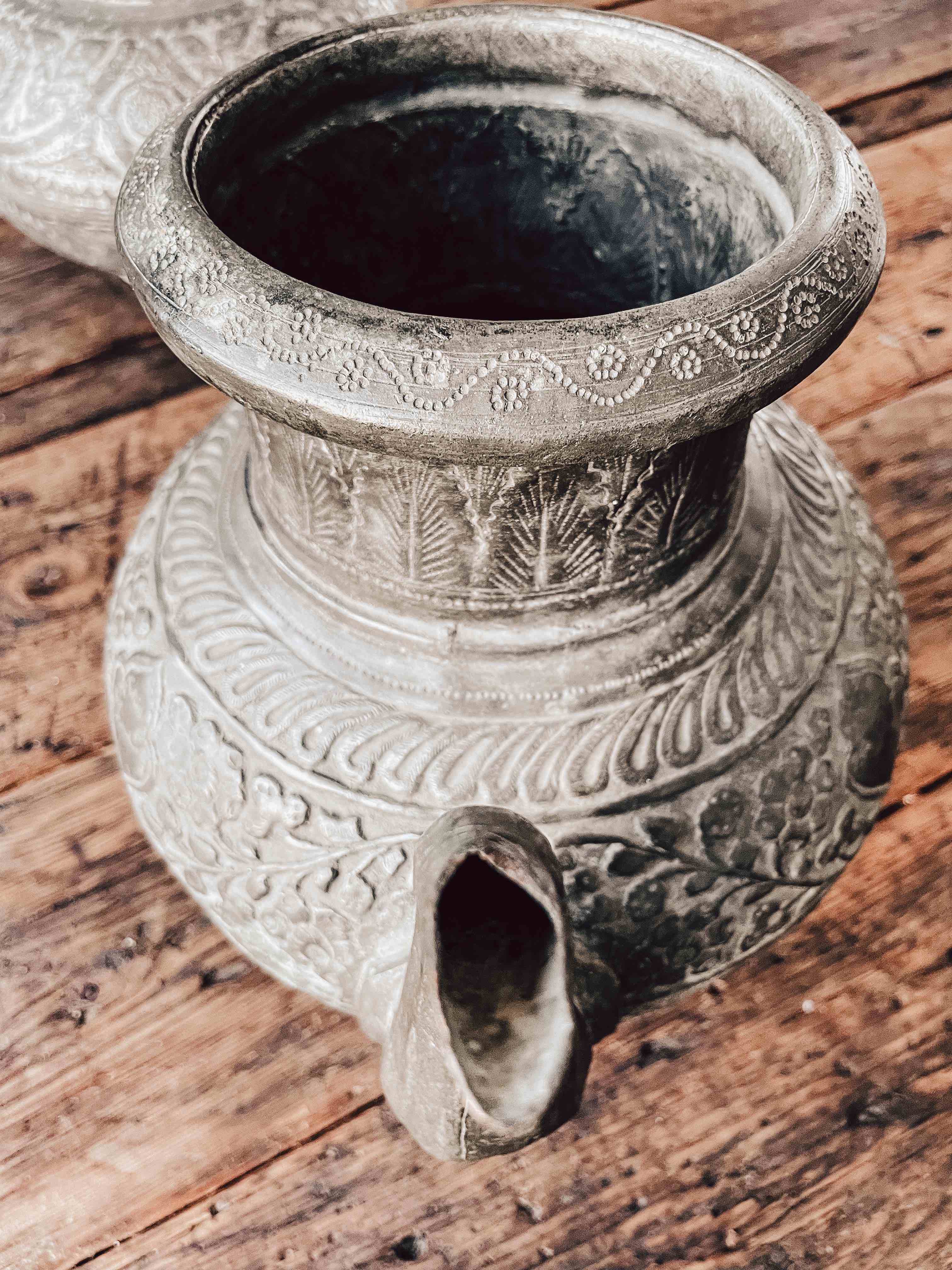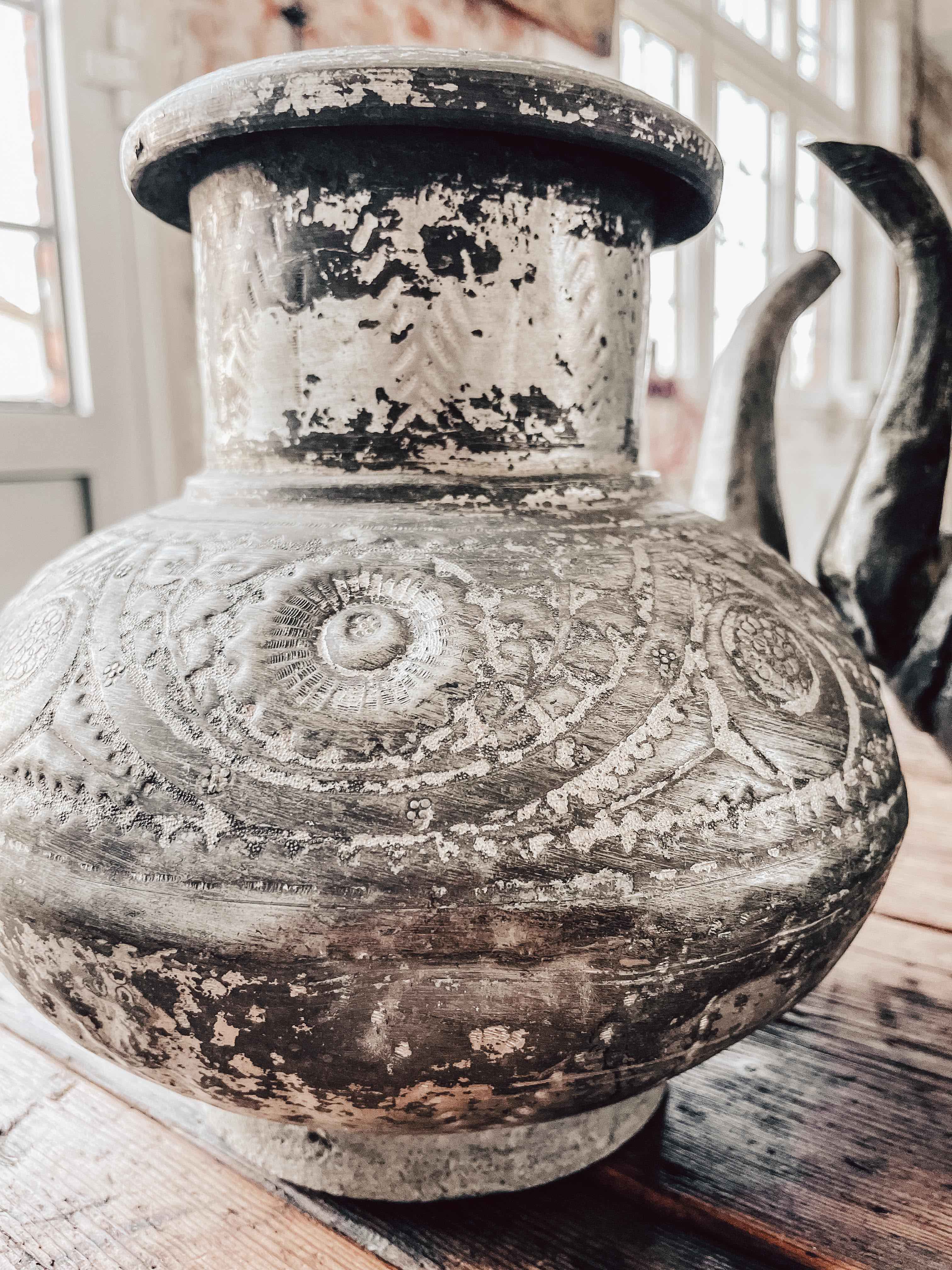There are beautiful patterns and details in this old water pot. Small bumps and scratches make everyone unique. Processed with attention to detail.