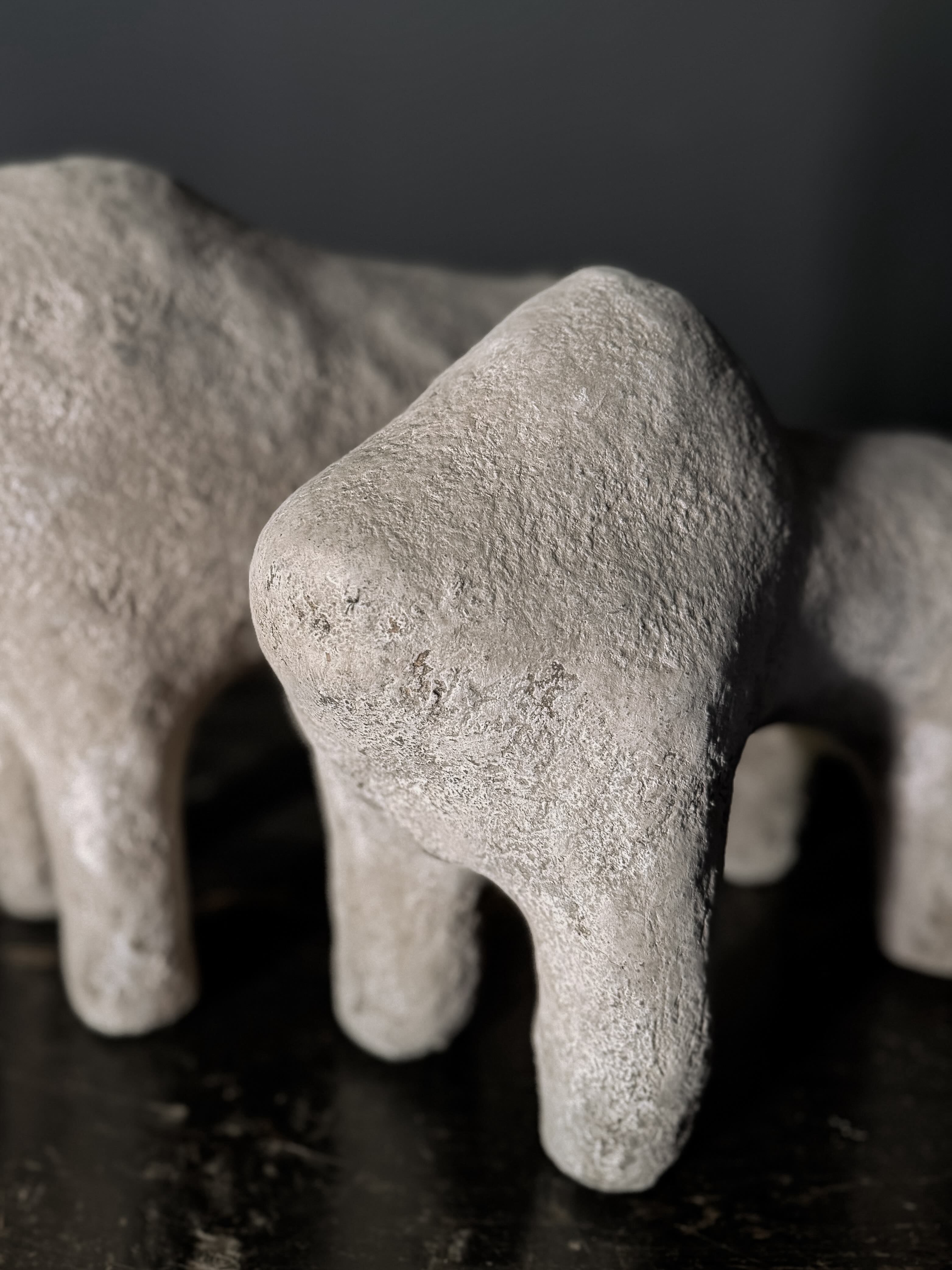 These primitive-style but exceptional figures originate from Mali and are inspired by the traditional forms of the Bambara culture. Their sculptural silhouette evokes an animal-like presence – raw, minimal, and full of quiet strength.