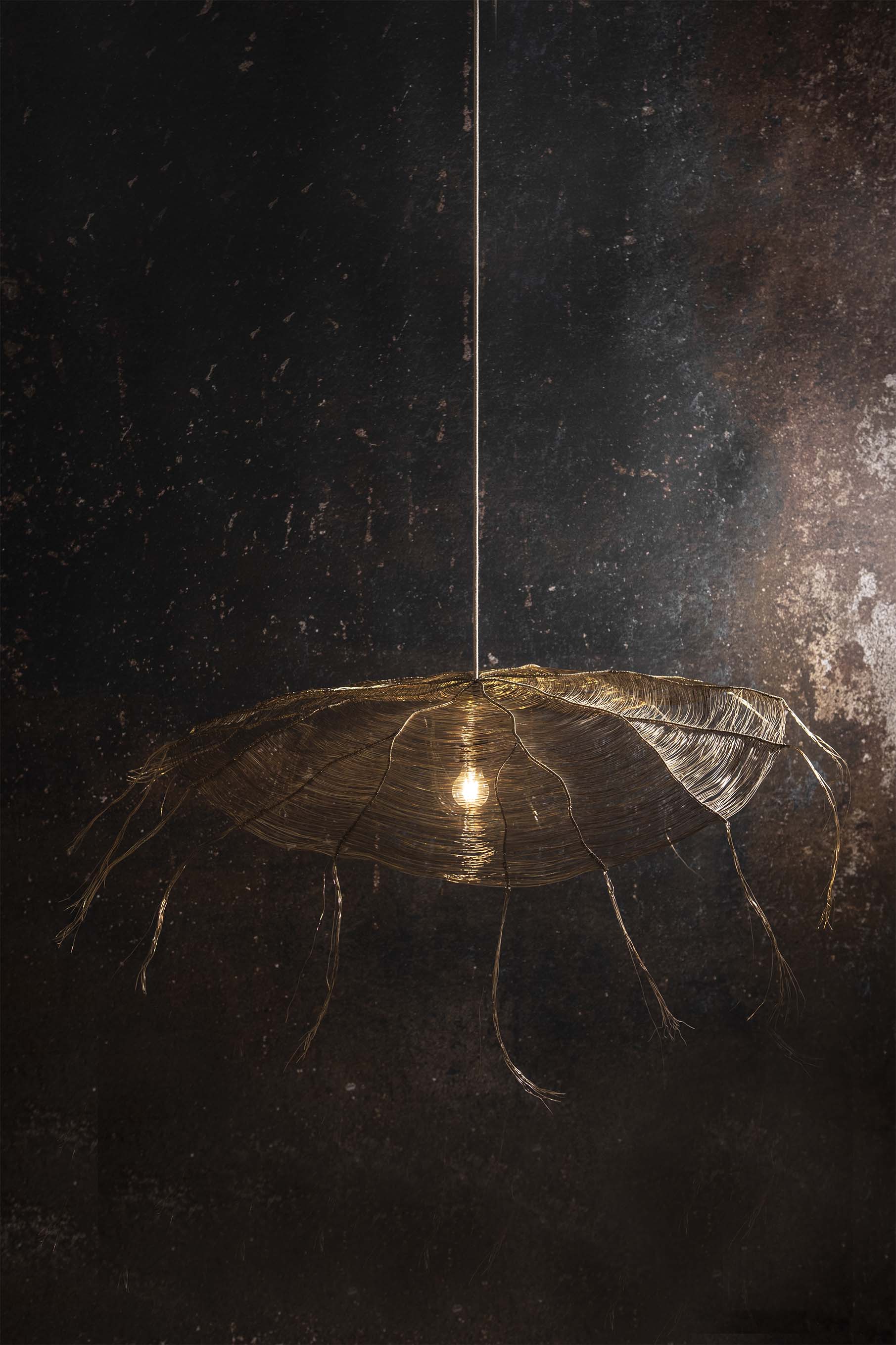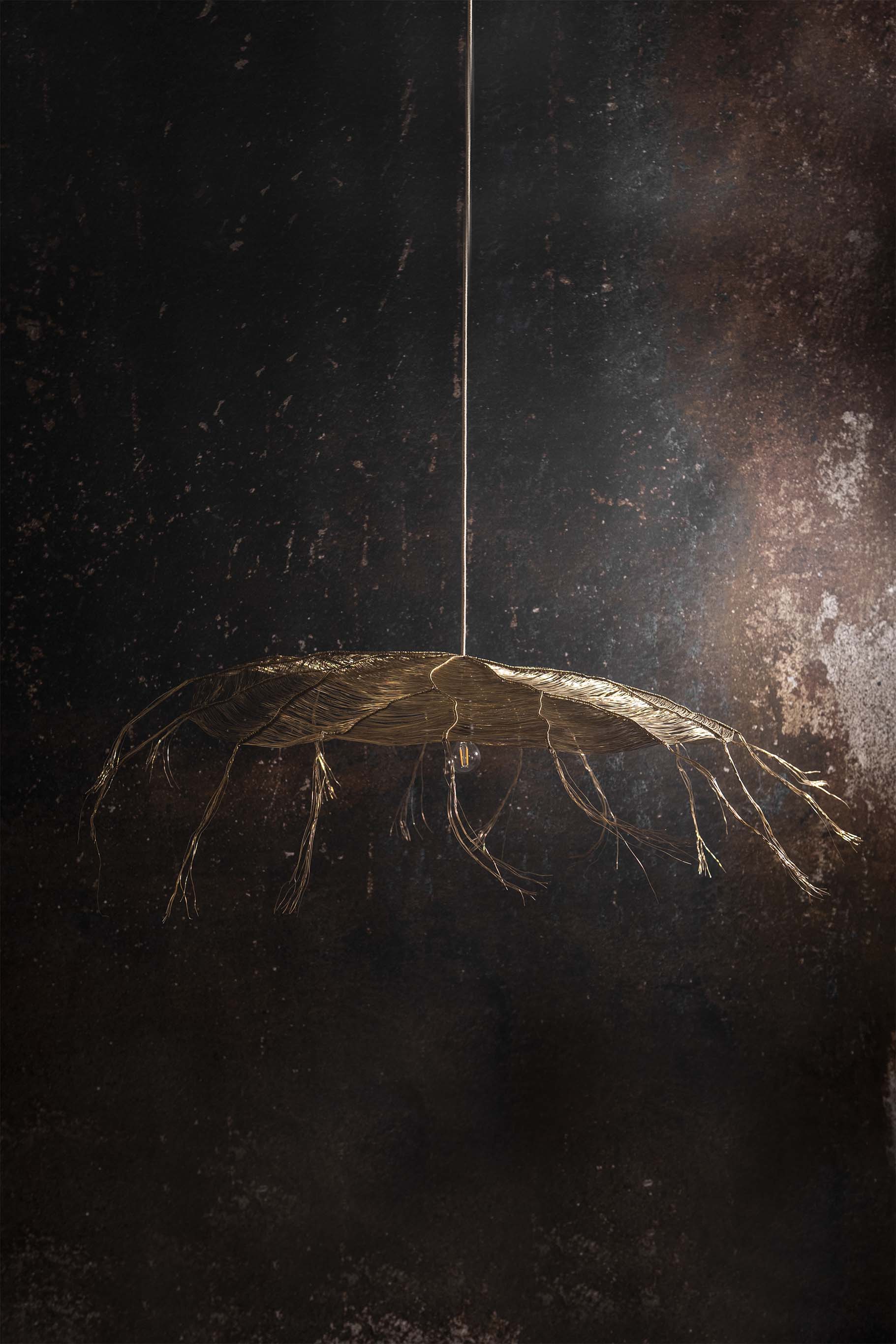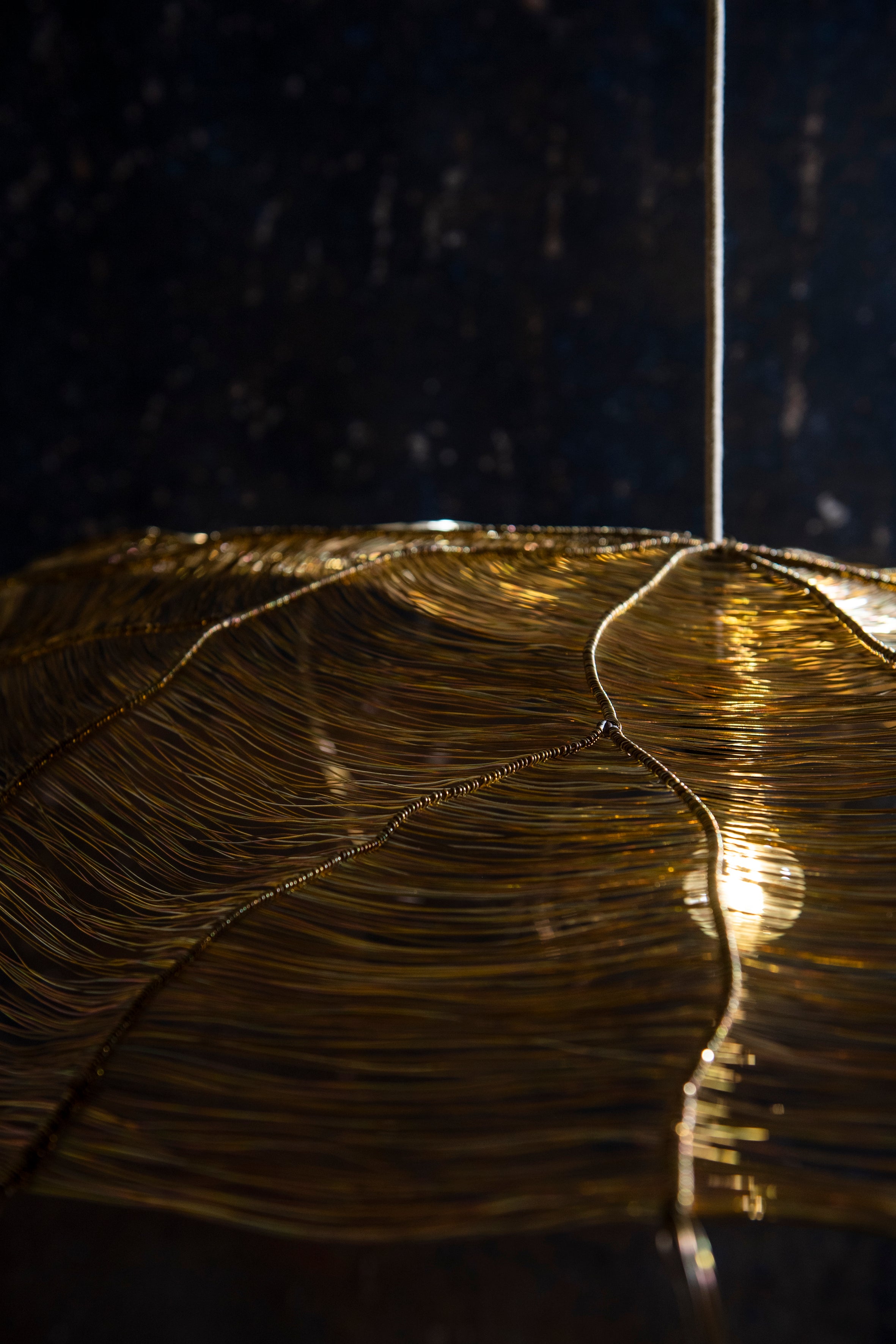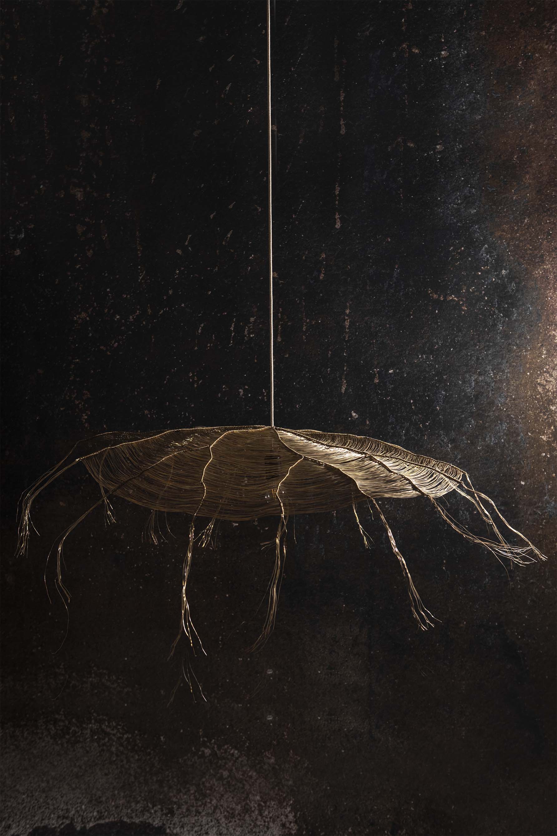 Handcrafted stainless steel pendant lamp. The shape is reminiscent of a rhizome, in botany a stem axis system that usually grows underground or just above the ground.