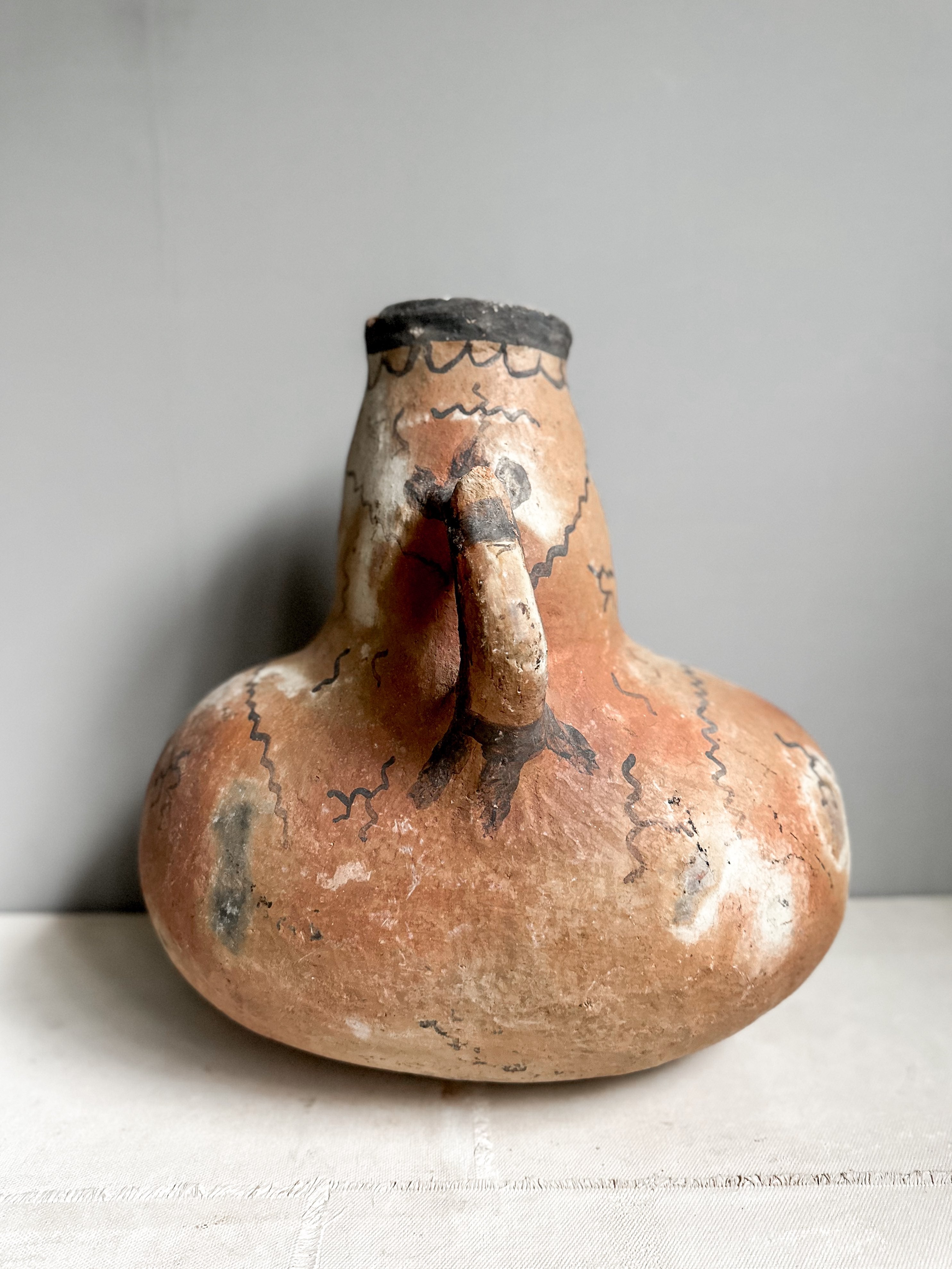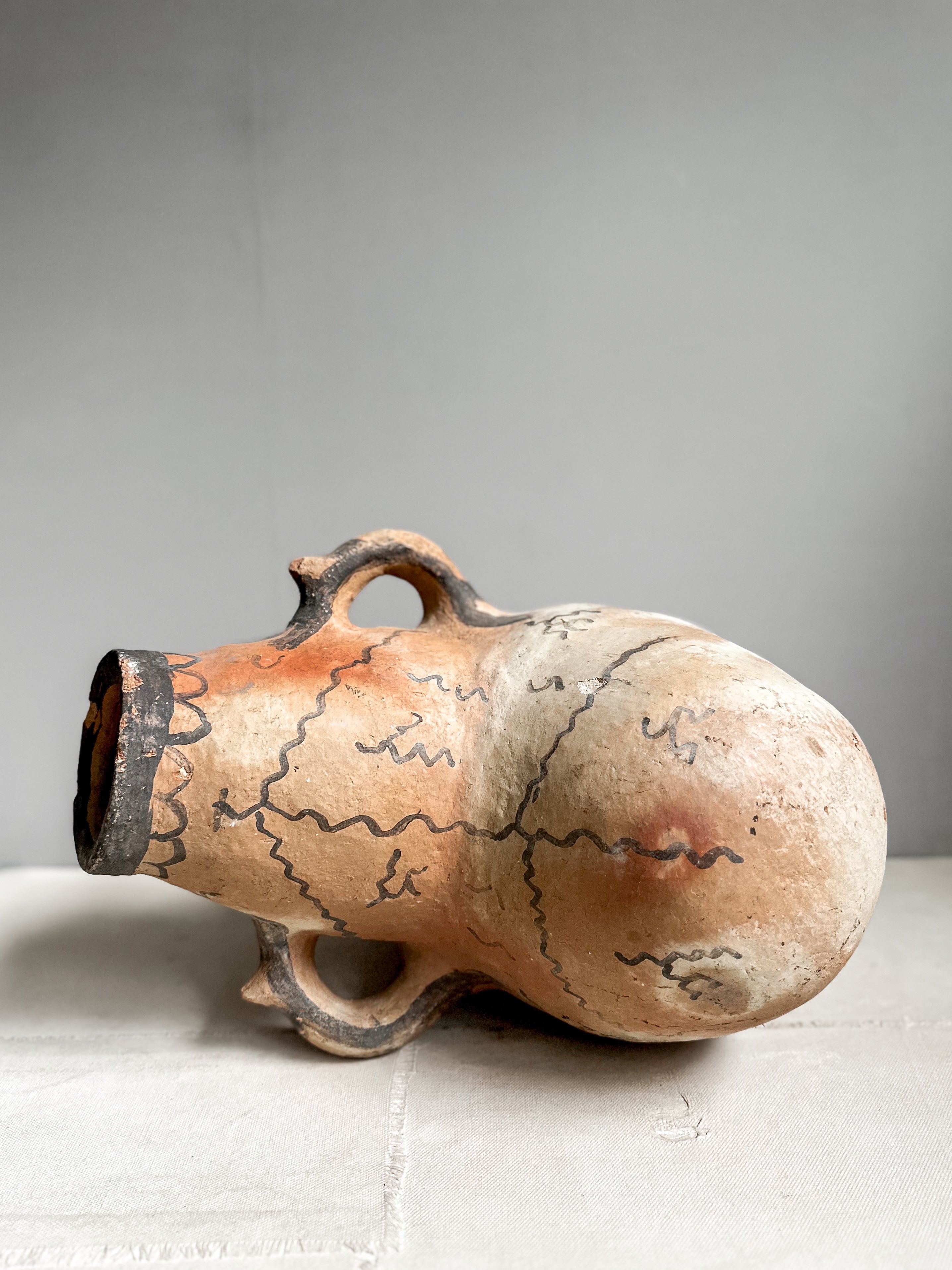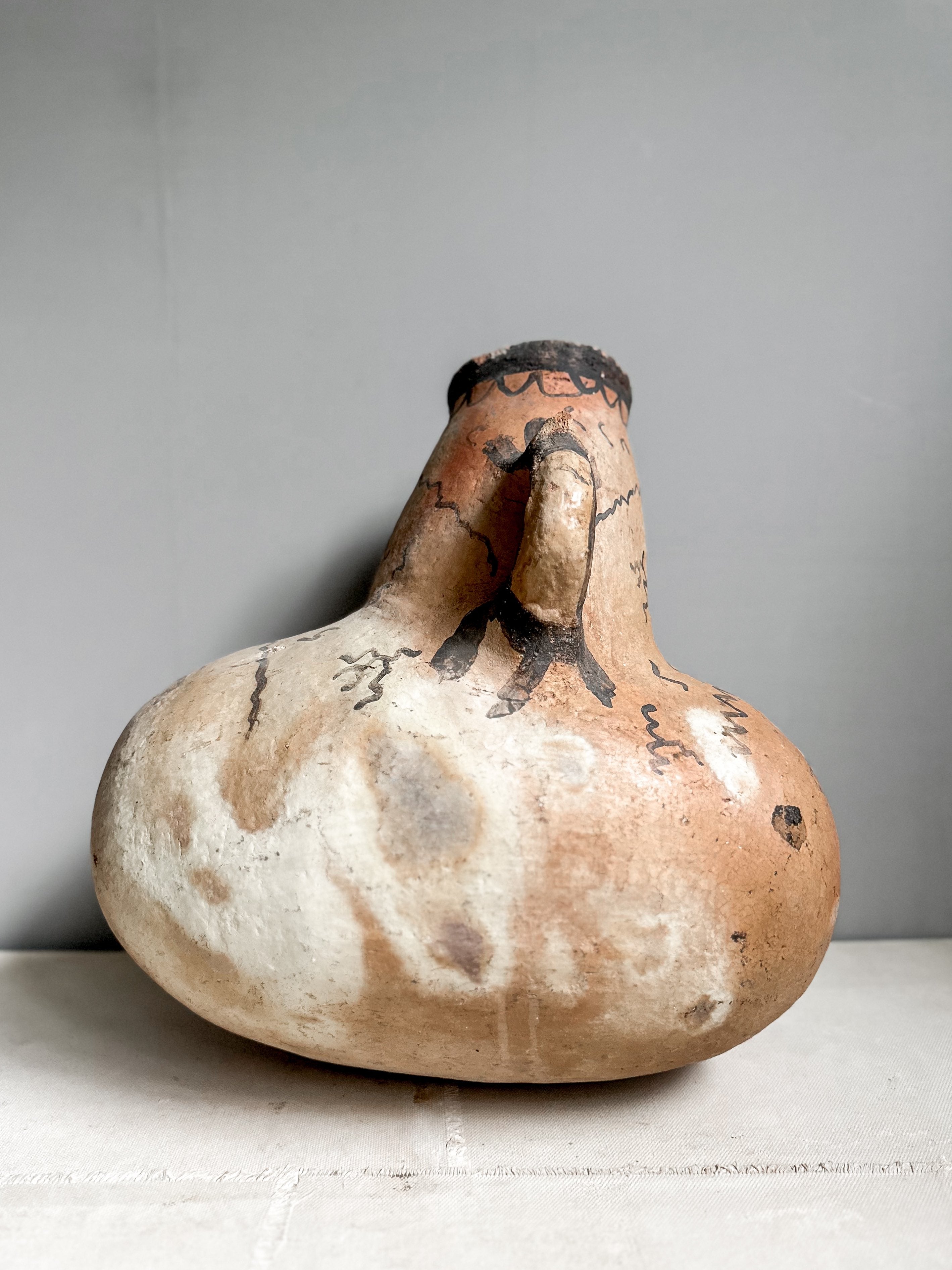 Stunning unique piece with two side handles. The pot can either be leaned against to stand upright or it is also a real eye-catcher when lying on the side.