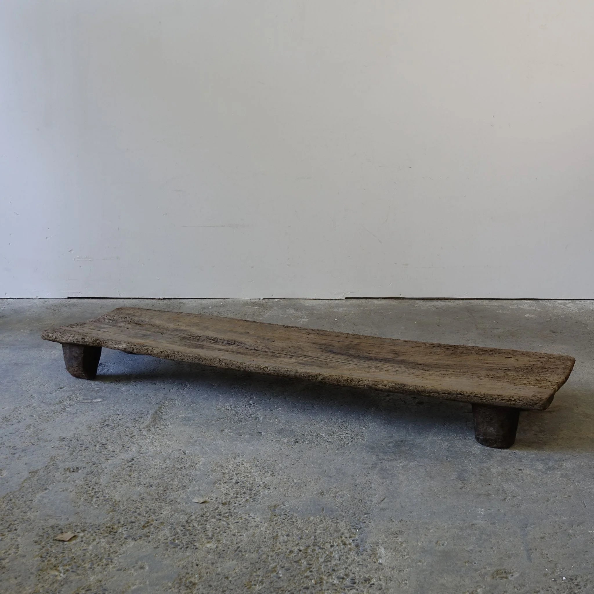 This handcrafted Naga bed originates from Nagaland, a state in the Northeastern region of India populated by diverse tribes. In this area, these "coffee tables" are actually beds hand carved from one single piece of wood, making each piece one of a kind.