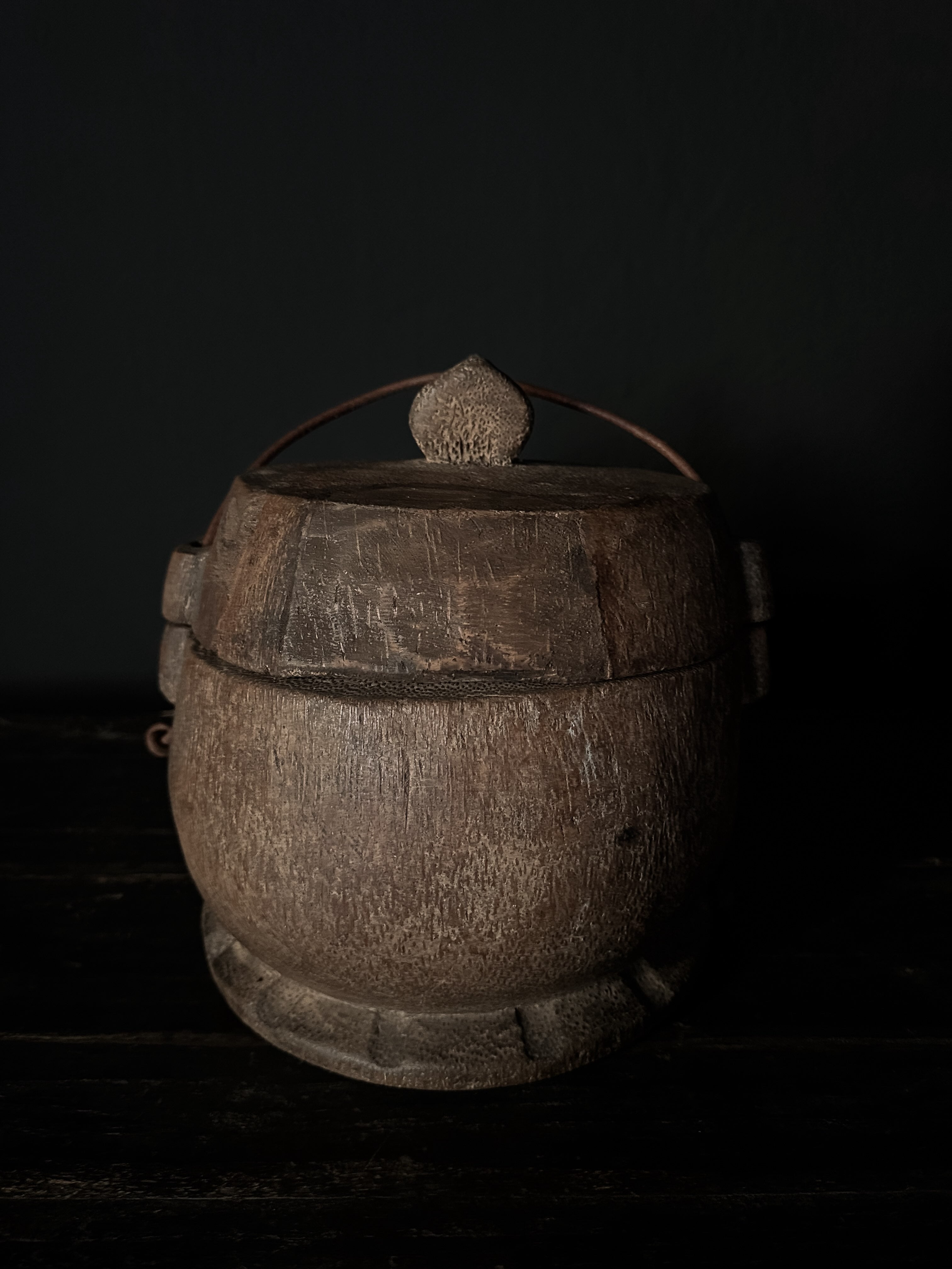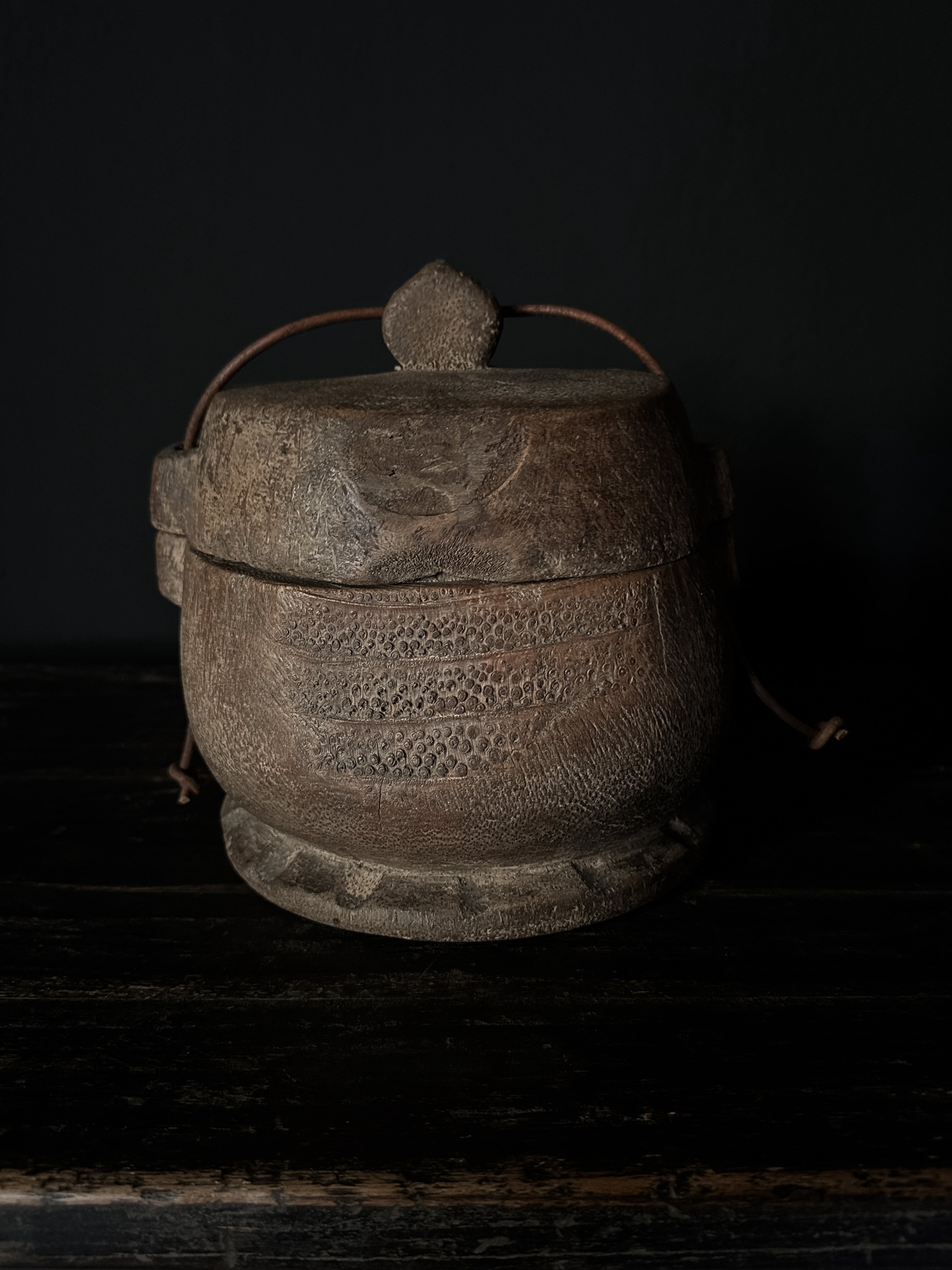 Wunderschön geschnitzte Holzboxen, früher zum Transport von Lebensmitteln verwendet. Das Holz jeder Box besitzt eine unverwechselbare Patina.