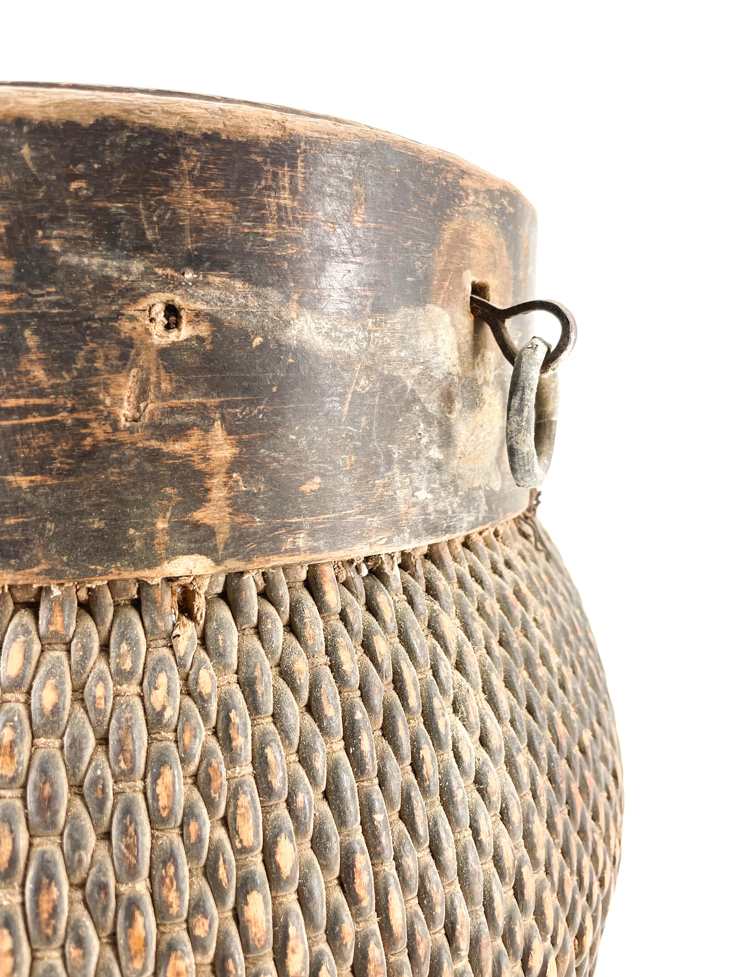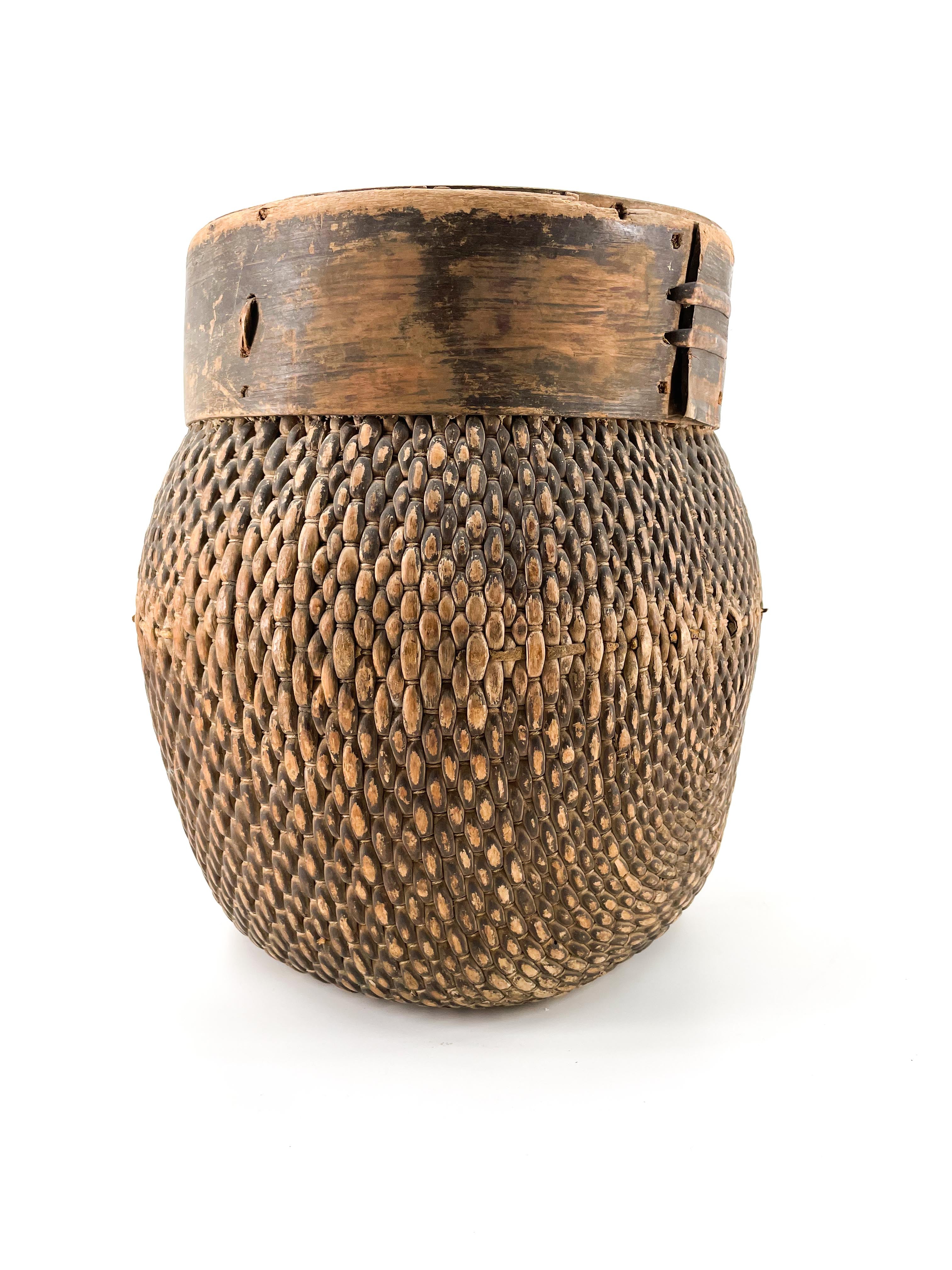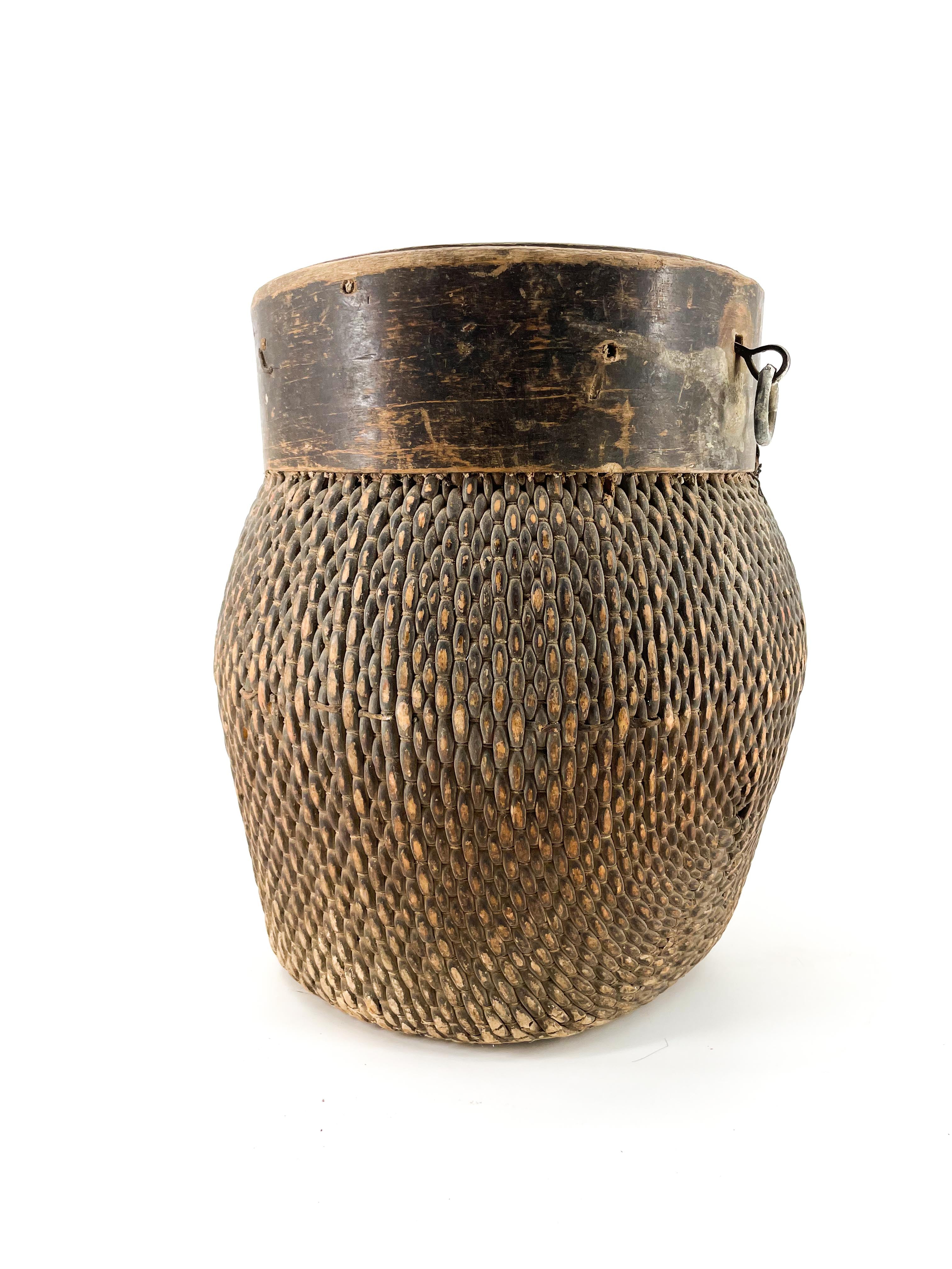 Dieser alte Rattan-Korb aus dem 19. Jahrhundert wurde ursprünglich unter Fischern verwendet. Er ist heute ein wunderschönes Accessoire, um Trockenblumen in Szene zu setzen. Der Korb ist aber auch allein ein einzigartiger Blickfang.