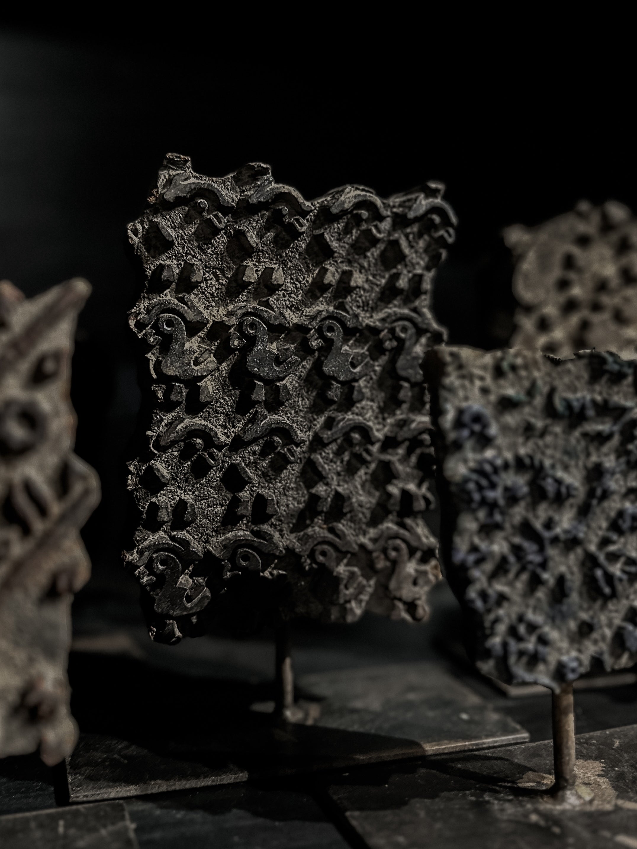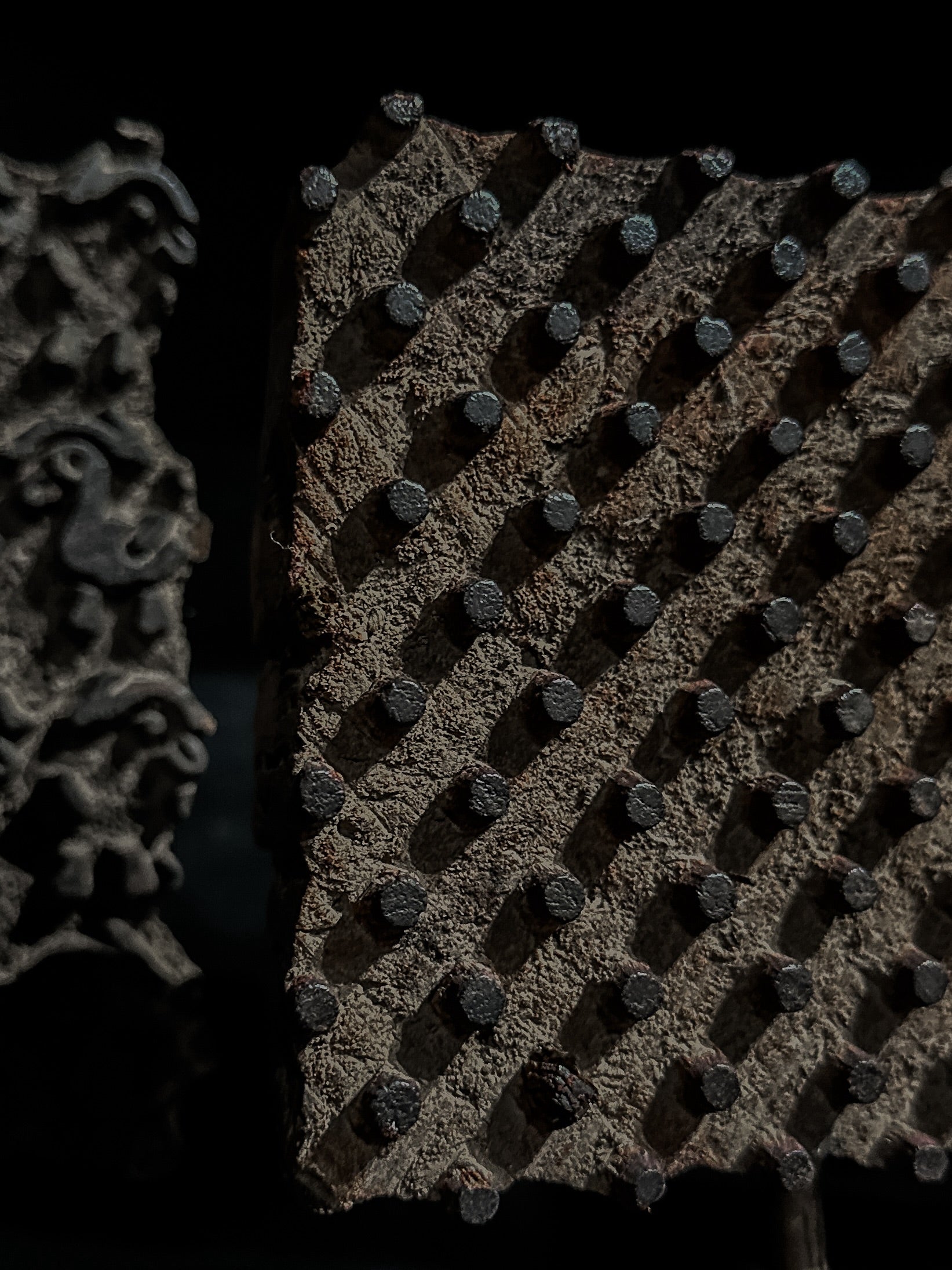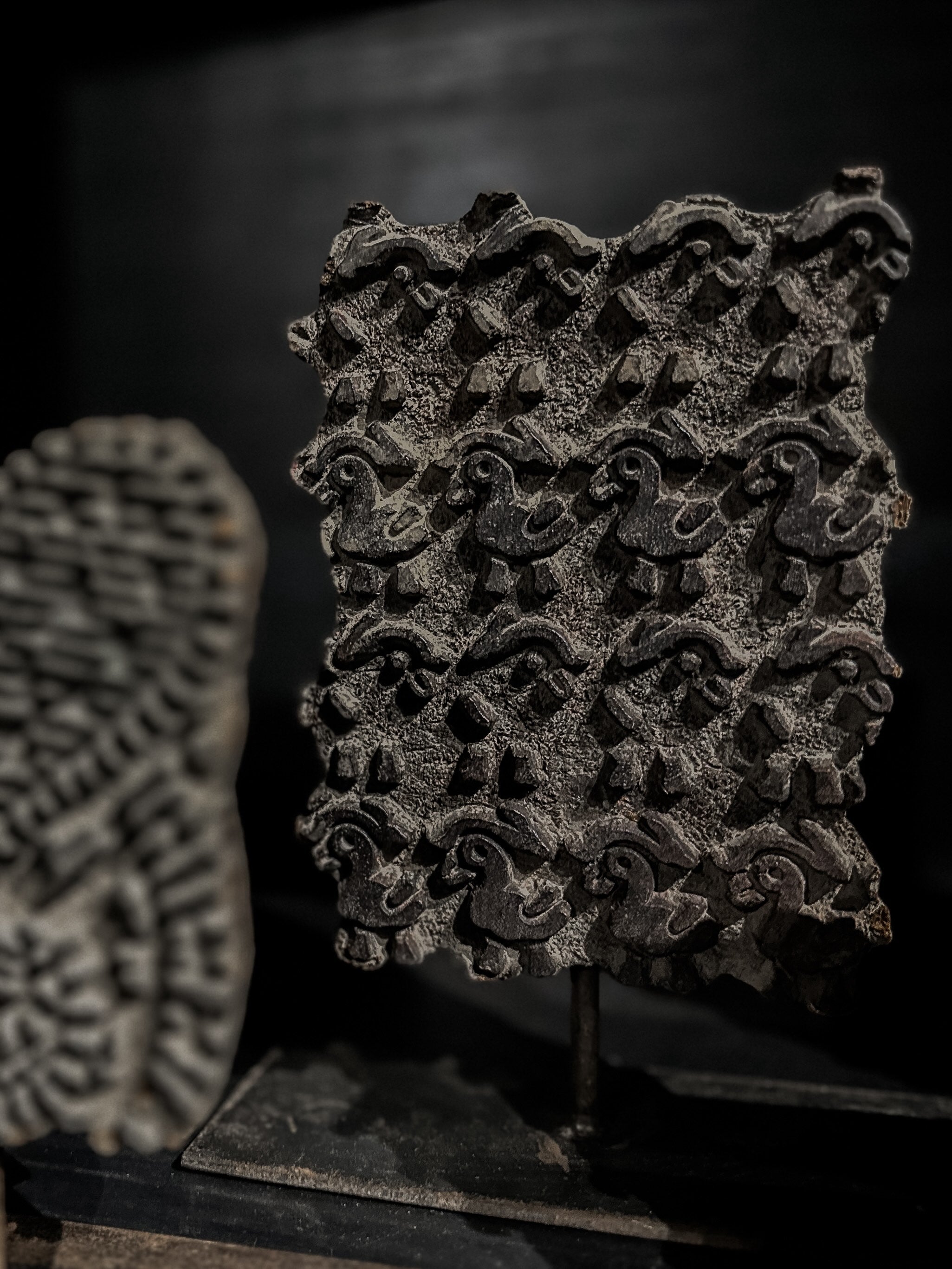 Ursprünglich wurden diese alten Blöcke zum Bedrucken von Stoffen mit farbigen Pigmentpasten verwendet. Diese als Blockdruck bezeichnete Technik ist auch heute noch in den Werkstätten Rajasthans, insbesondere in Jaipur, sehr verbreitet.