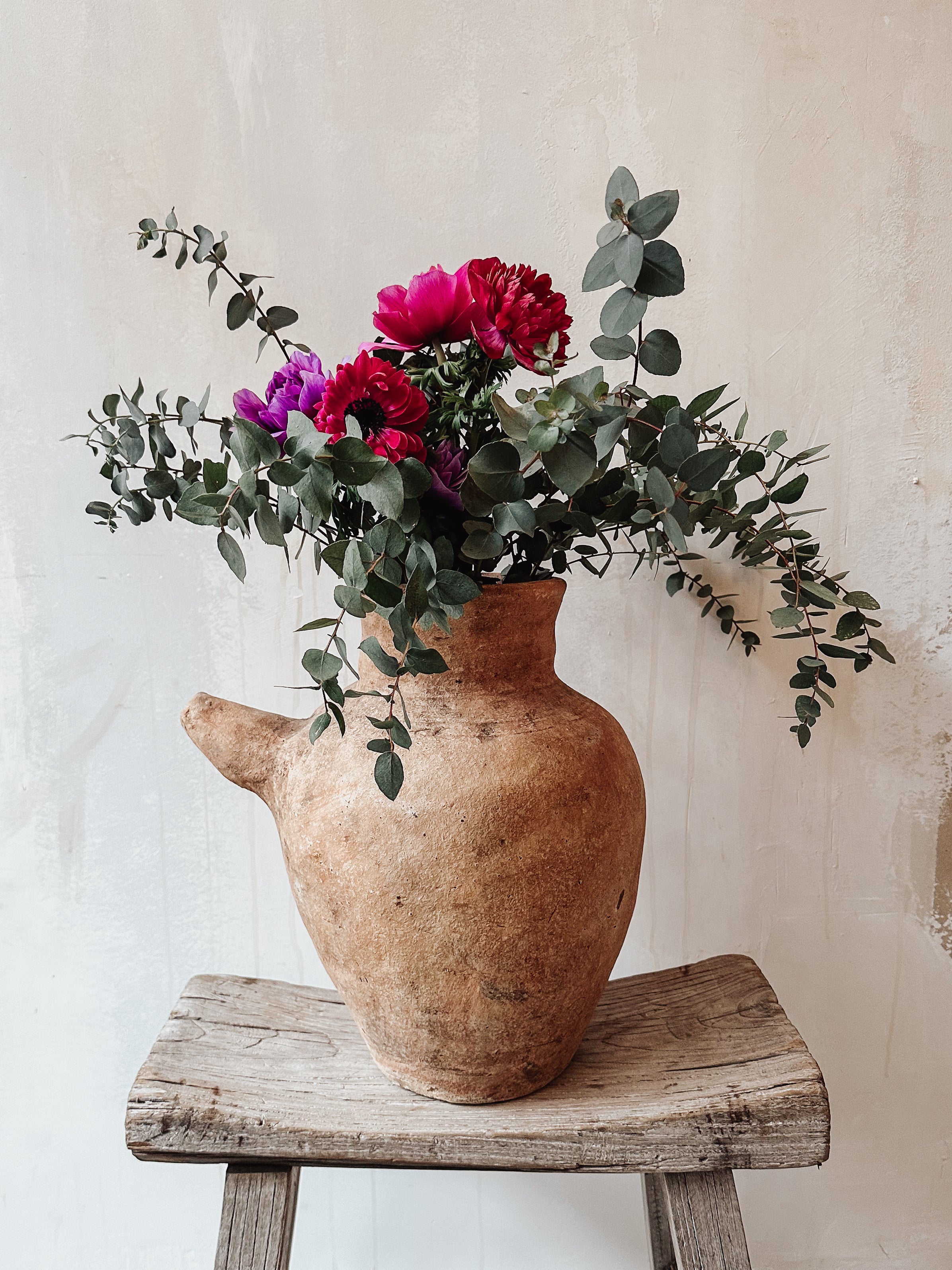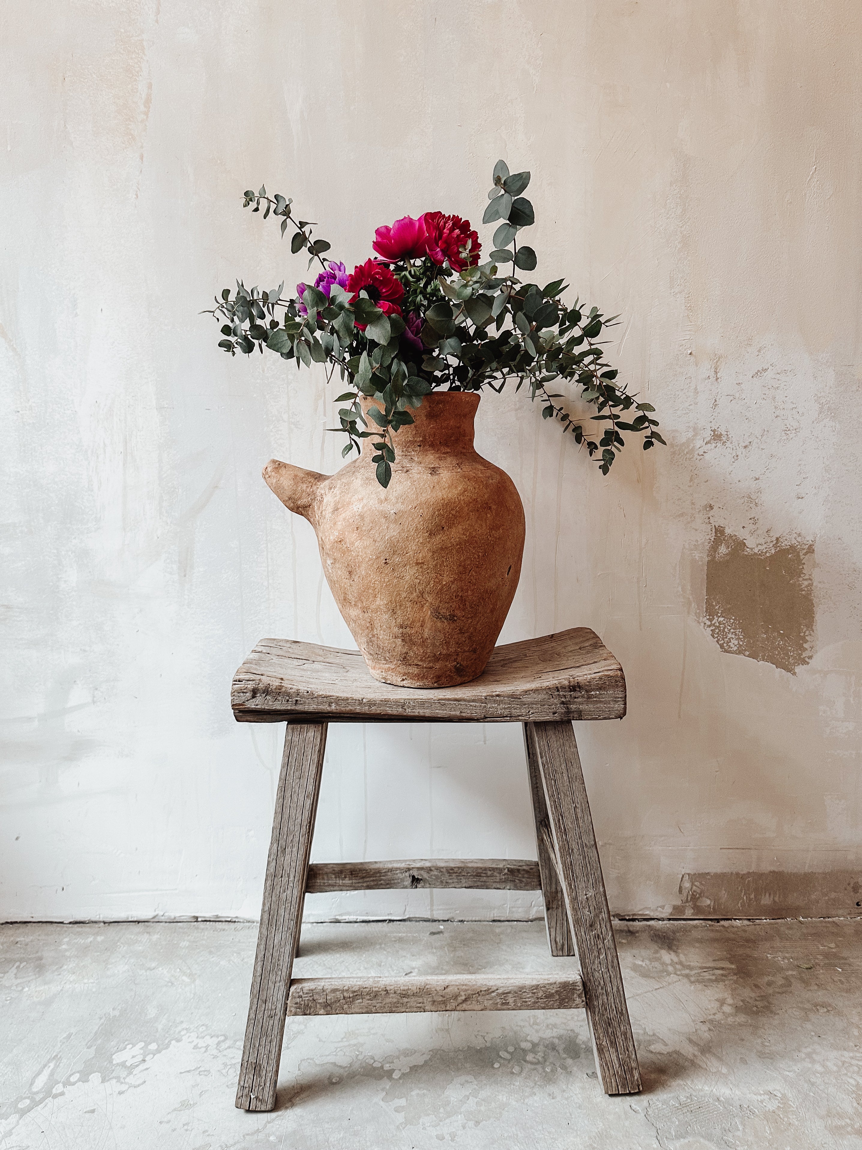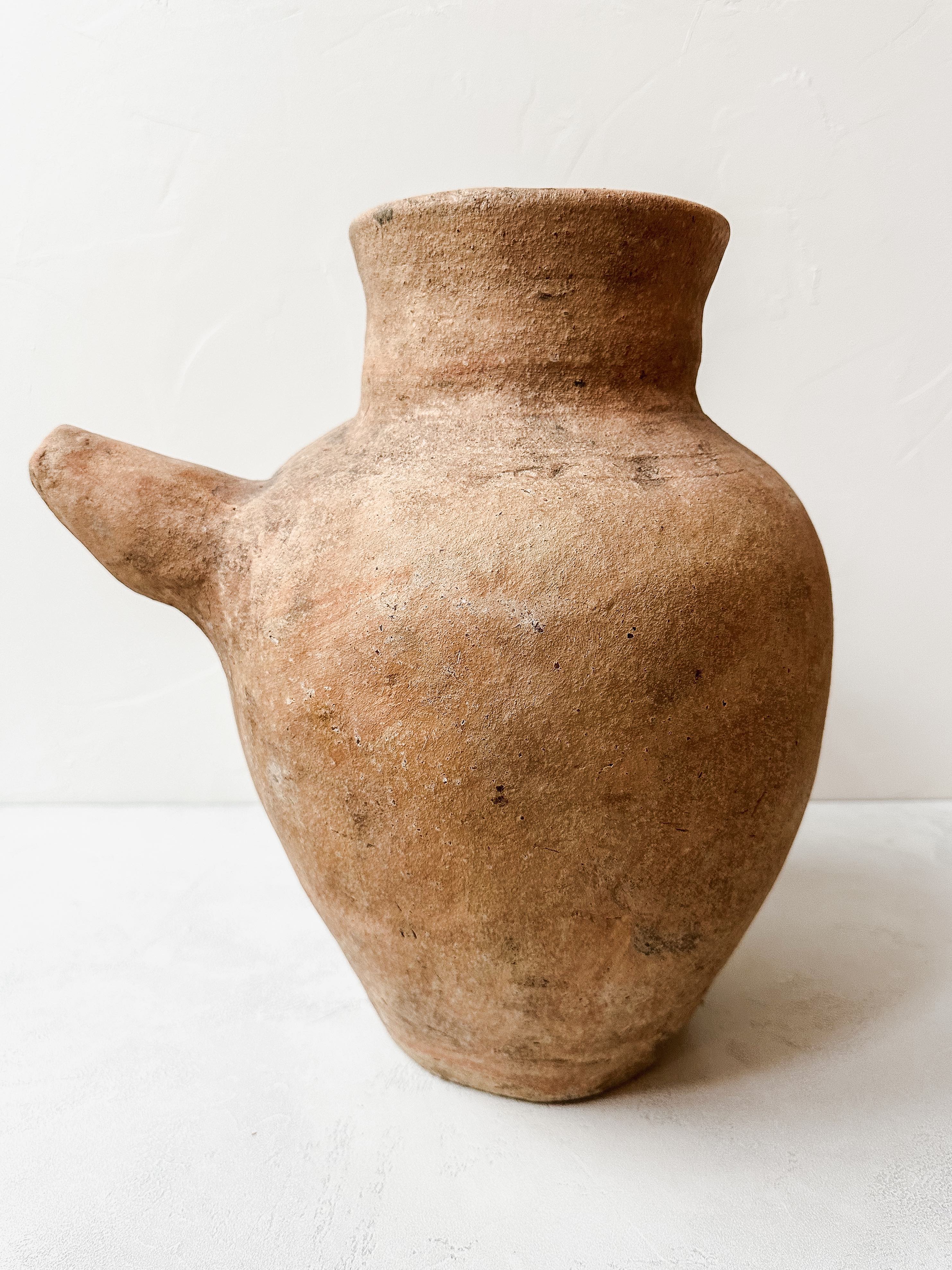 Wundervoller alter Wasserkrug aus Terrakotta mit seitlichem Ausguss. Dieses Gefäß ist für sich selbst ein schönes Dekorationsobjekt, aber auch einzigartig als Vase.