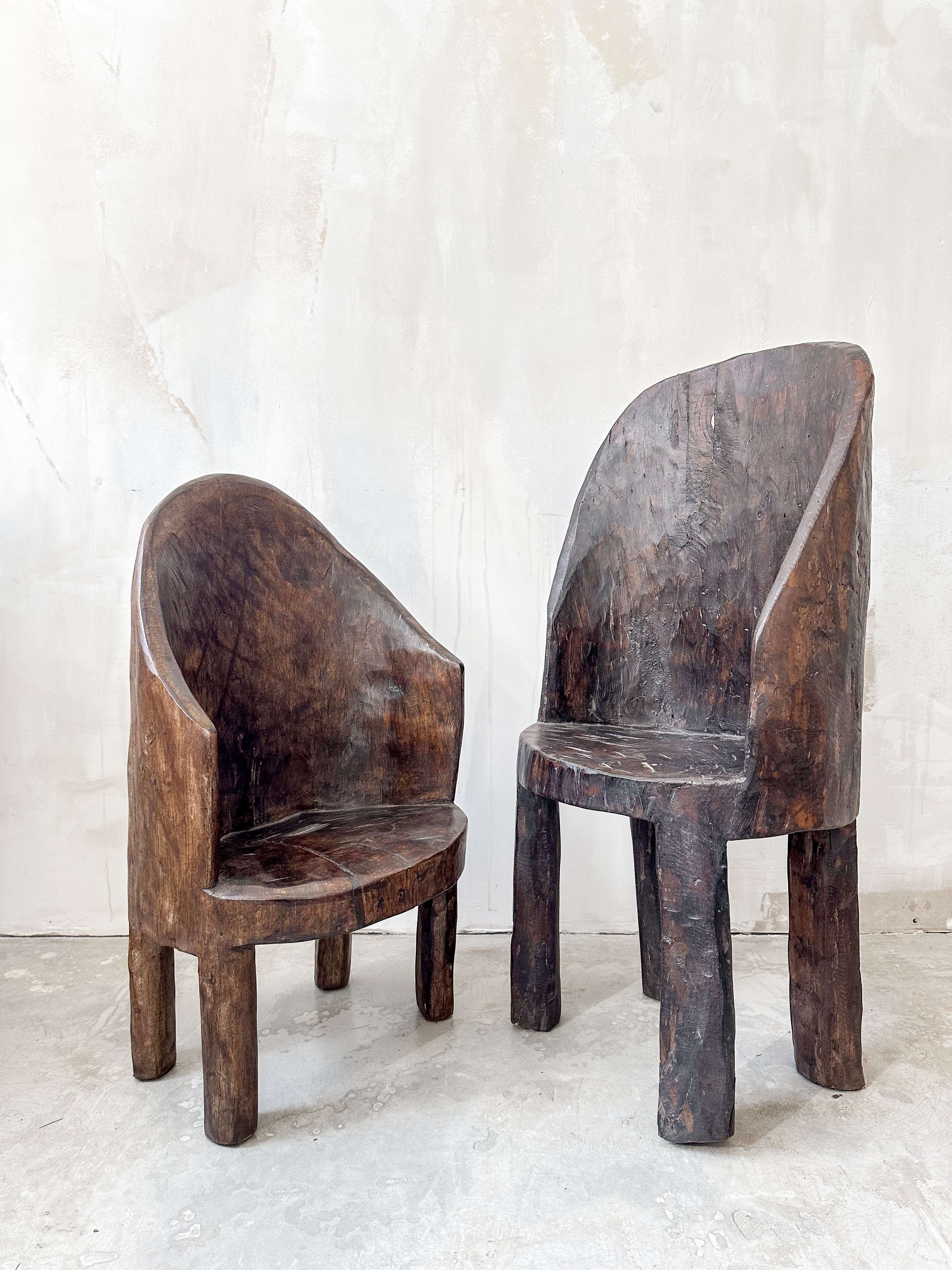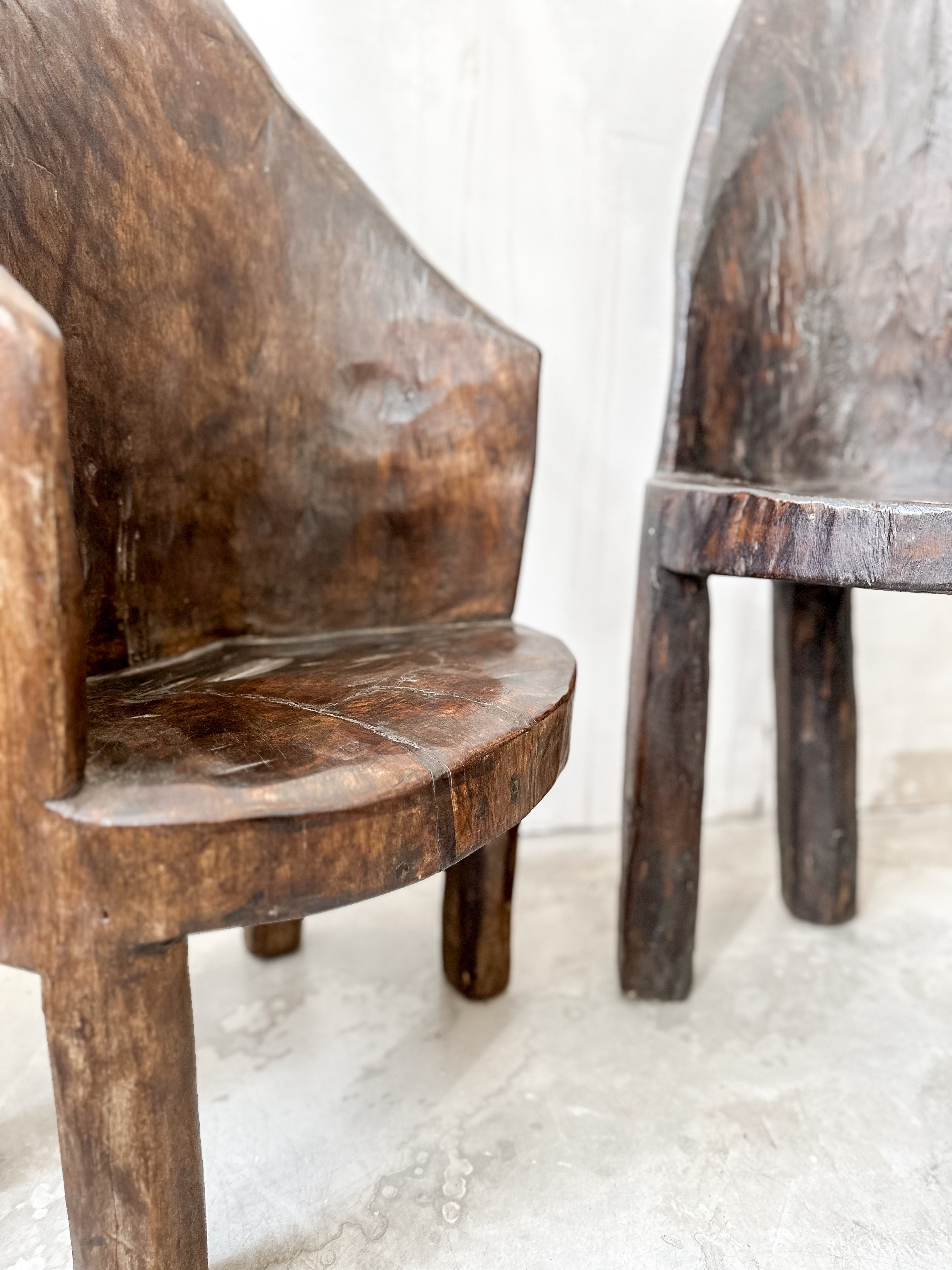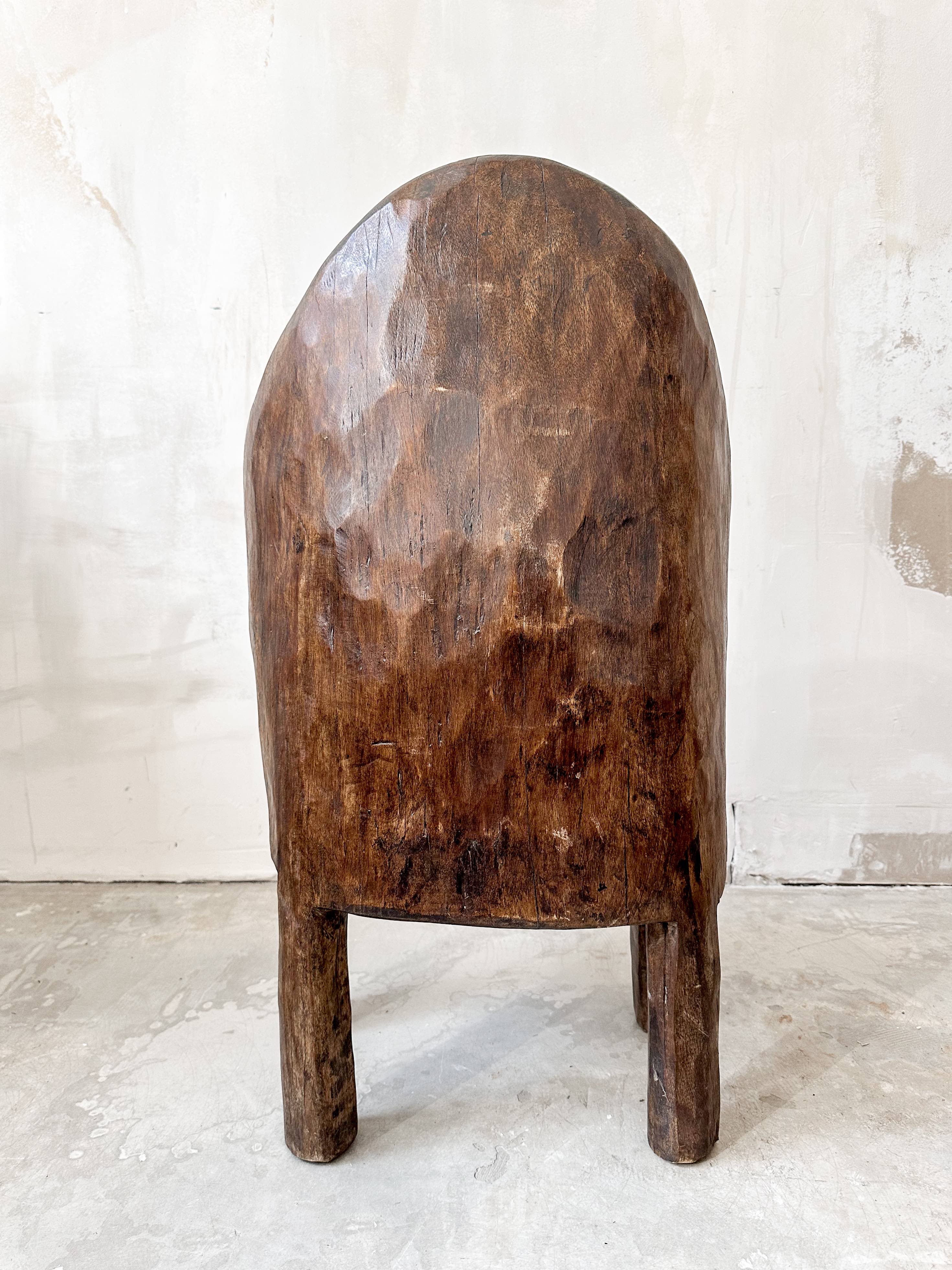 Wir lieben zeitlose Einzelstücke: Dieser Stuhl ist ein echtes Kunstwerk. Aus einem massiven Holzblock von Hand geschnitzt, stammt er aus Nagaland, einer der letzten verbliebenen Stammeskulturen in Nordindien. Das Holz hat über die lange Zeit eine schöne, dunkle Patina bekommen.