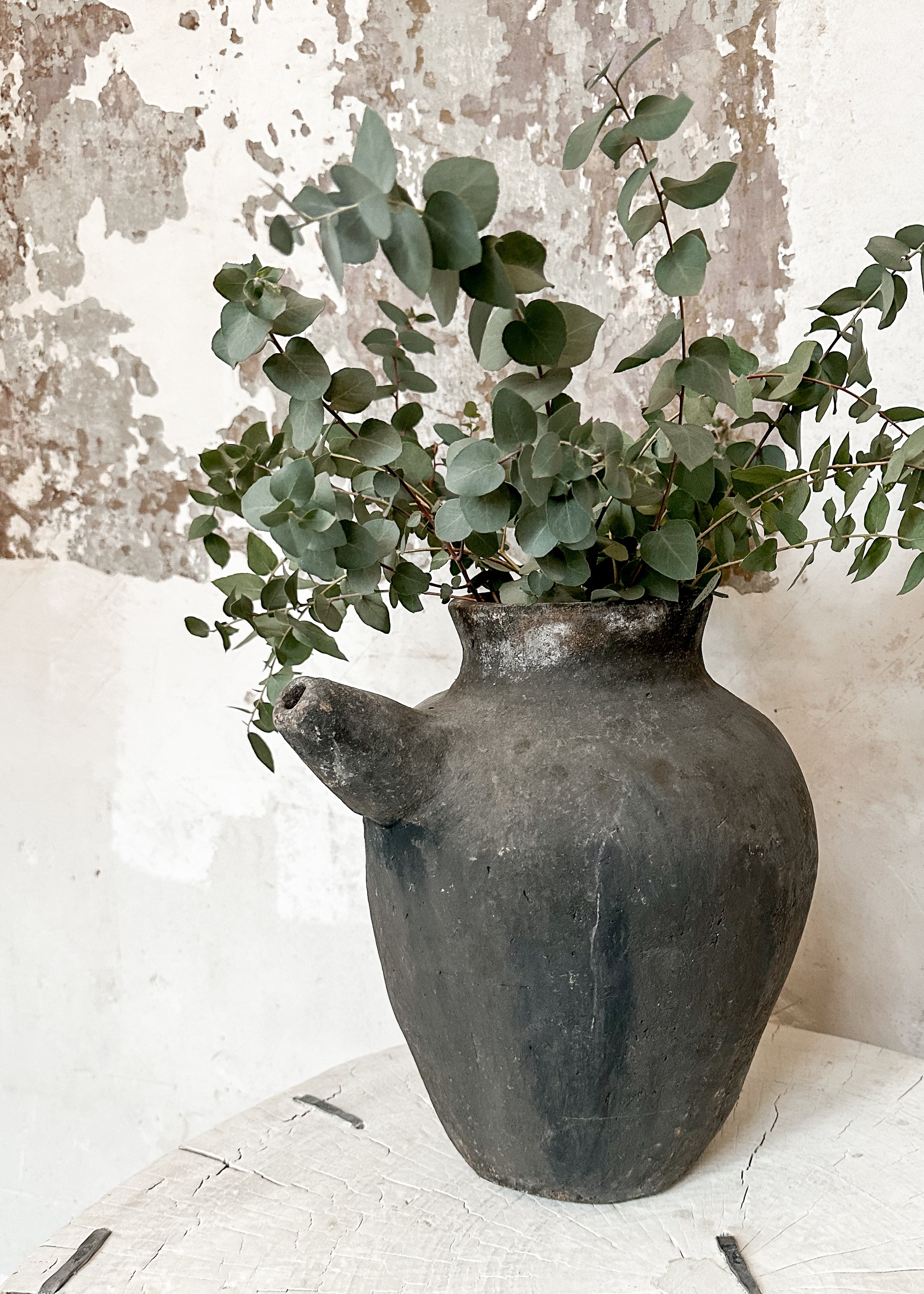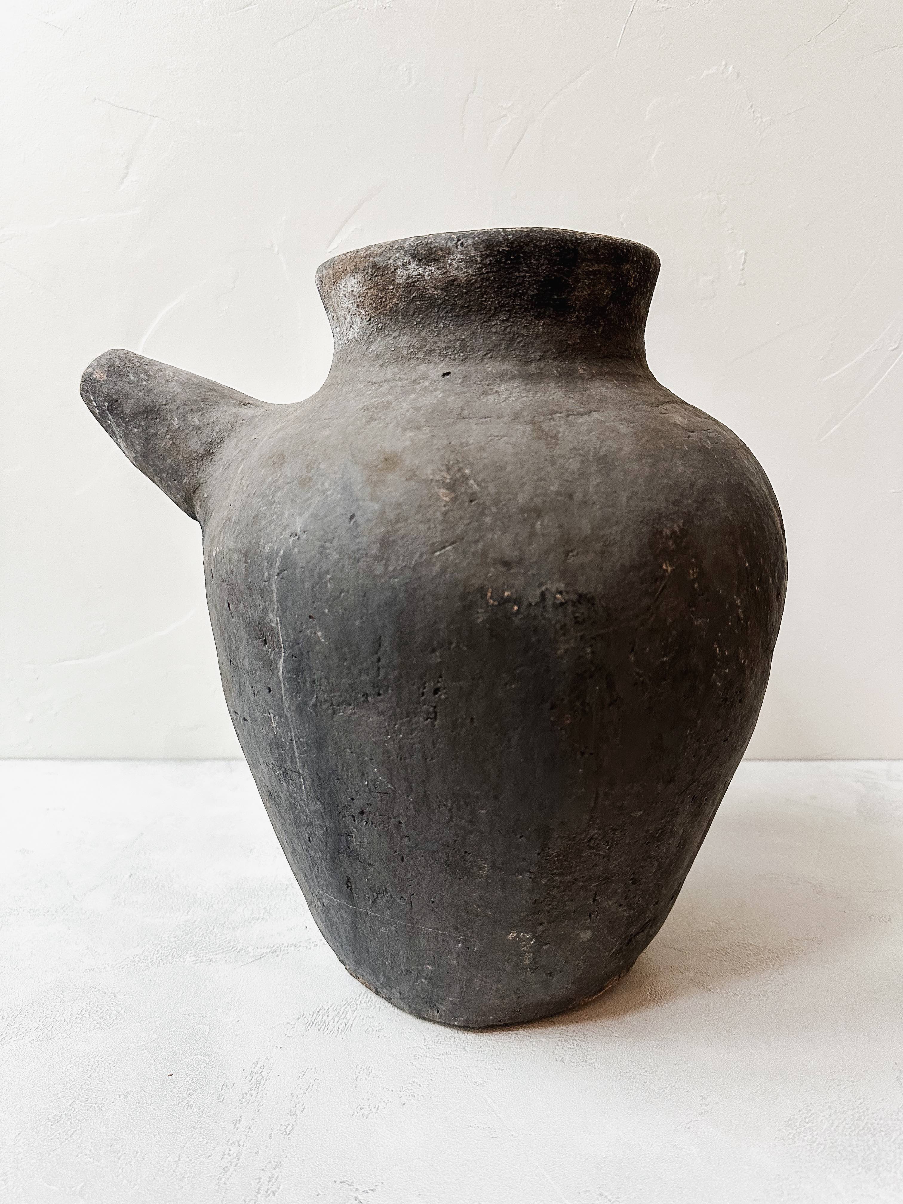 Wundervoller alter Wasserkrug aus Terrakotta mit seitlichem Ausguss. Dieses Gefäß ist für sich selbst ein schönes Dekorationsobjekt, aber auch einzigartig als Vase.