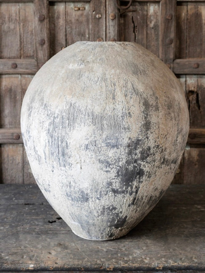 Wundervoll verwitterter Wasserpott aus Indonesien. Stammt aus dem Zeitraum 1900-1950. Ein außergewöhnliches Wabi Sabi Dekostück!