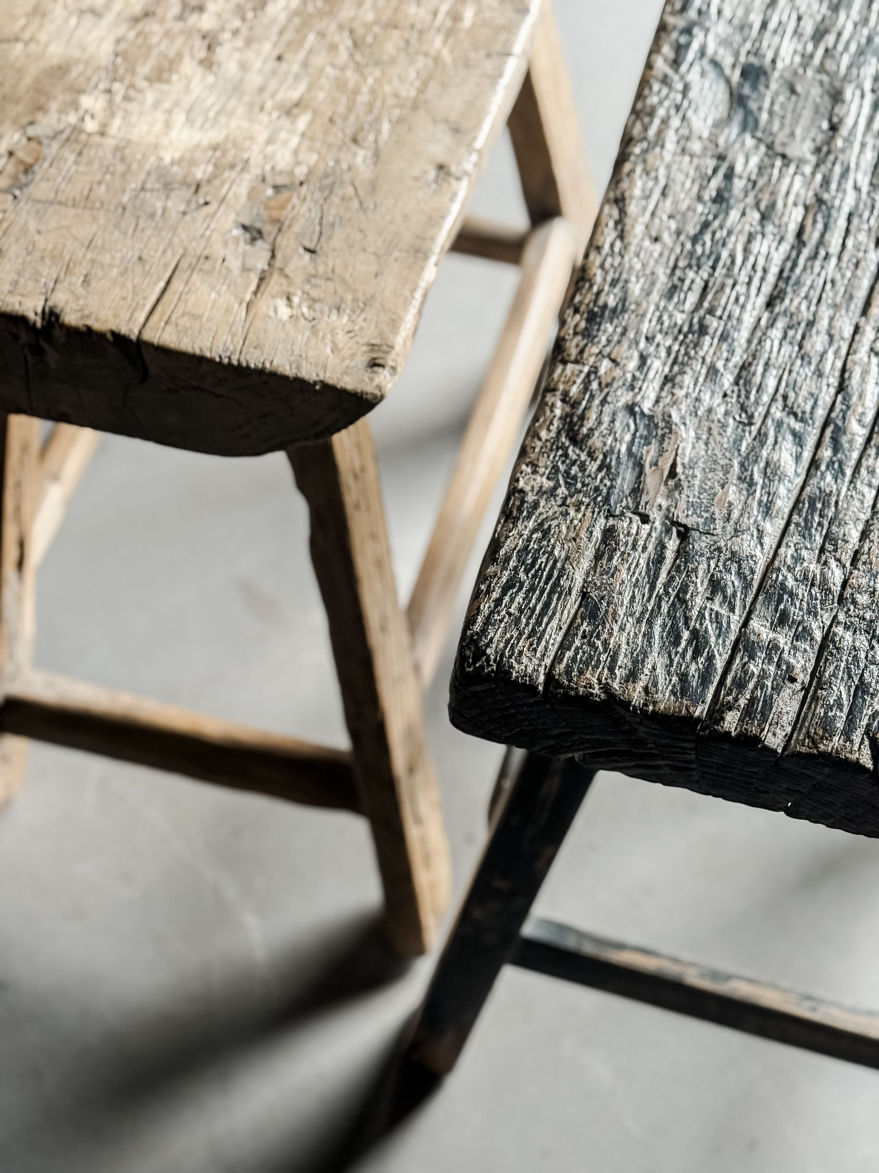 Ob als Beistelltisch, Sitzgelegenheit oder dekoratives Objekt – diese Hocker sind mehr als Möbelstücke. Sie sind zeitlose Begleiter mit Charakter, die durch ihren weathered Look jedes Interior bereichern.
