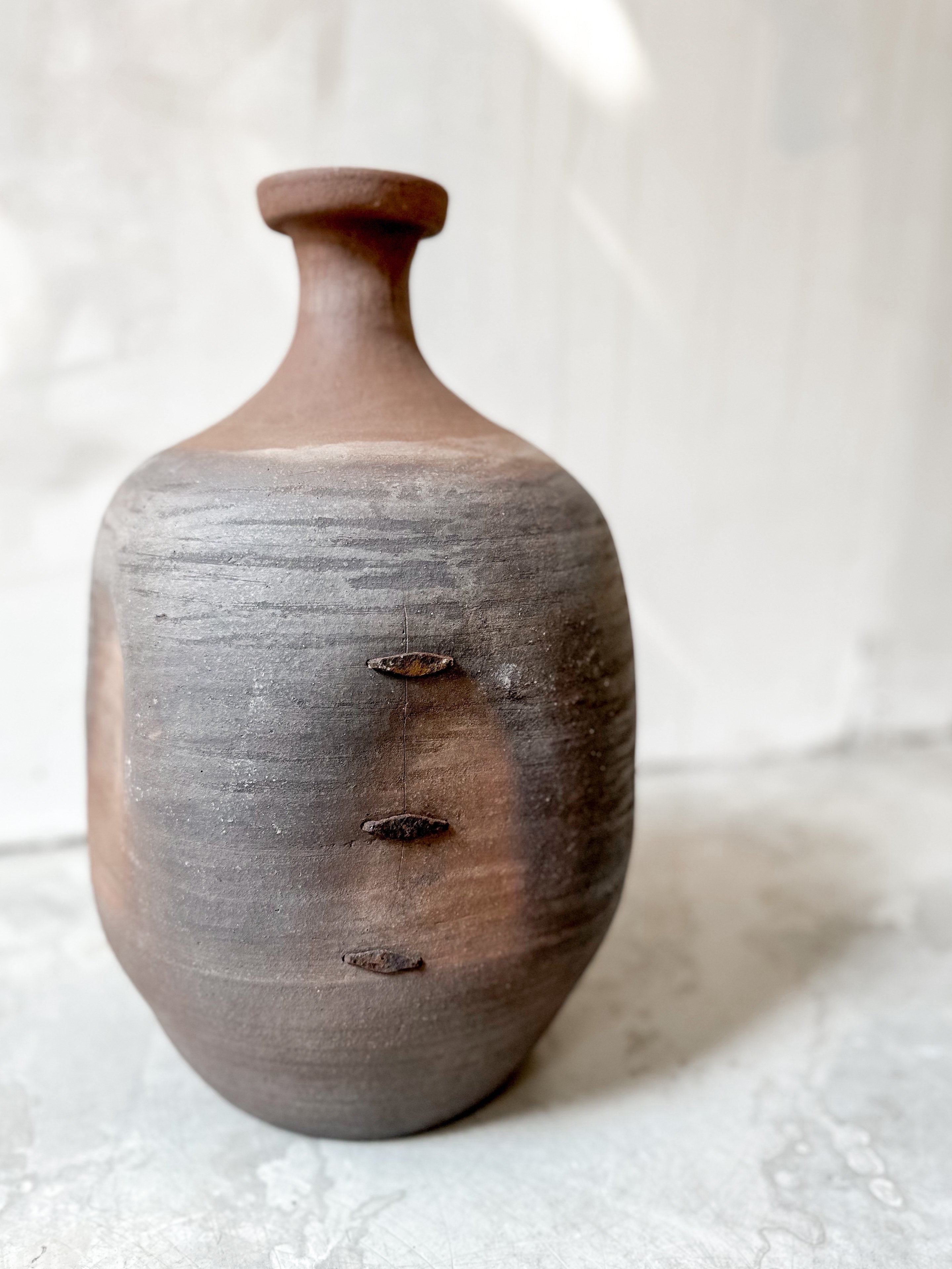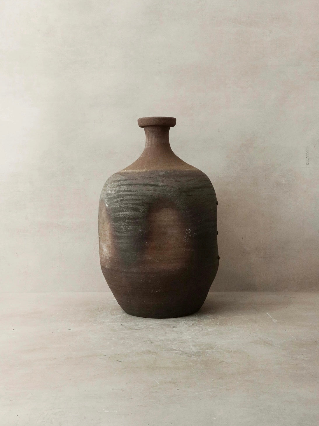 Diese antike Reisweinflasche ist das Ergebnis außergewöhnlicher Handwerkskunst. Einzigartig in Form und Details, mit wundervoller Patina auf der Oberfläche.