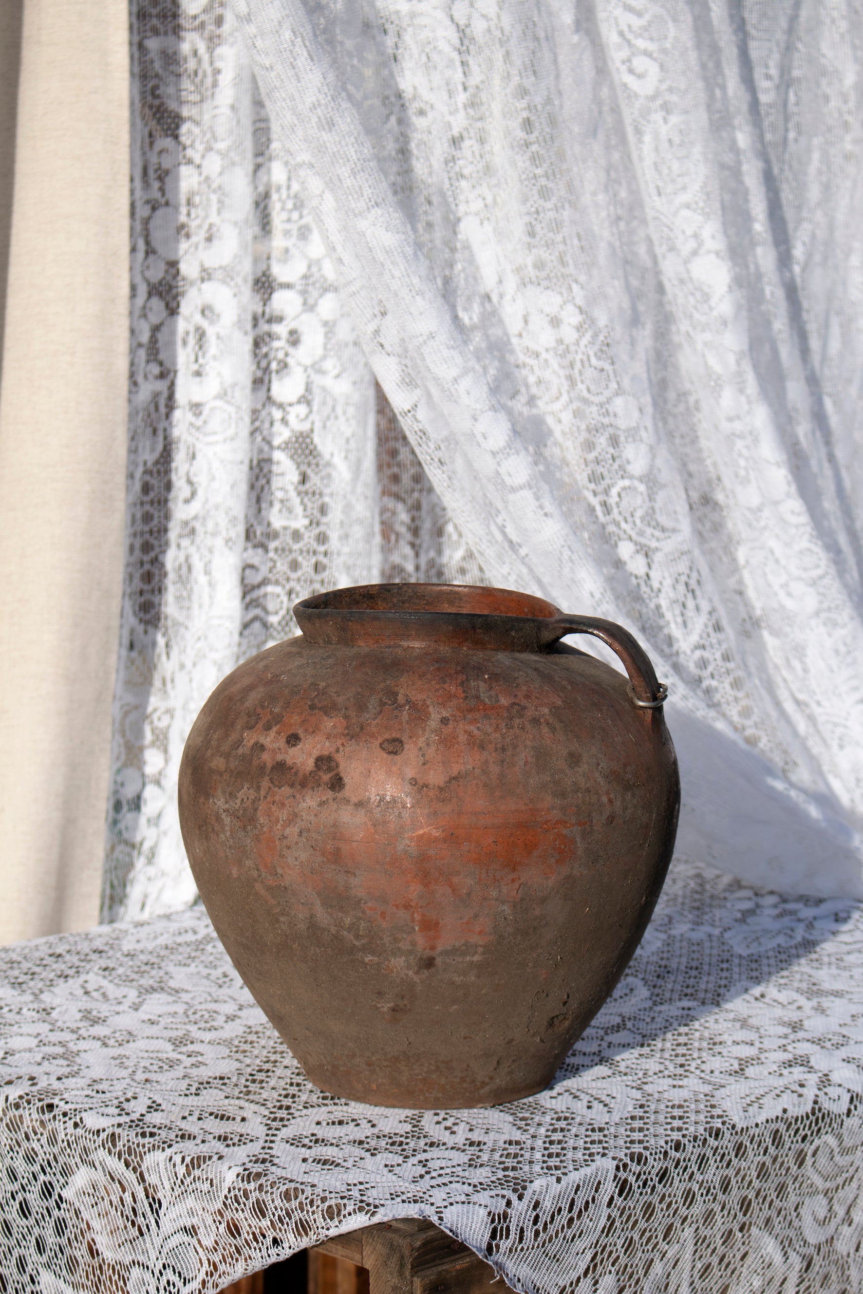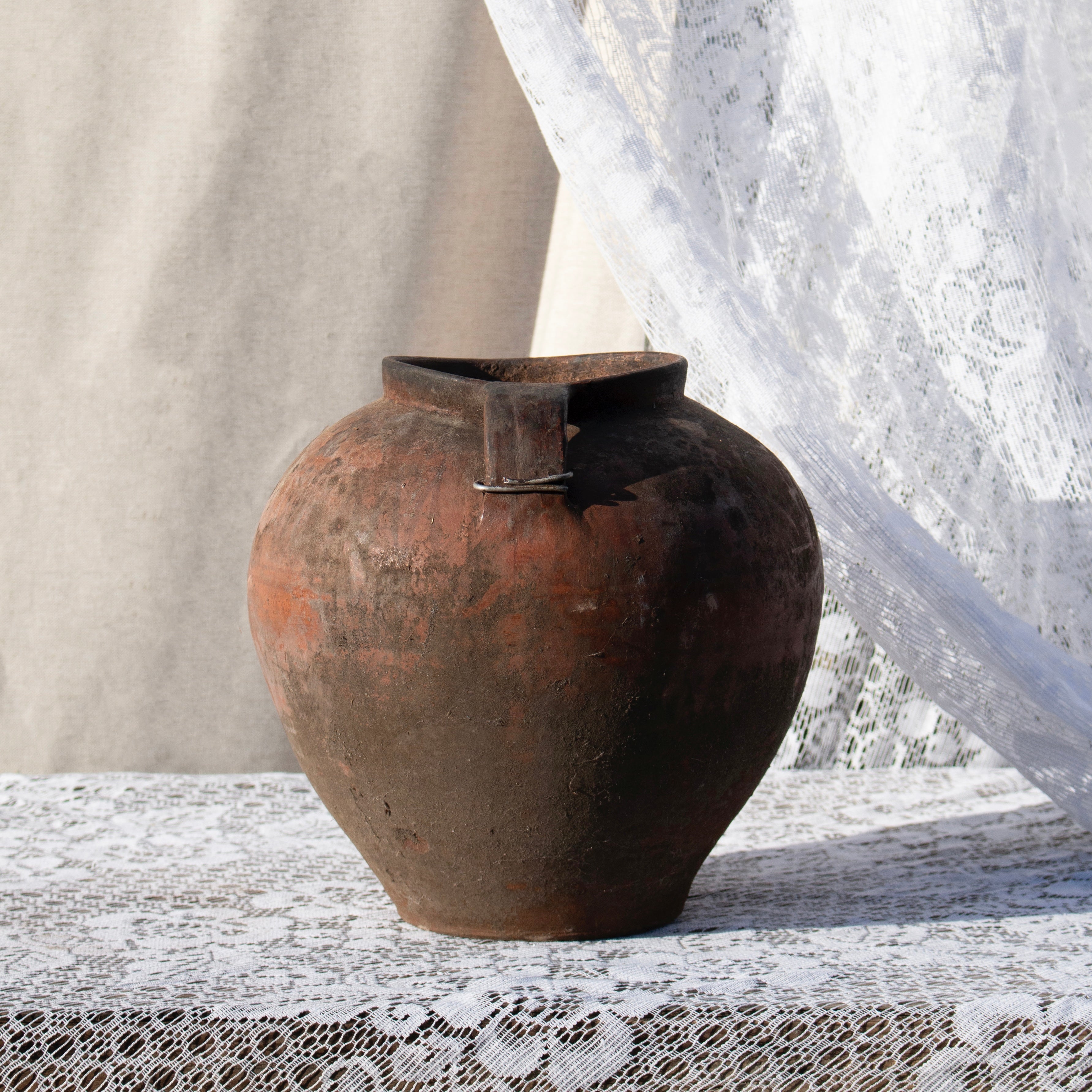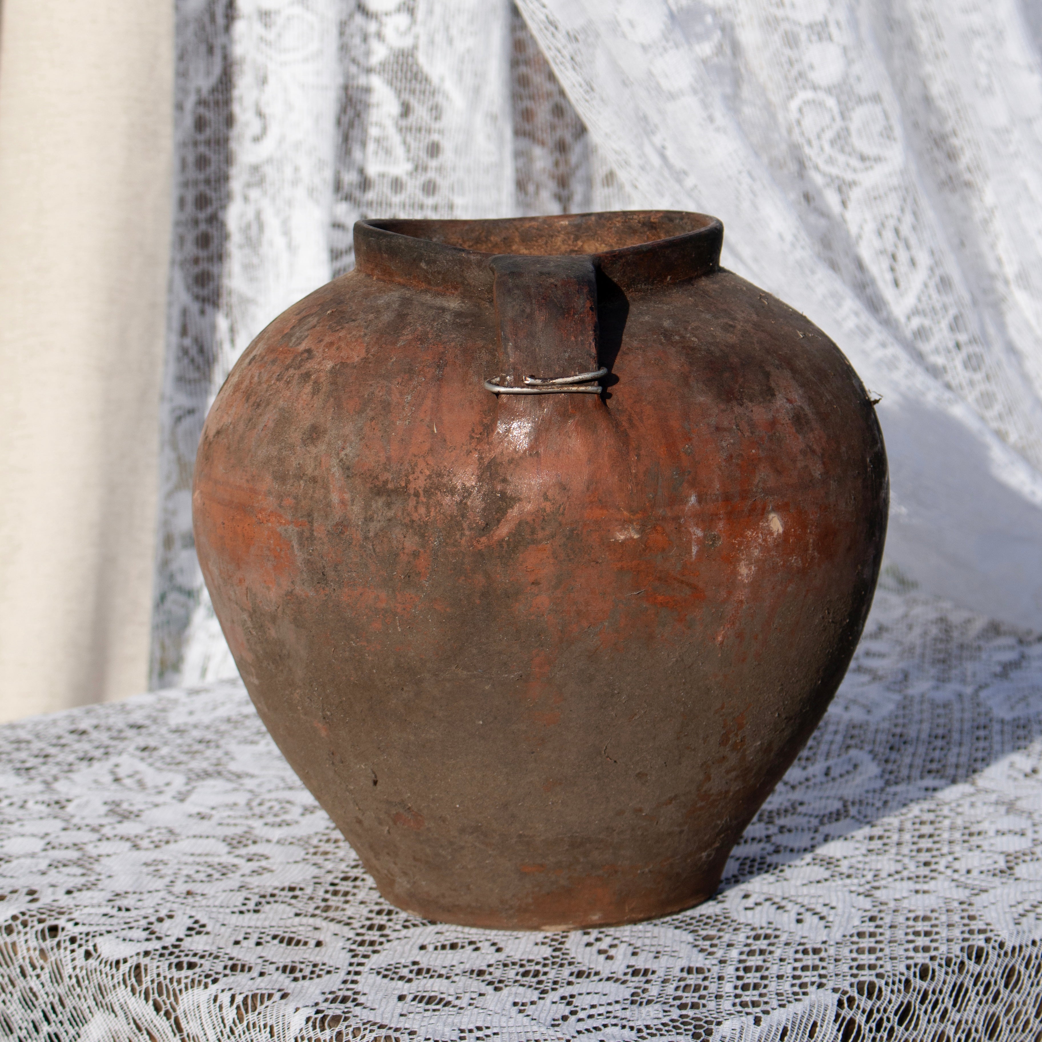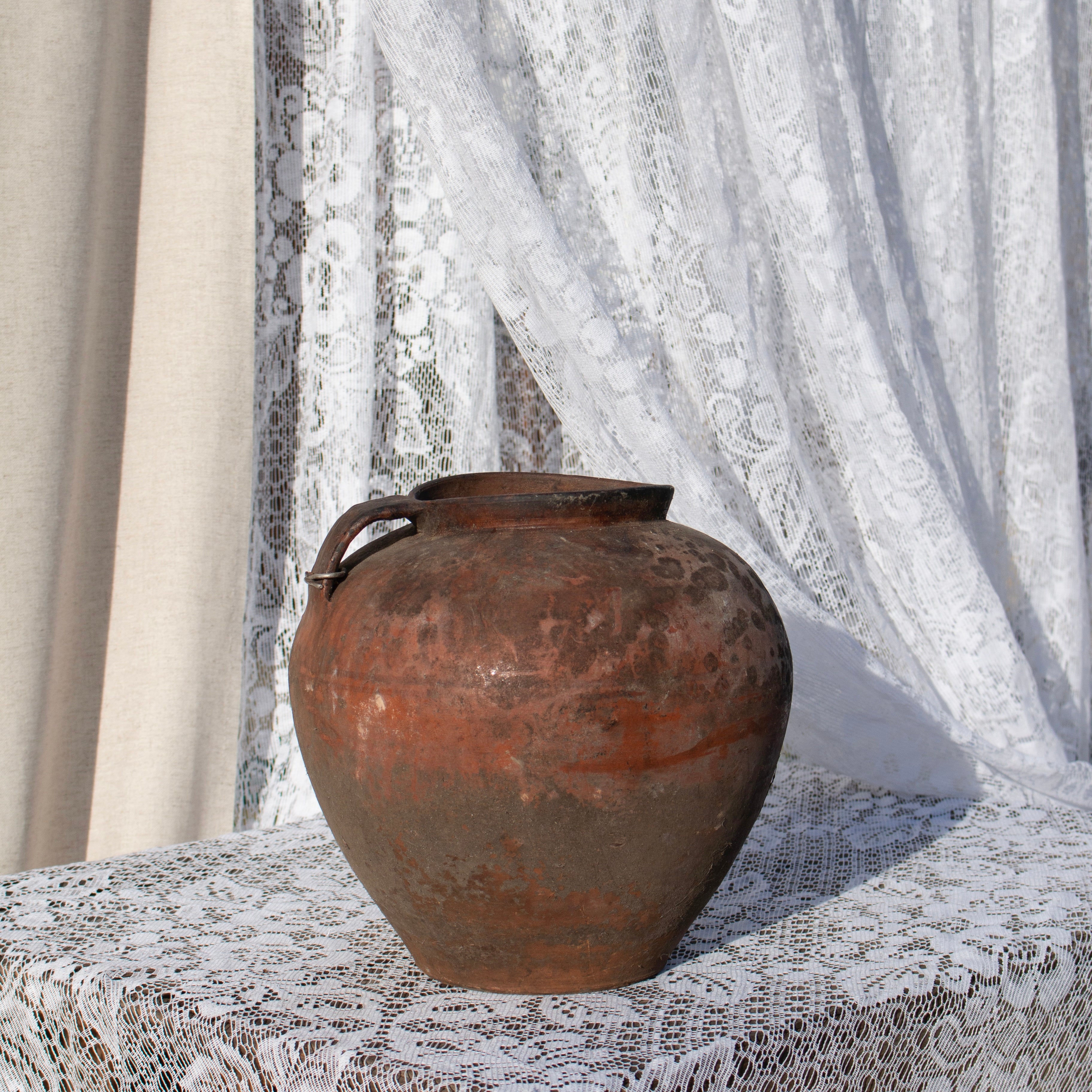Jedes Stück stammt aus entlegenen ukrainischen Dörfern in den Karpaten und ist ein seltenes Fundstück aus dem 20. Jahrhundert. Einst genutzt zum Kochen über offenem Feuer oder zum Aufbewahren von Milch, Saft und Wein, sind diese Gefäße Zeuge ursprünglicher Tradition.