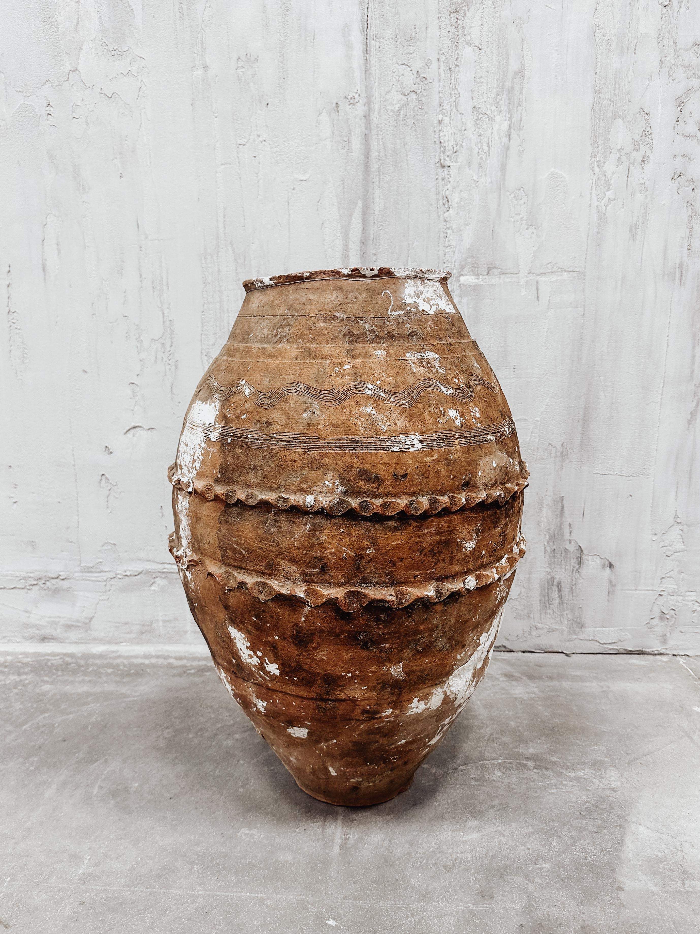 Antike Pottery aus der Region Anatolien in der Türkei. Terrakotta-Ton mit schöner Patina. In diesen Töpfen wurden Olivenöl, Honig, Wasser oder Wein aufbewahrt.