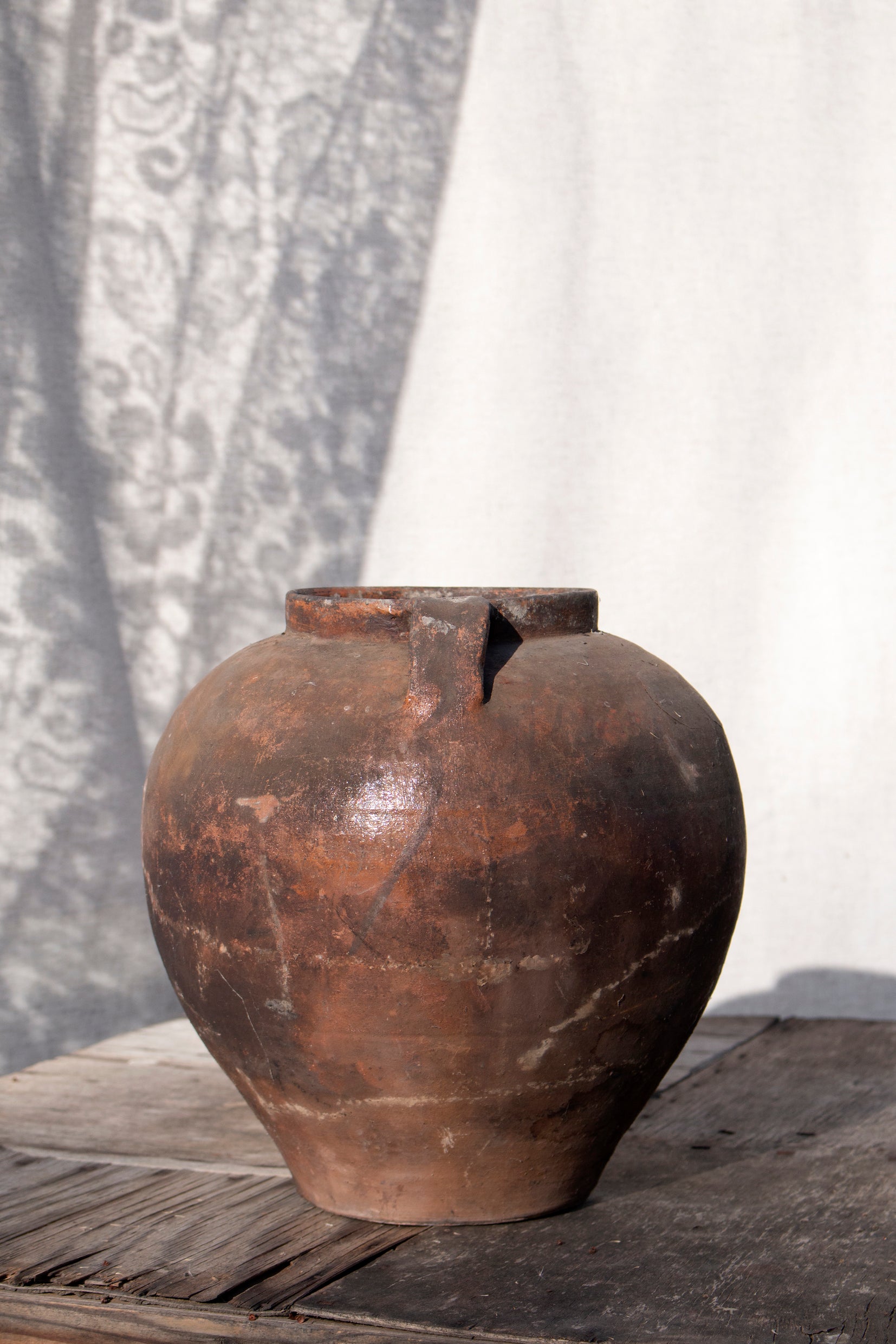 Jedes Stück stammt aus entlegenen ukrainischen Dörfern in den Karpaten und ist ein seltenes Fundstück aus dem 20. Jahrhundert. Einst genutzt zum Kochen über offenem Feuer oder zum Aufbewahren von Milch, Saft und Wein, sind diese Gefäße Zeuge ursprünglicher Tradition.