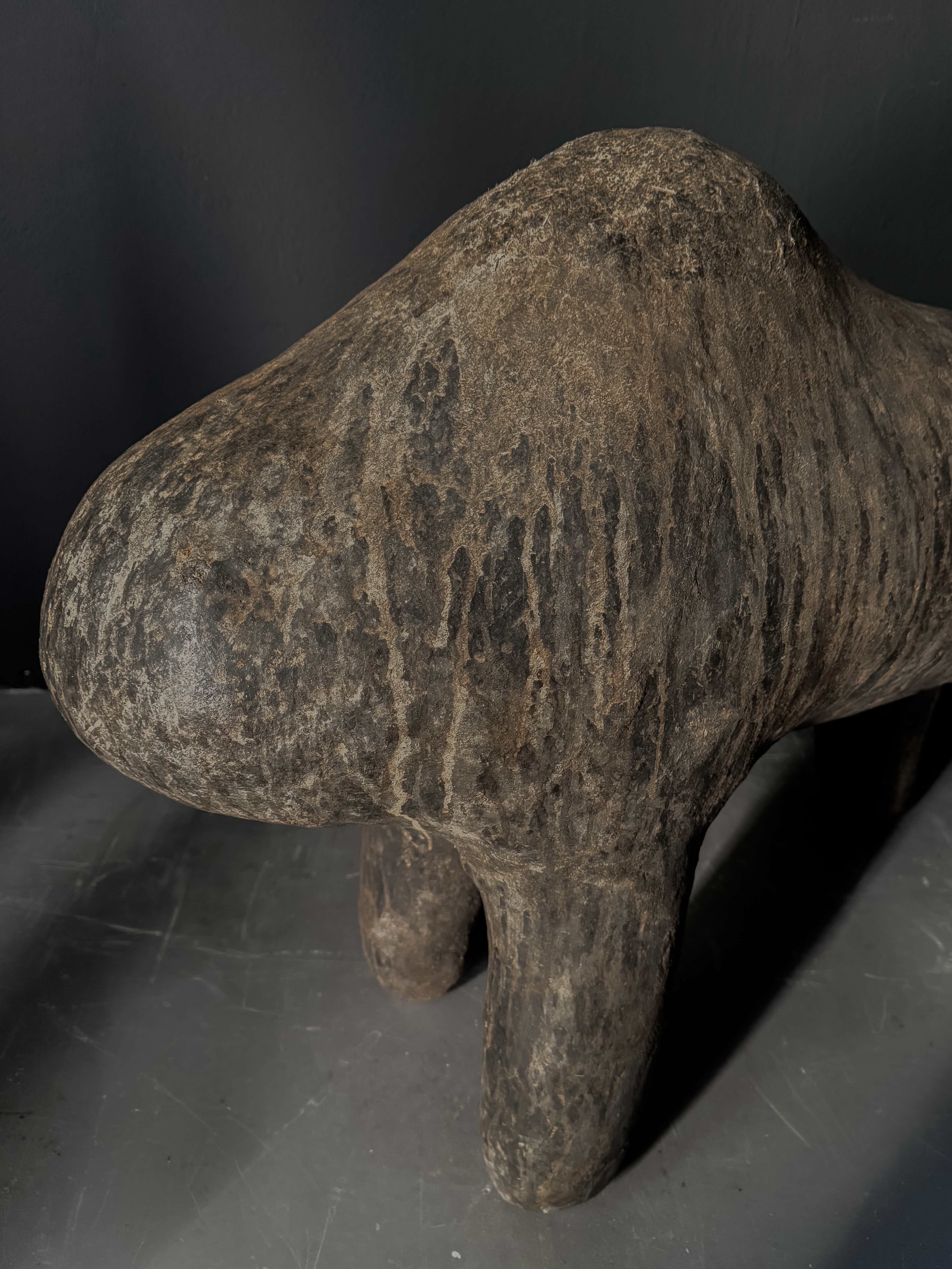 Diese kraftvolle Figur stammt aus Mali und ist inspiriert von den traditionellen Formen der Bambara-Kultur. Die skulpturale Silhouette erinnert an ein tierisches Wesen – reduziert auf das Wesentliche, roh und ausdrucksstark.