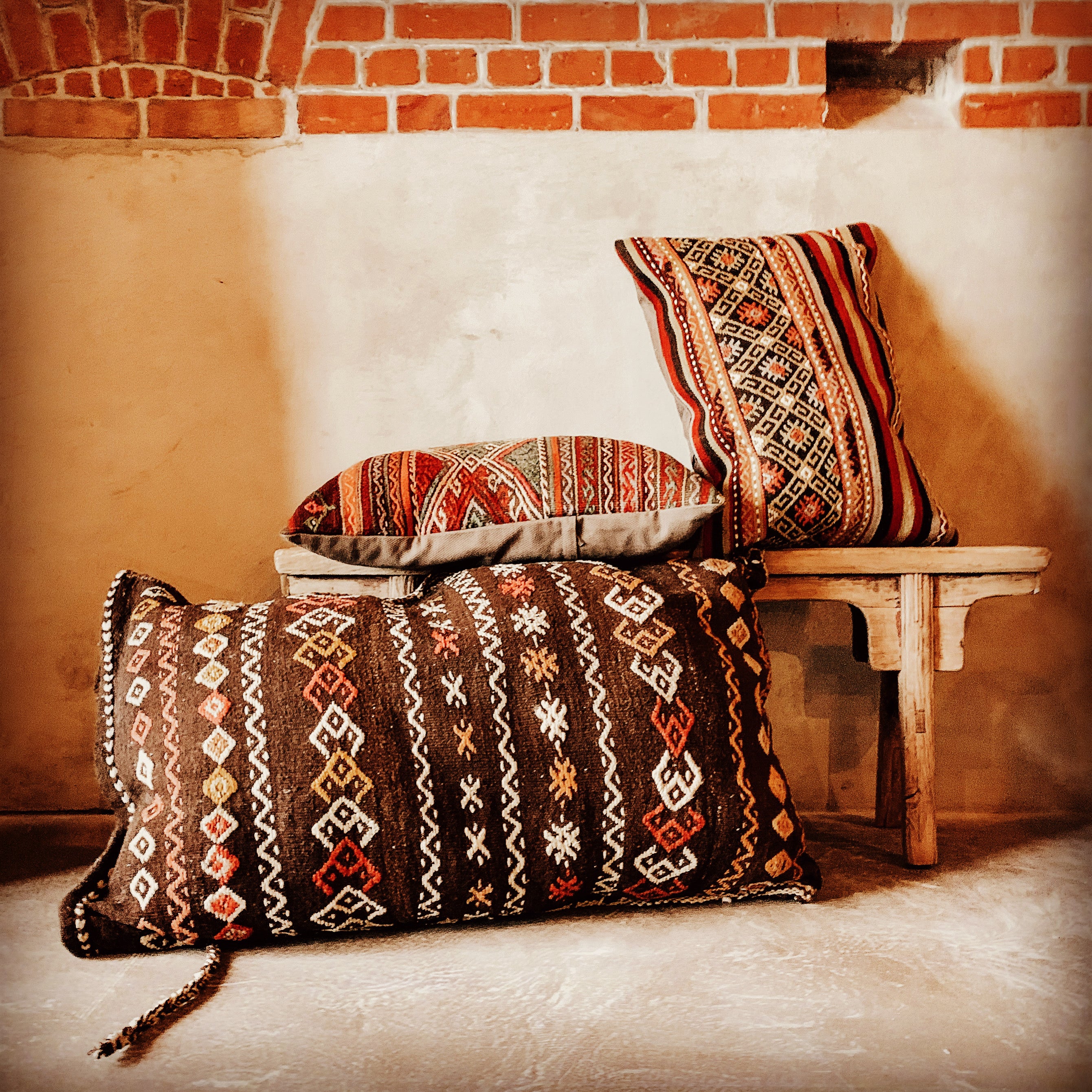 Außergewöhnlich in Form und Farbe: Kelim Bean Bag und Kissen. Groß, schwer, Hingucker Accessoire!