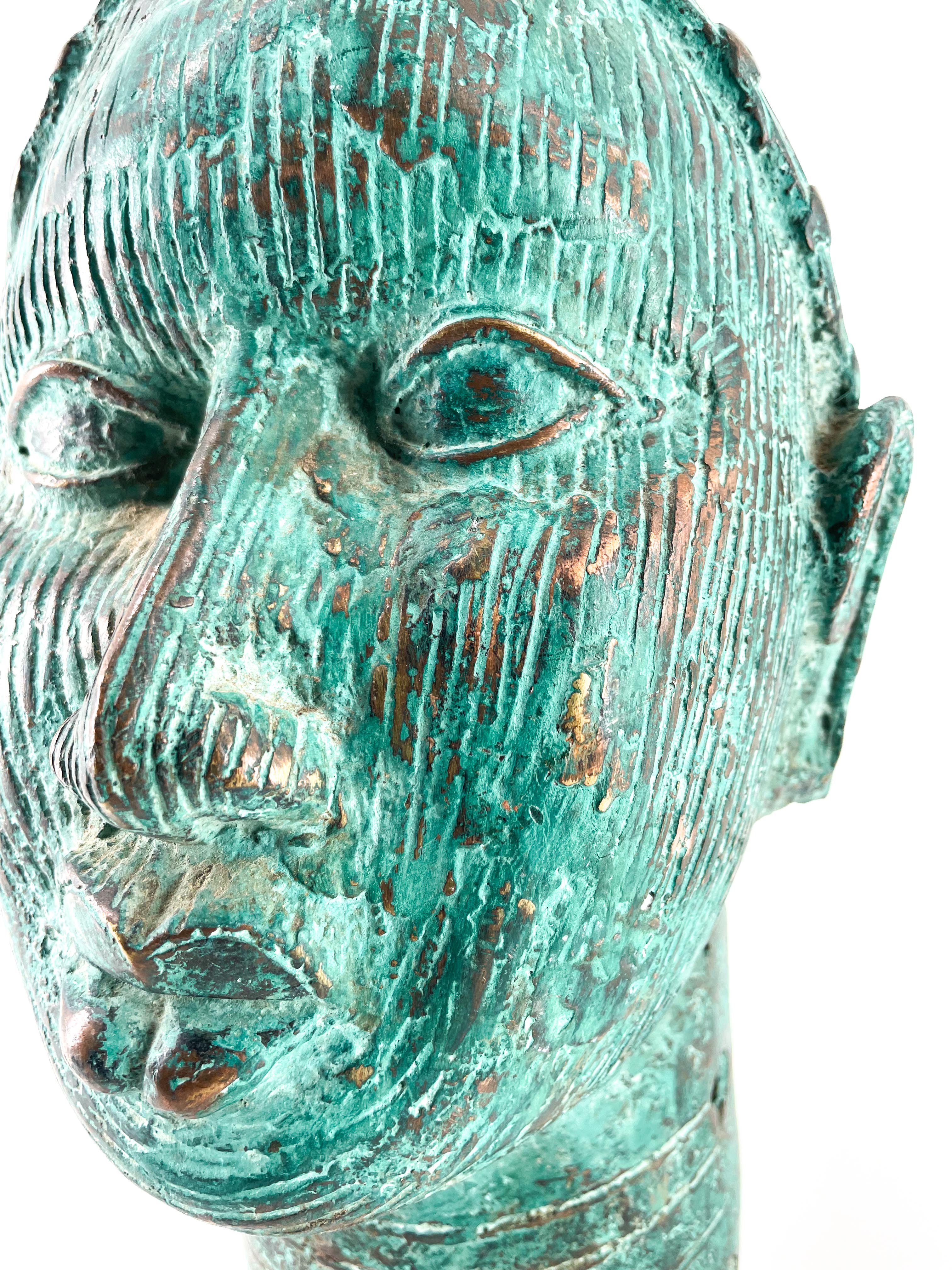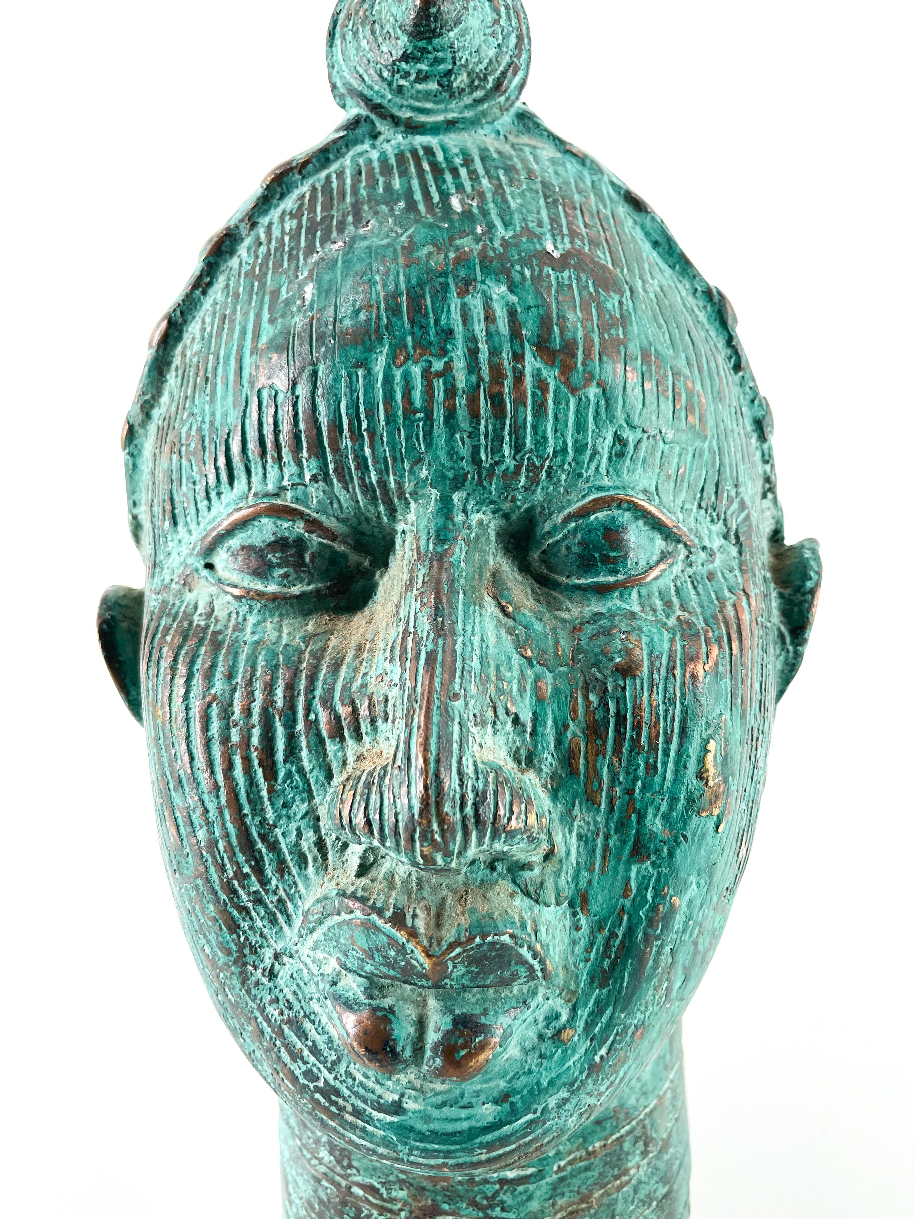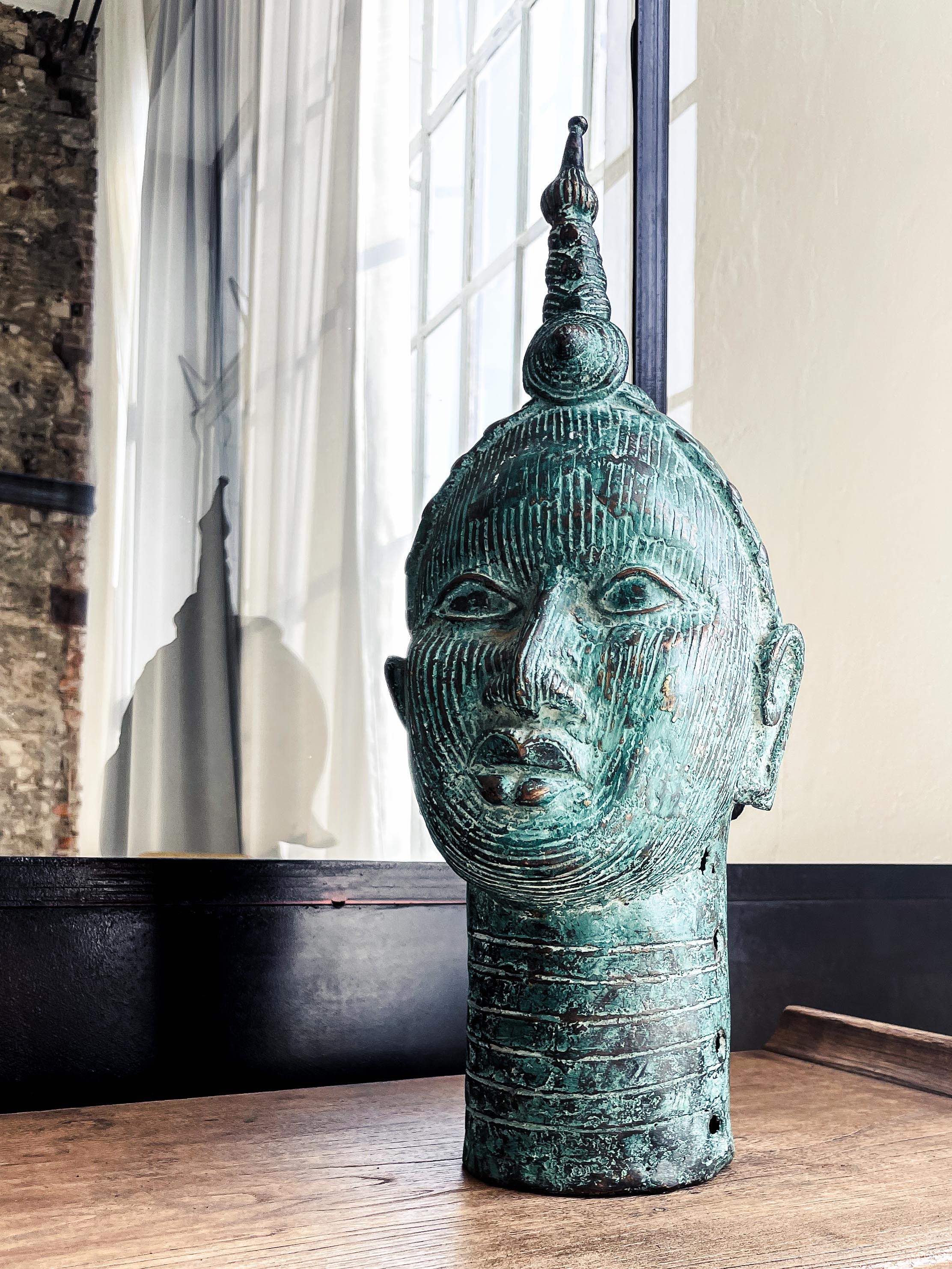 Dieser afrikanische, antike Bronze Kopf stammt aus dem Königreich Benin und symbolisiert Macht. Jedes Stück ist ein Unikat, von Hand geformt und dann in Bronze gegossen.