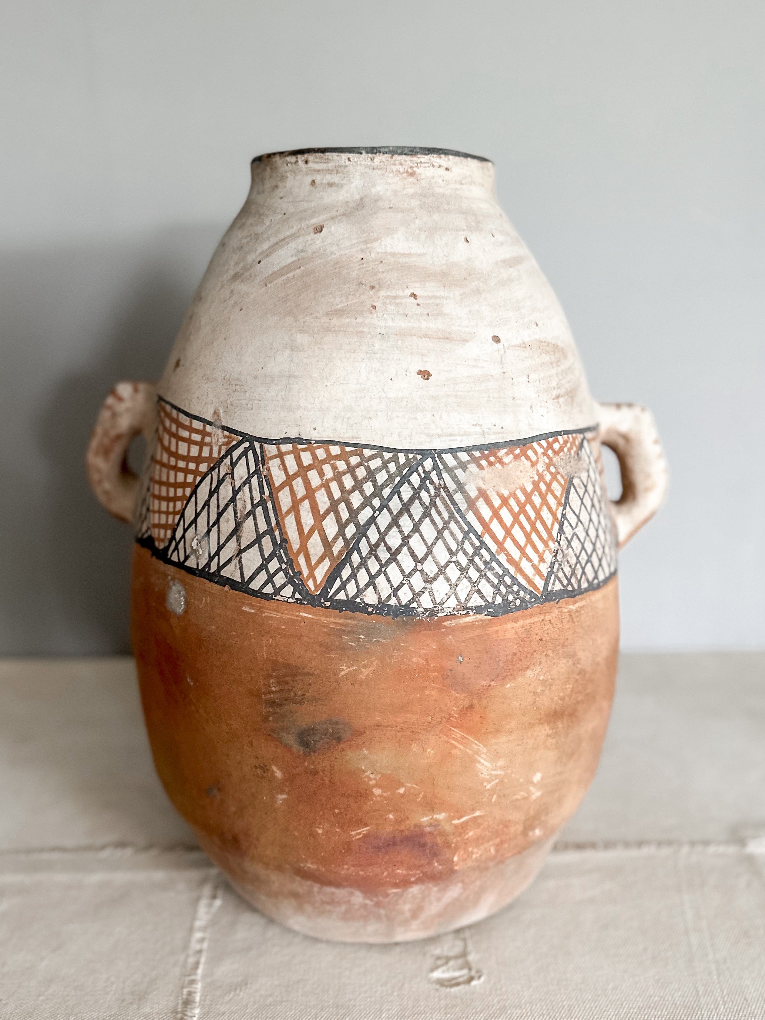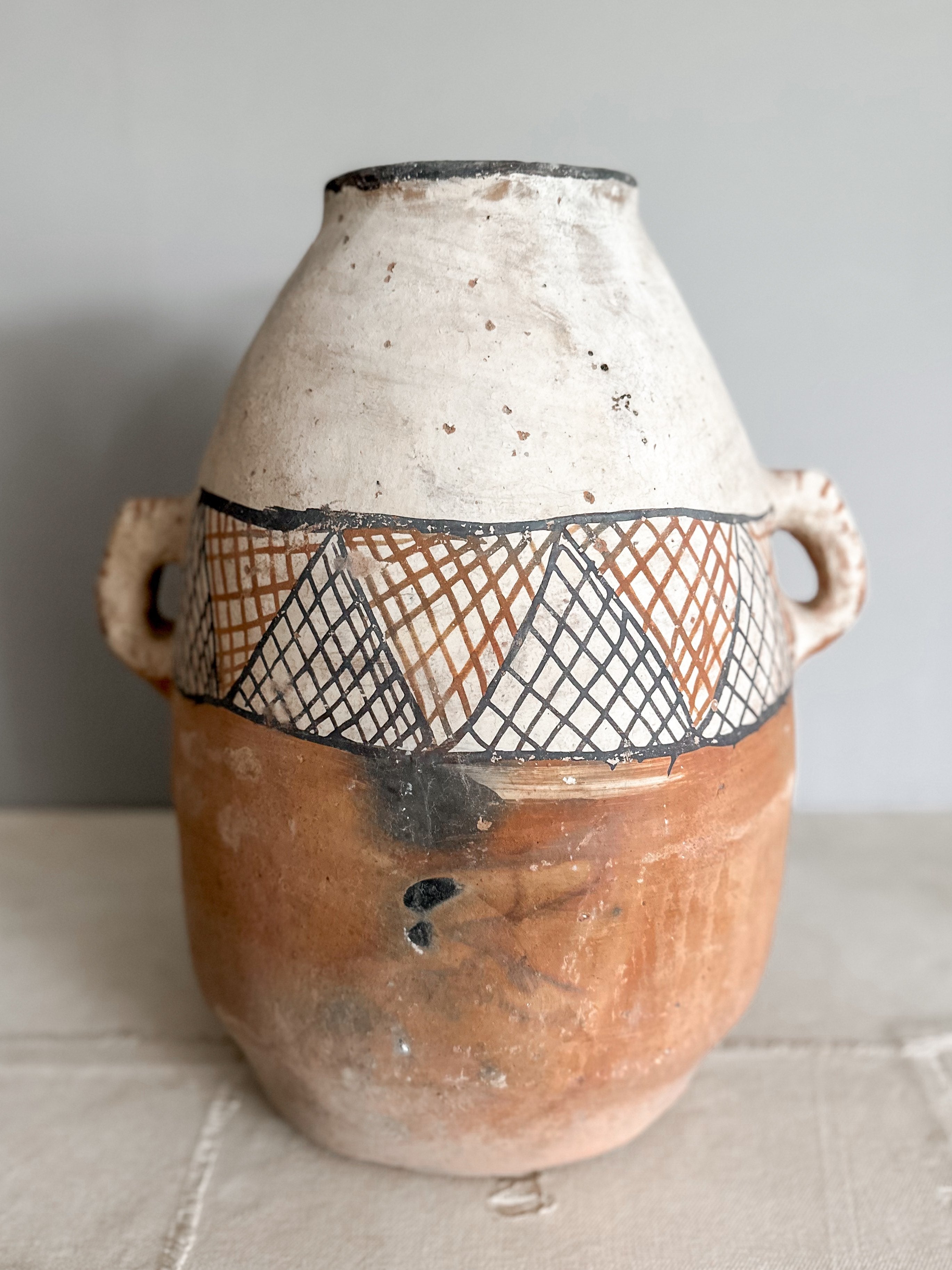 Diese Töpfe werden von den wundervollen Frauen im Rif Gebirge im Norden Marokkos handgefertigt. Die Pottery wird aus lokalem Ton hergestellt und auf offenem Feuer gebrannt. Die geometrischen Muster sind sorgfältig von Hand bemalt und stets einzigartig inspiriert von alter Felsenmalerei.