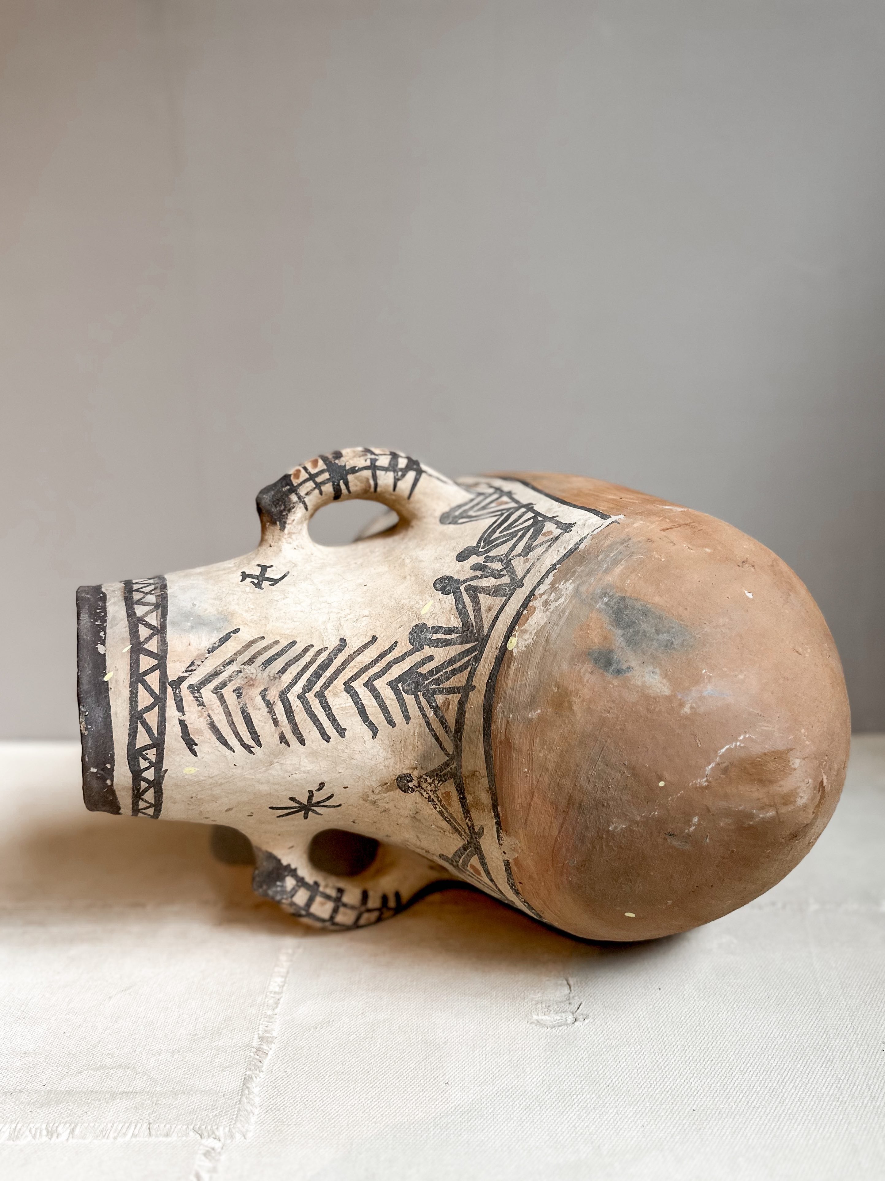 Bezauberndes Einzelstück mit zwei seitlichen Henkeln. Der Pott wird entweder angelehnt, um aufrecht zu stehen, oder er ist auch im Liegen ein echter Hingucker.