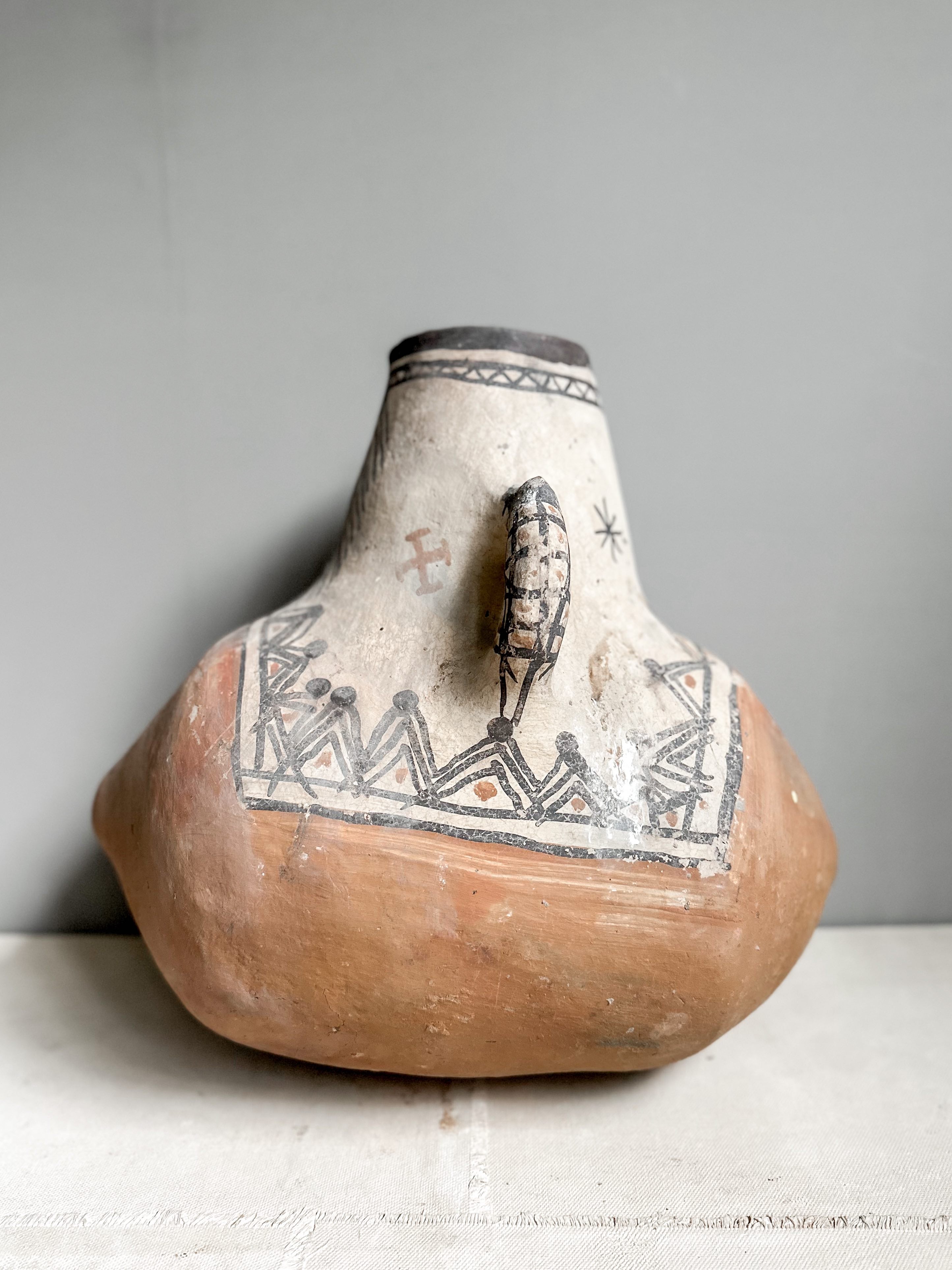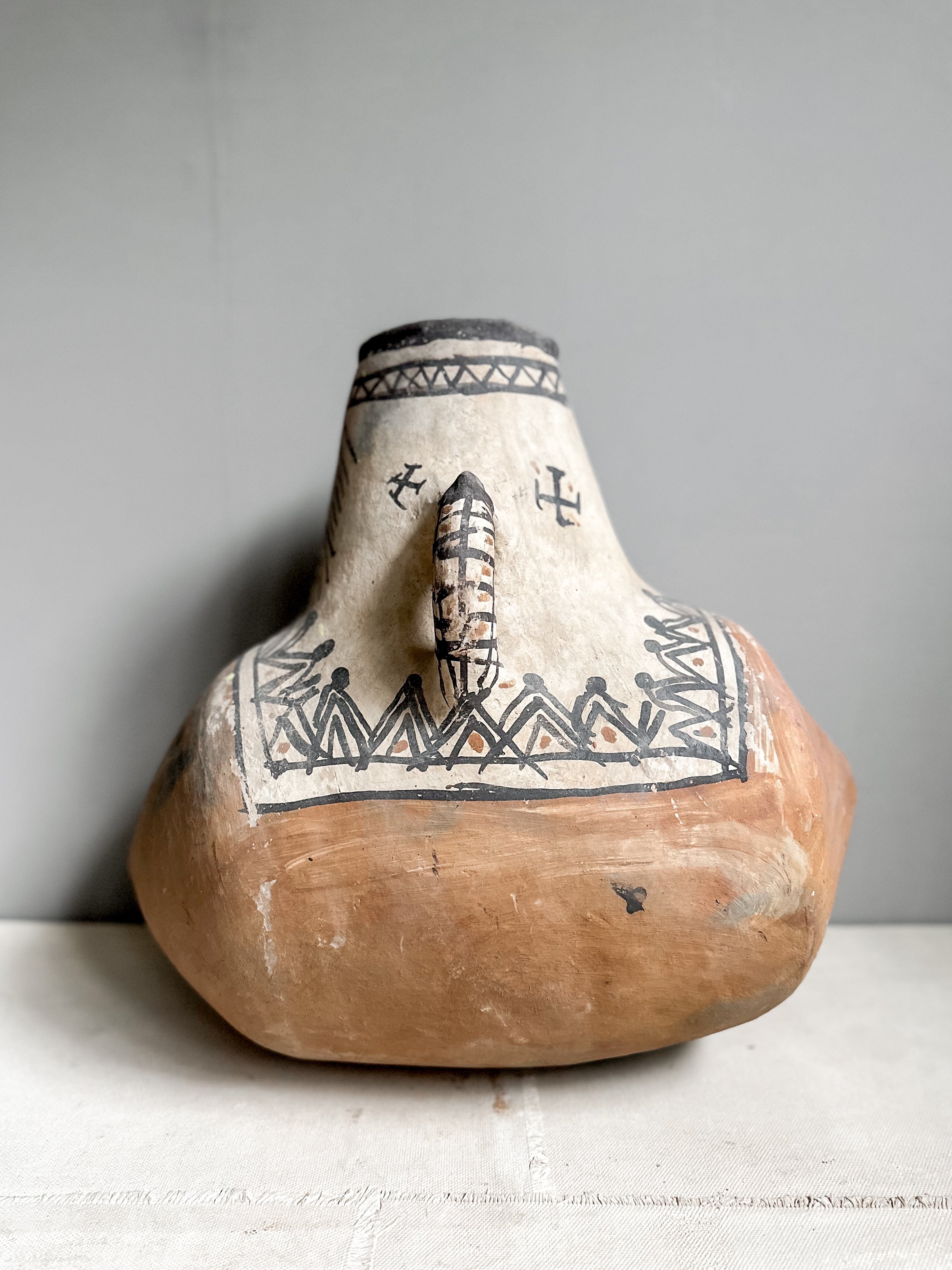 Diese Töpfe werden von den wundervollen Frauen im Rif Gebirge im Norden Marokkos handgefertigt. Die Pottery wird aus lokalem Ton hergestellt und auf offenem Feuer gebrannt. Die geometrischen Muster sind sorgfältig von Hand bemalt und stets einzigartig inspiriert von alter Felsenmalerei.