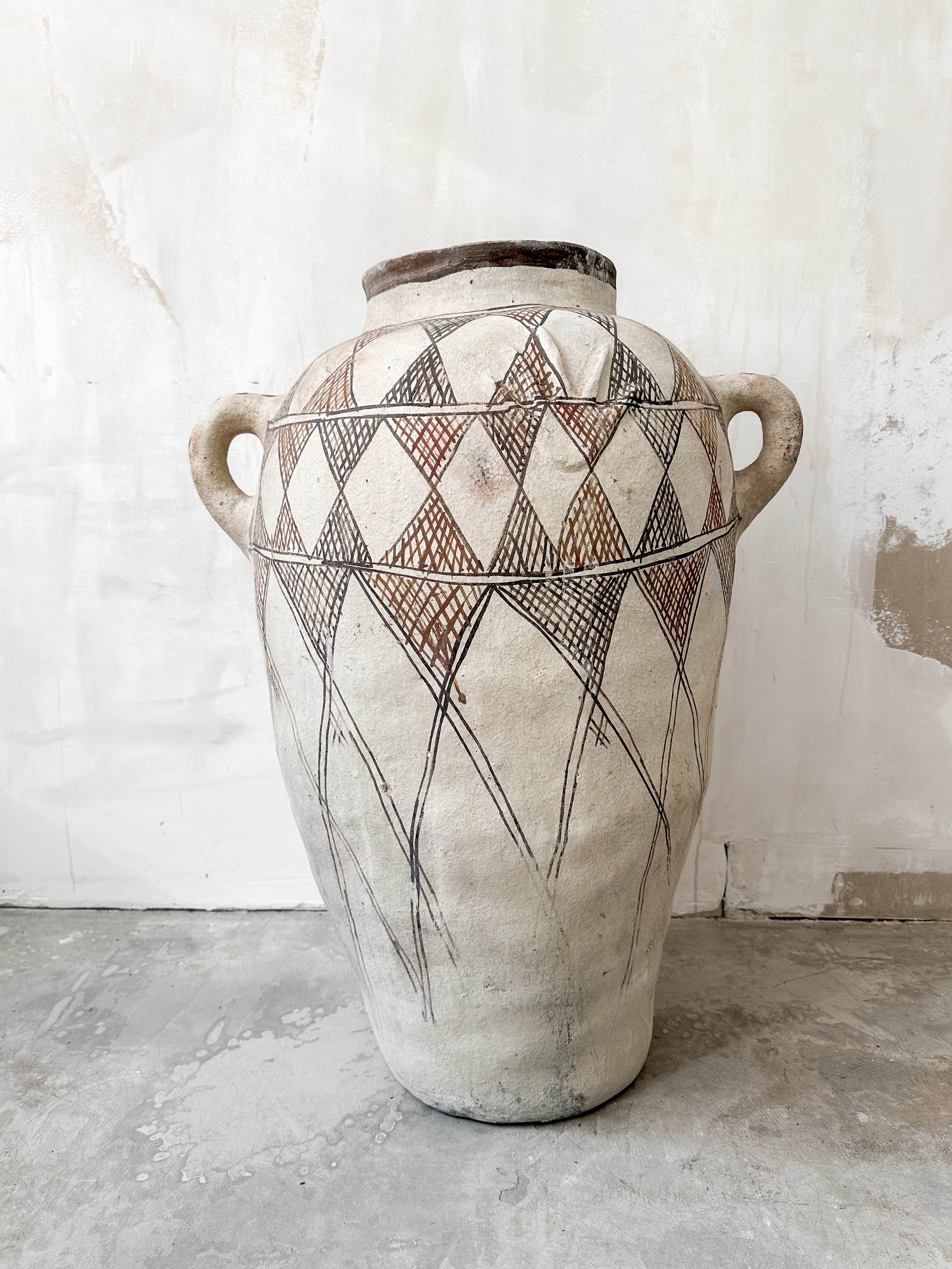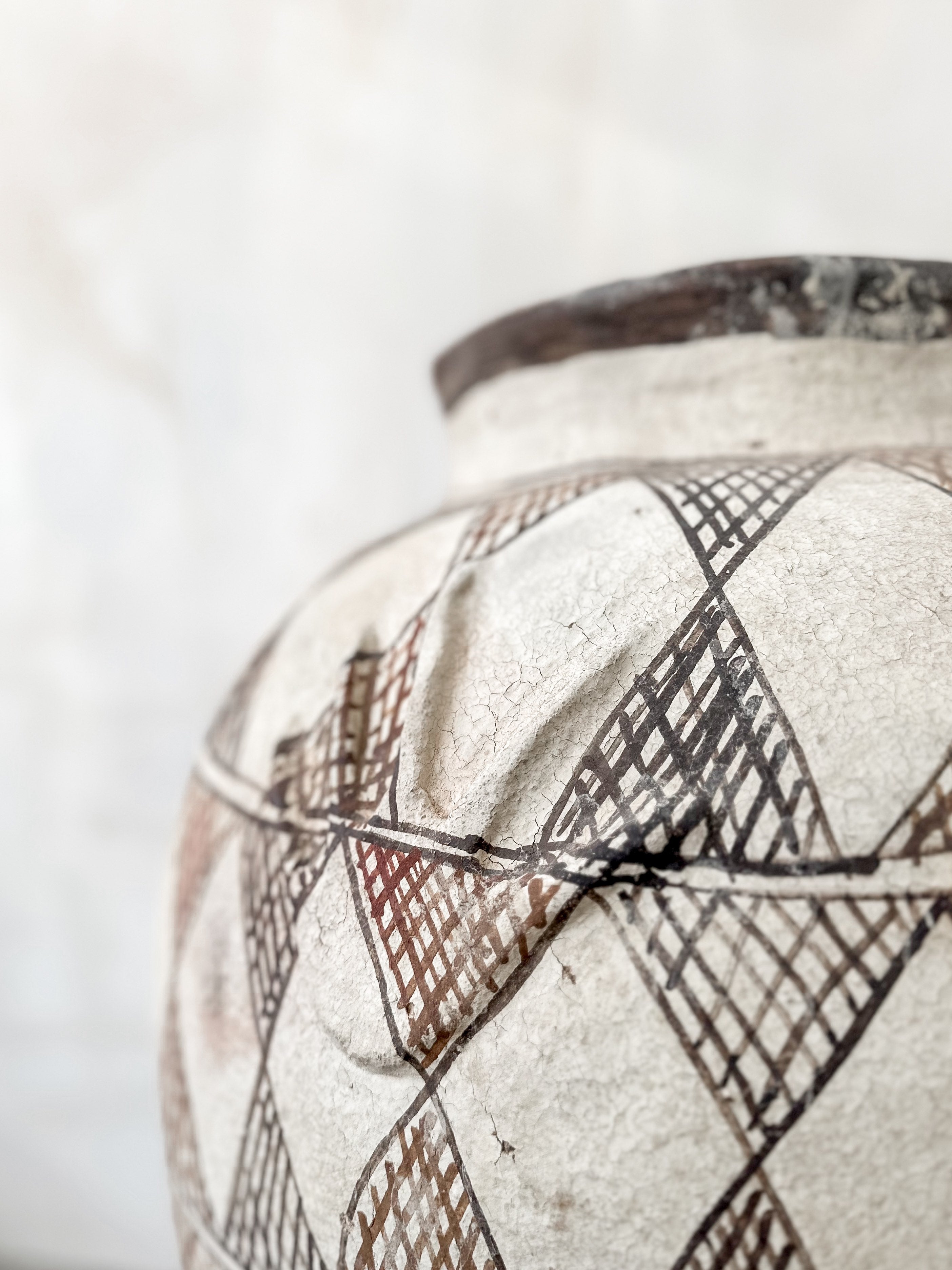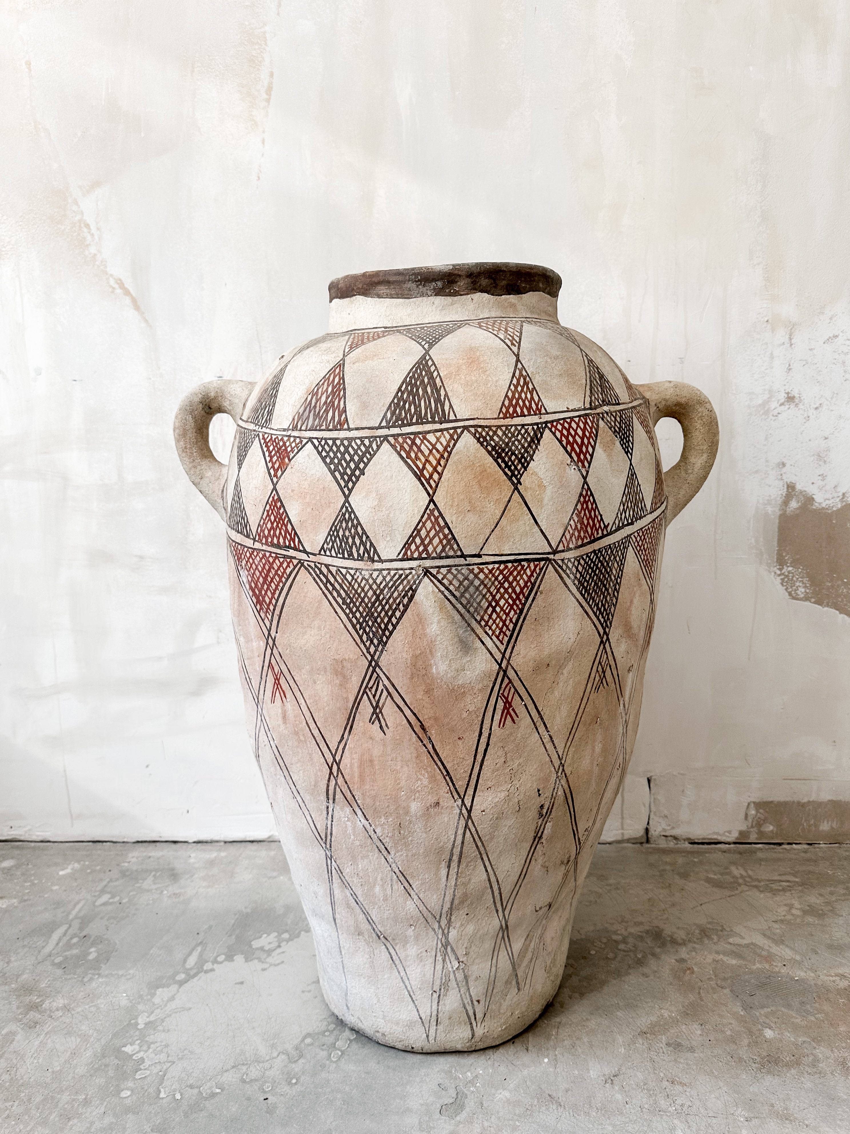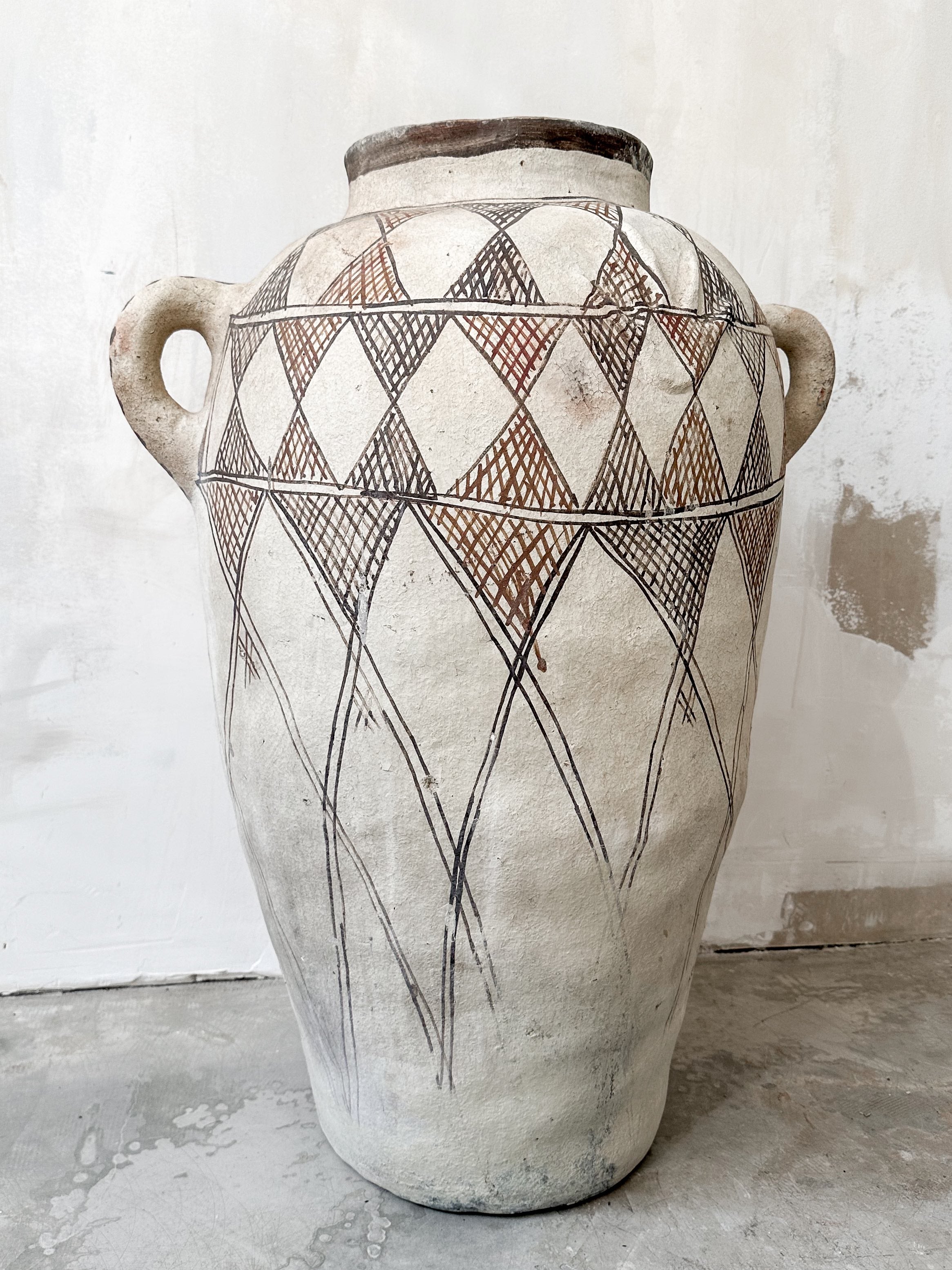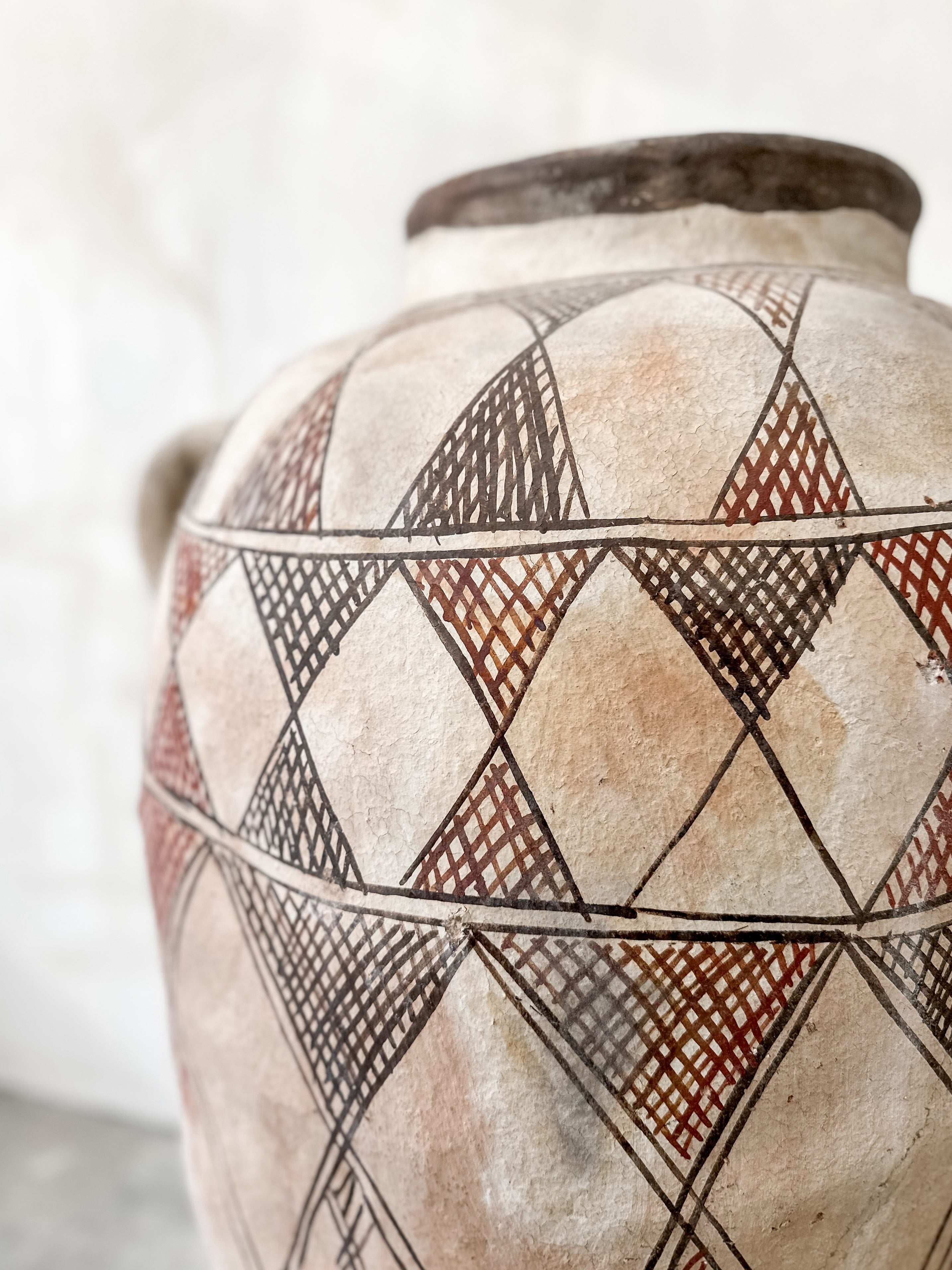 Diese Töpfe werden von den wundervollen Frauen im Rif Gebirge im Norden Marokkos handgefertigt. Die Pottery wird aus lokalem Ton hergestellt und auf offenem Feuer gebrannt. Die geometrischen Muster sind sorgfältig von Hand bemalt und stets einzigartig inspiriert von alter Felsenmalerei.