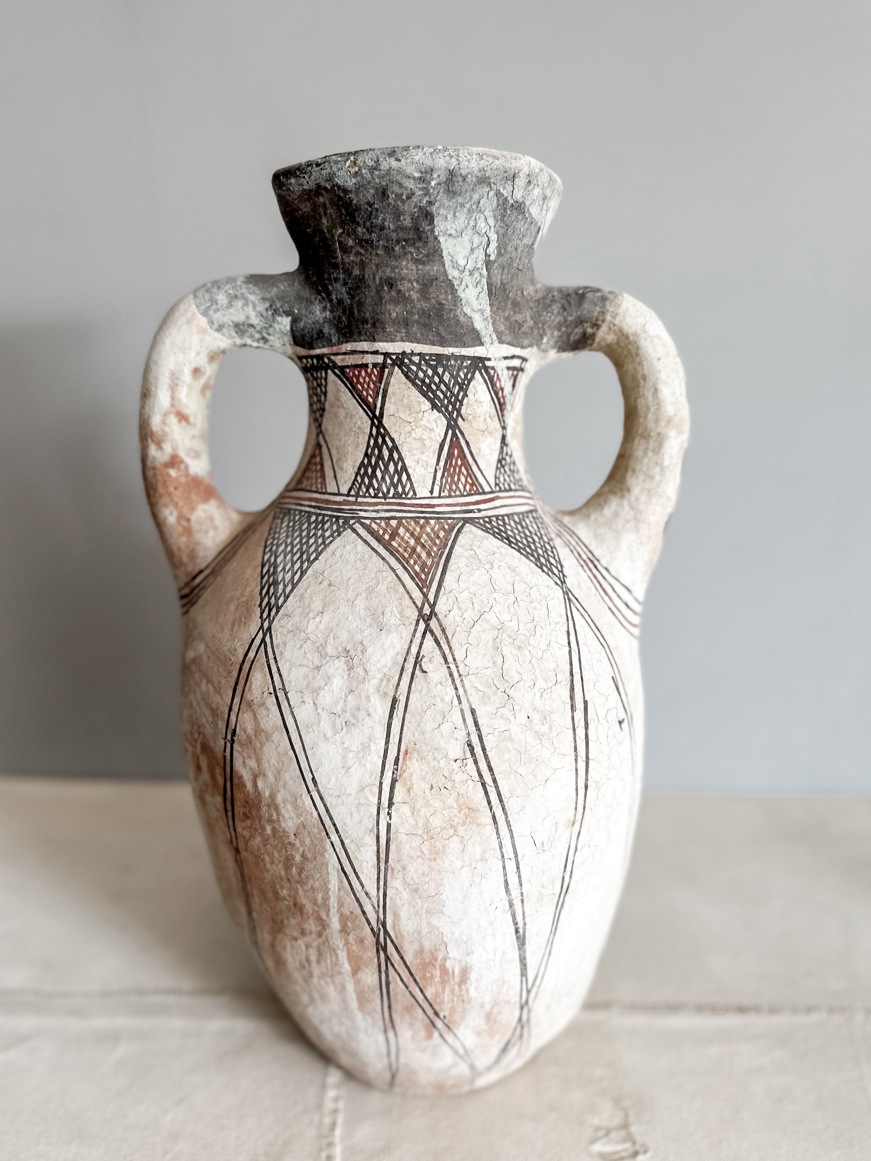 Diese Töpfe werden von den wundervollen Frauen im Rif Gebirge im Norden Marokkos handgefertigt. Die Pottery wird aus lokalem Ton hergestellt und auf offenem Feuer gebrannt. Die geometrischen Muster sind sorgfältig von Hand bemalt und stets einzigartig inspiriert von alter Felsenmalerei.