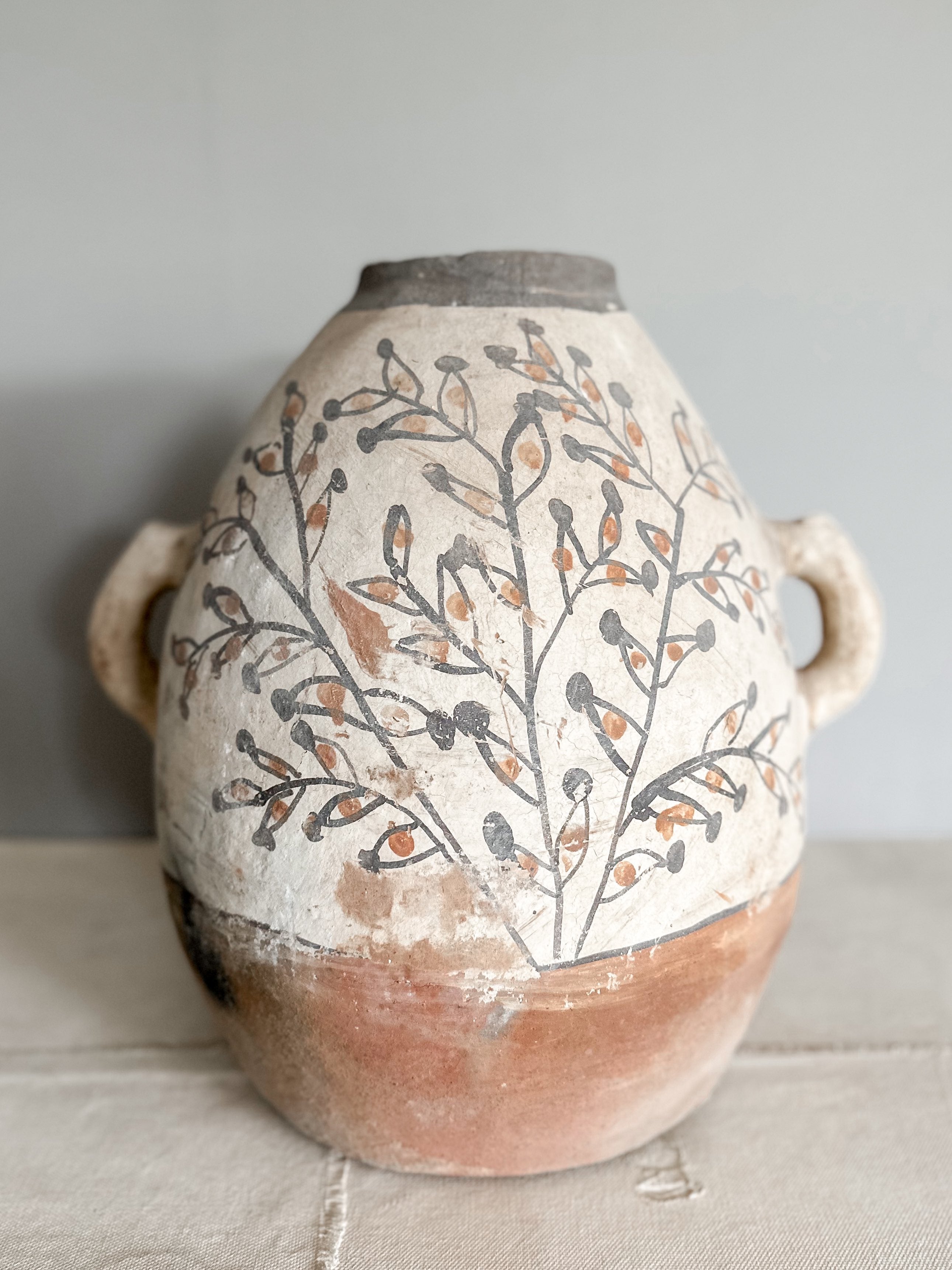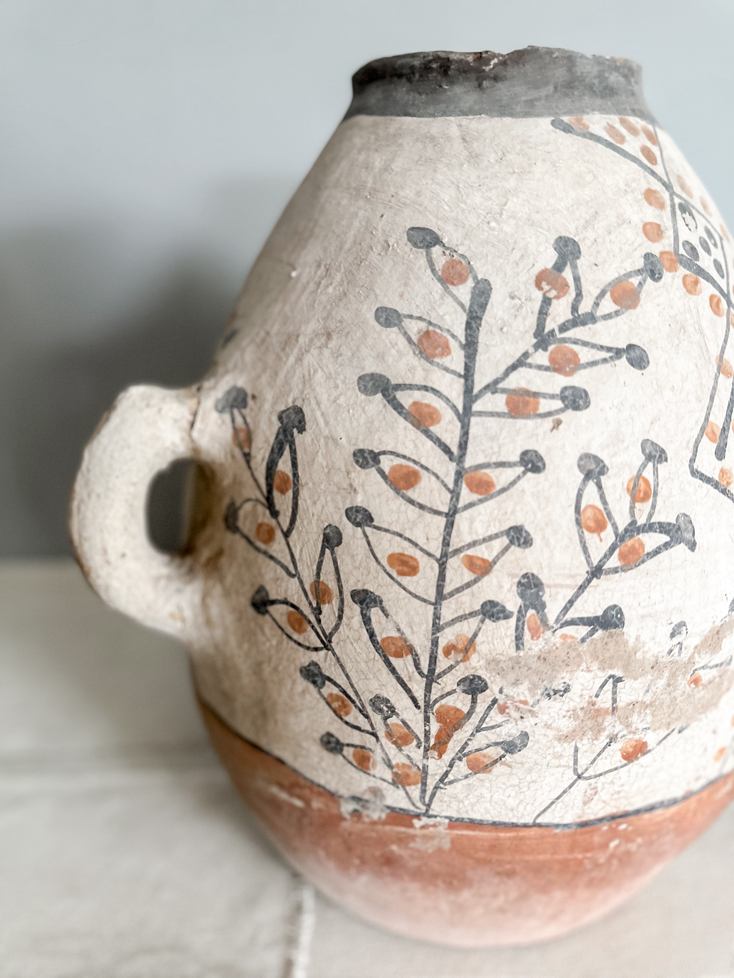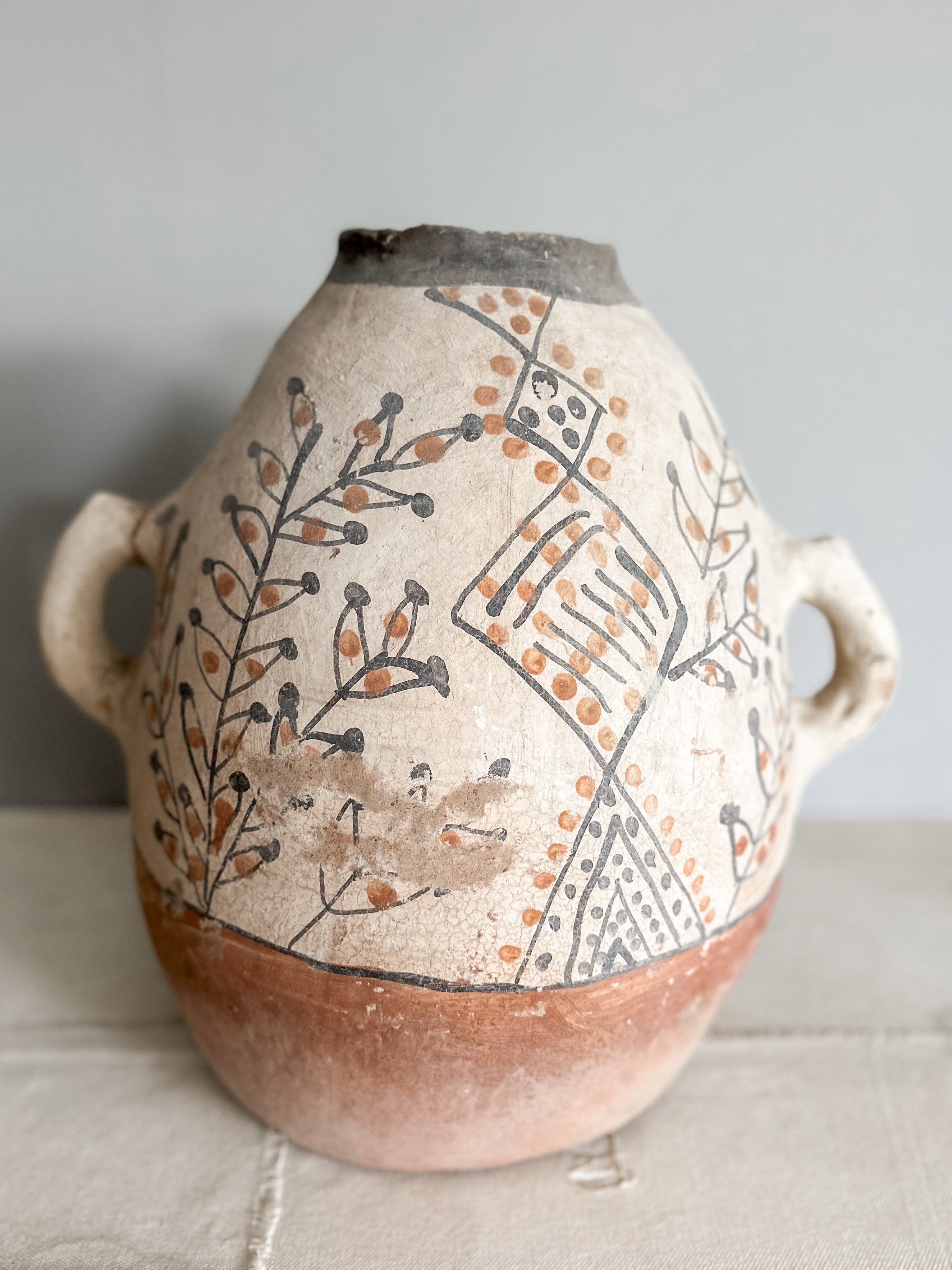 Diese Töpfe werden von den wundervollen Frauen im Rif Gebirge im Norden Marokkos handgefertigt. Die Pottery wird aus lokalem Ton hergestellt und auf offenem Feuer gebrannt. Die geometrischen Muster sind sorgfältig von Hand bemalt und stets einzigartig inspiriert von alter Felsenmalerei.