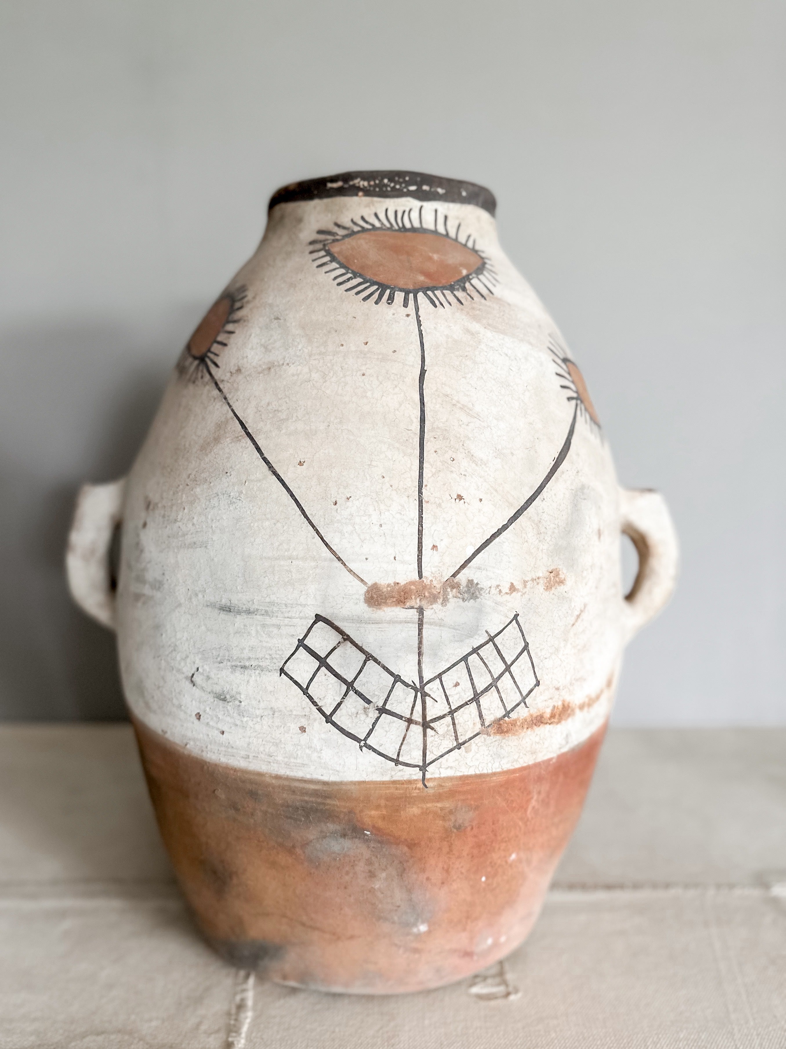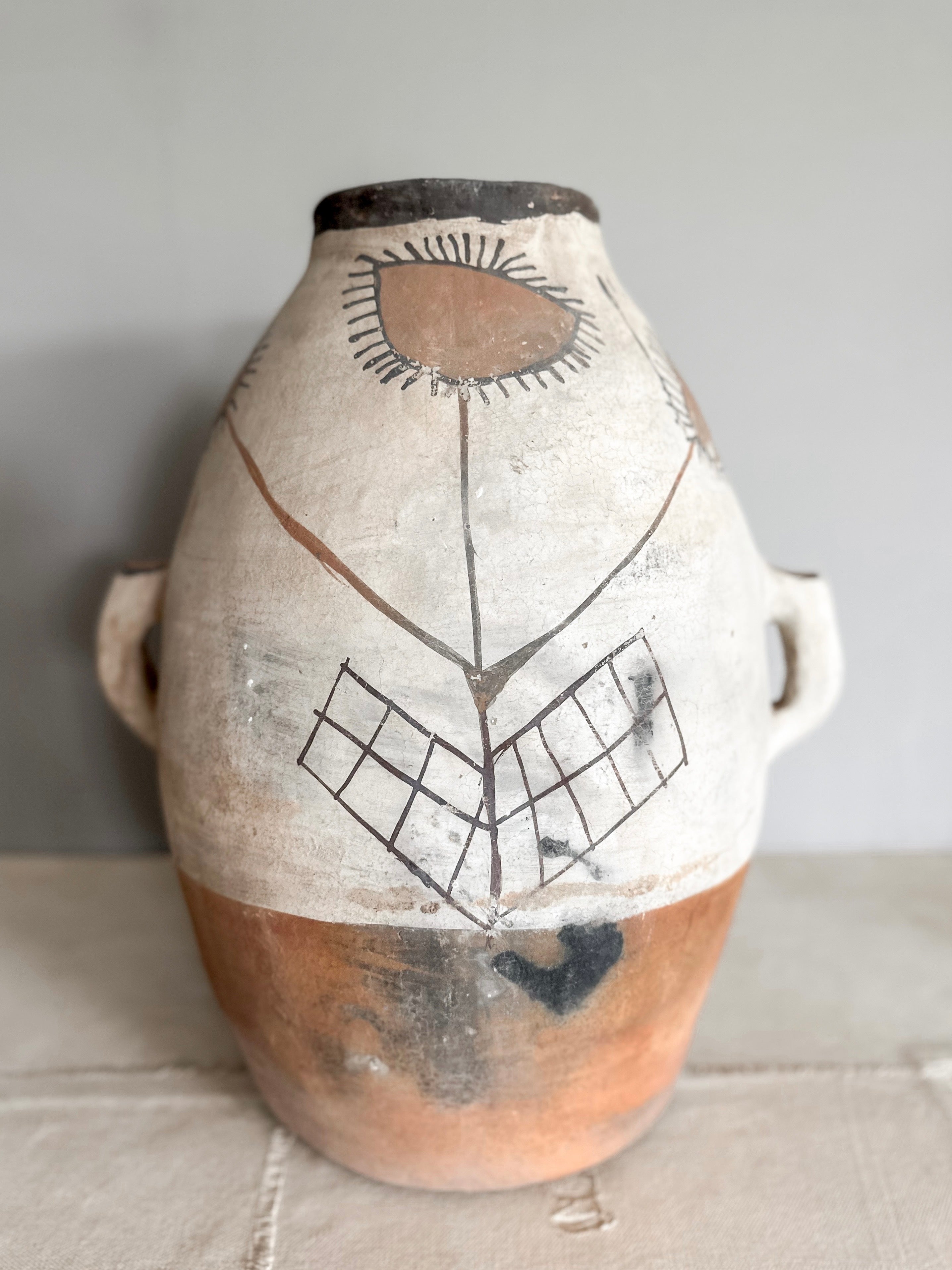 Diese Töpfe werden von den wundervollen Frauen im Rif Gebirge im Norden Marokkos handgefertigt. Die Pottery wird aus lokalem Ton hergestellt und auf offenem Feuer gebrannt. Die geometrischen Muster sind sorgfältig von Hand bemalt und stets einzigartig inspiriert von alter Felsenmalerei.