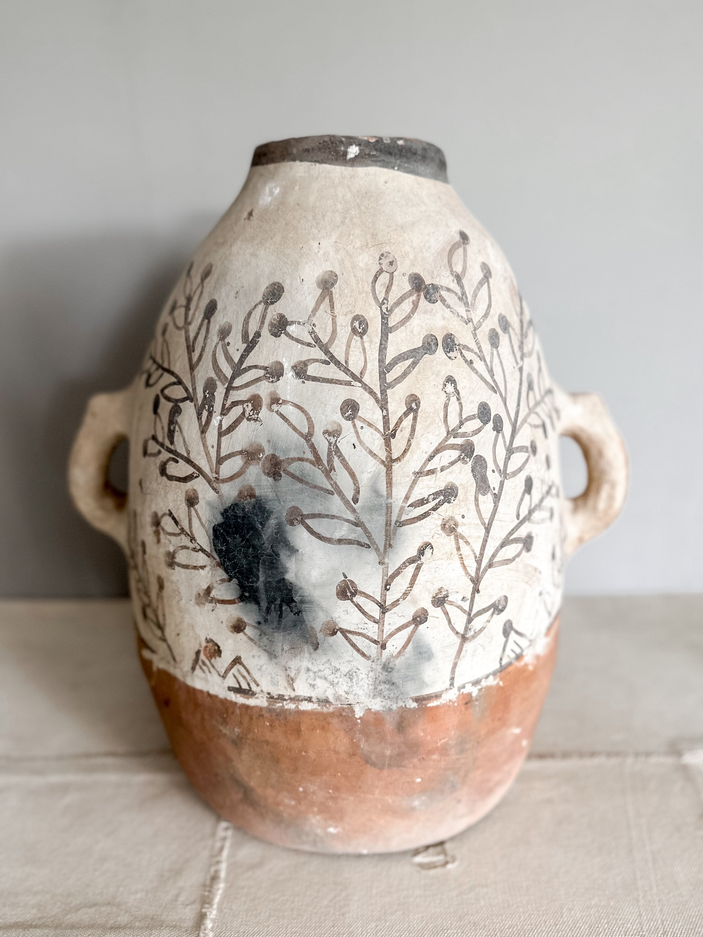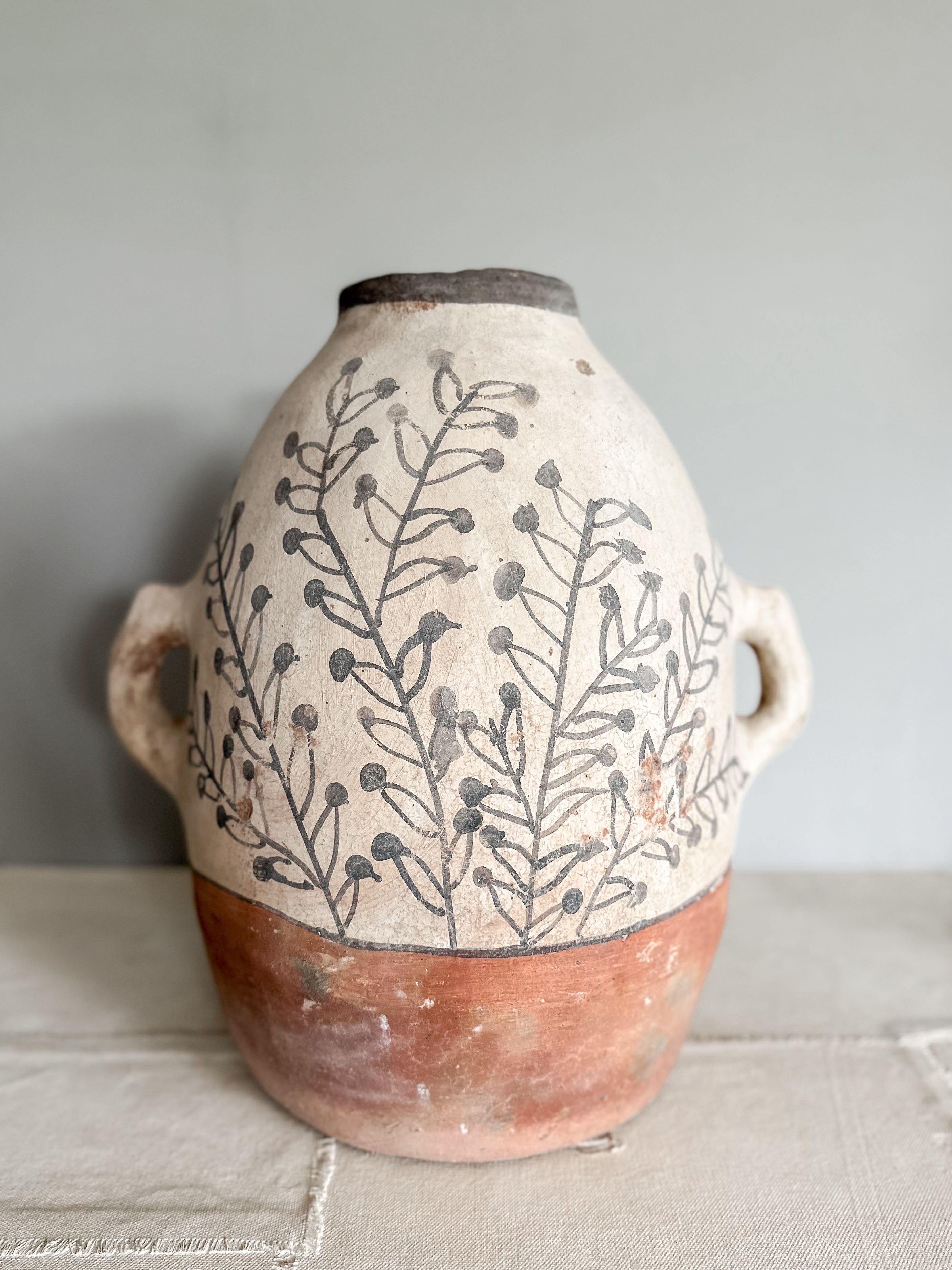 Diese Töpfe werden von den wundervollen Frauen im Rif Gebirge im Norden Marokkos handgefertigt. Die Pottery wird aus lokalem Ton hergestellt und auf offenem Feuer gebrannt. Die geometrischen Muster sind sorgfältig von Hand bemalt und stets einzigartig inspiriert von alter Felsenmalerei.