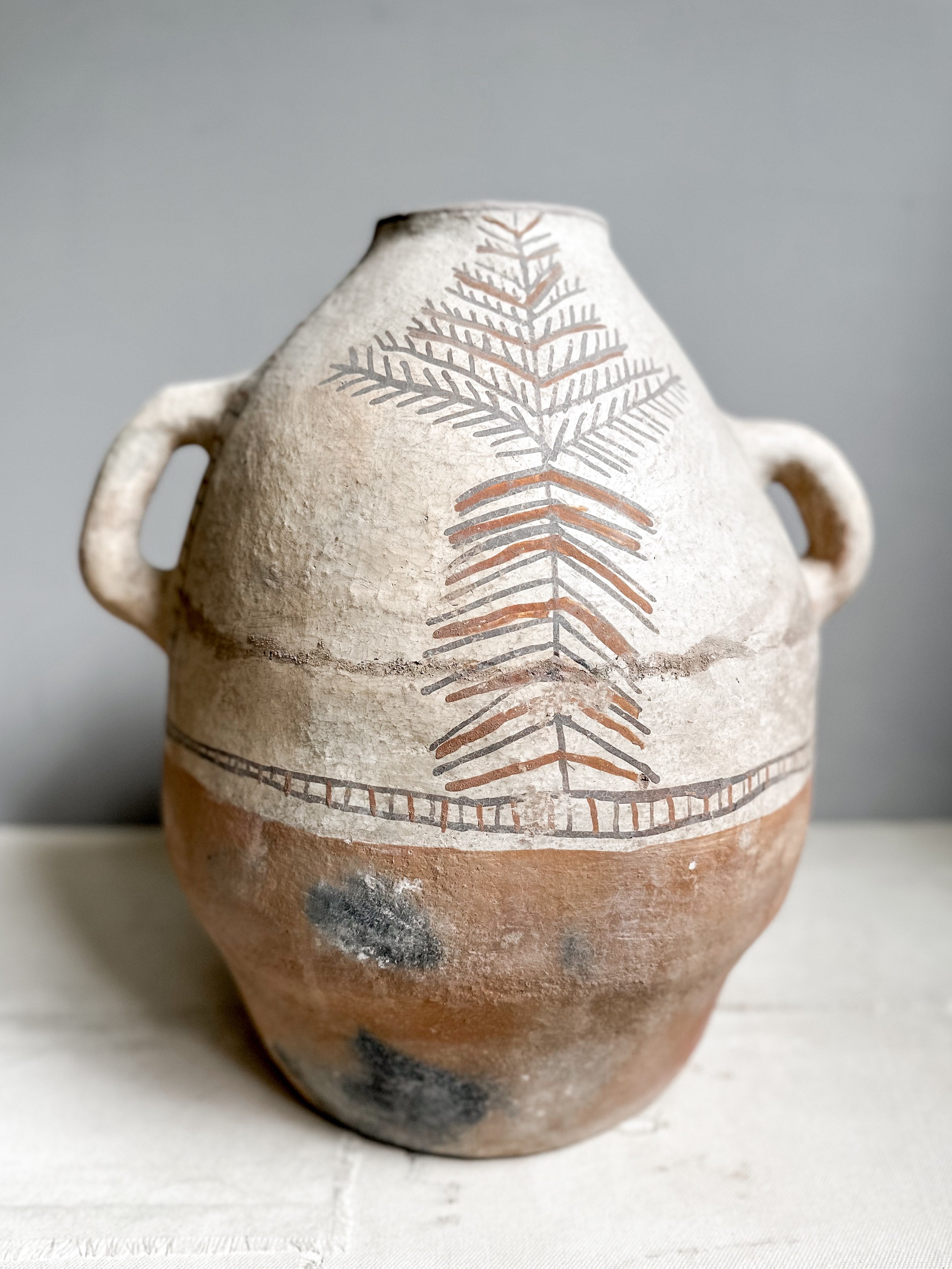 Diese Töpfe werden von den wundervollen Frauen im Rif Gebirge im Norden Marokkos handgefertigt. Die Pottery wird aus lokalem Ton hergestellt und auf offenem Feuer gebrannt. Die geometrischen Muster sind sorgfältig von Hand bemalt und stets einzigartig inspiriert von alter Felsenmalerei.
