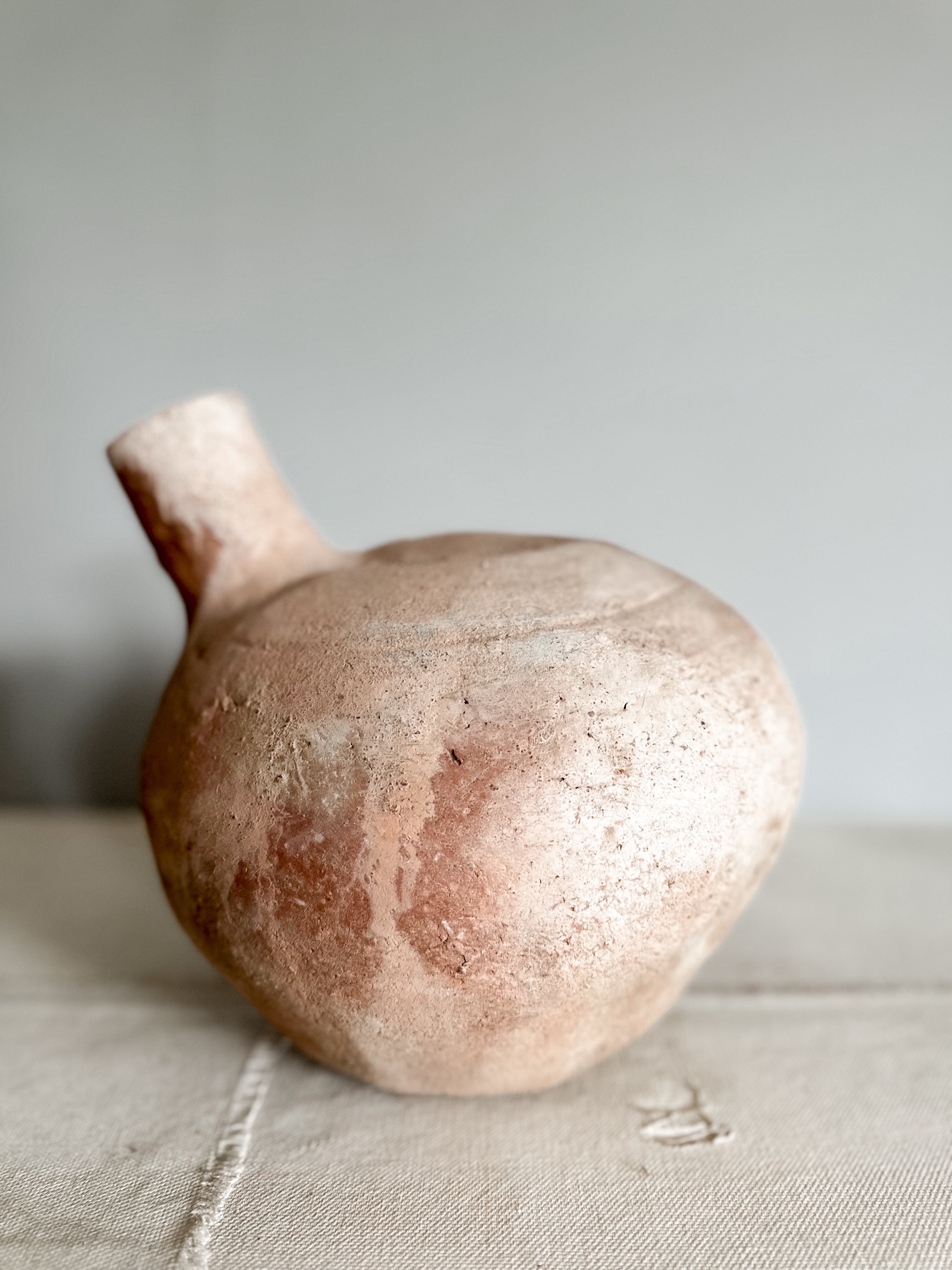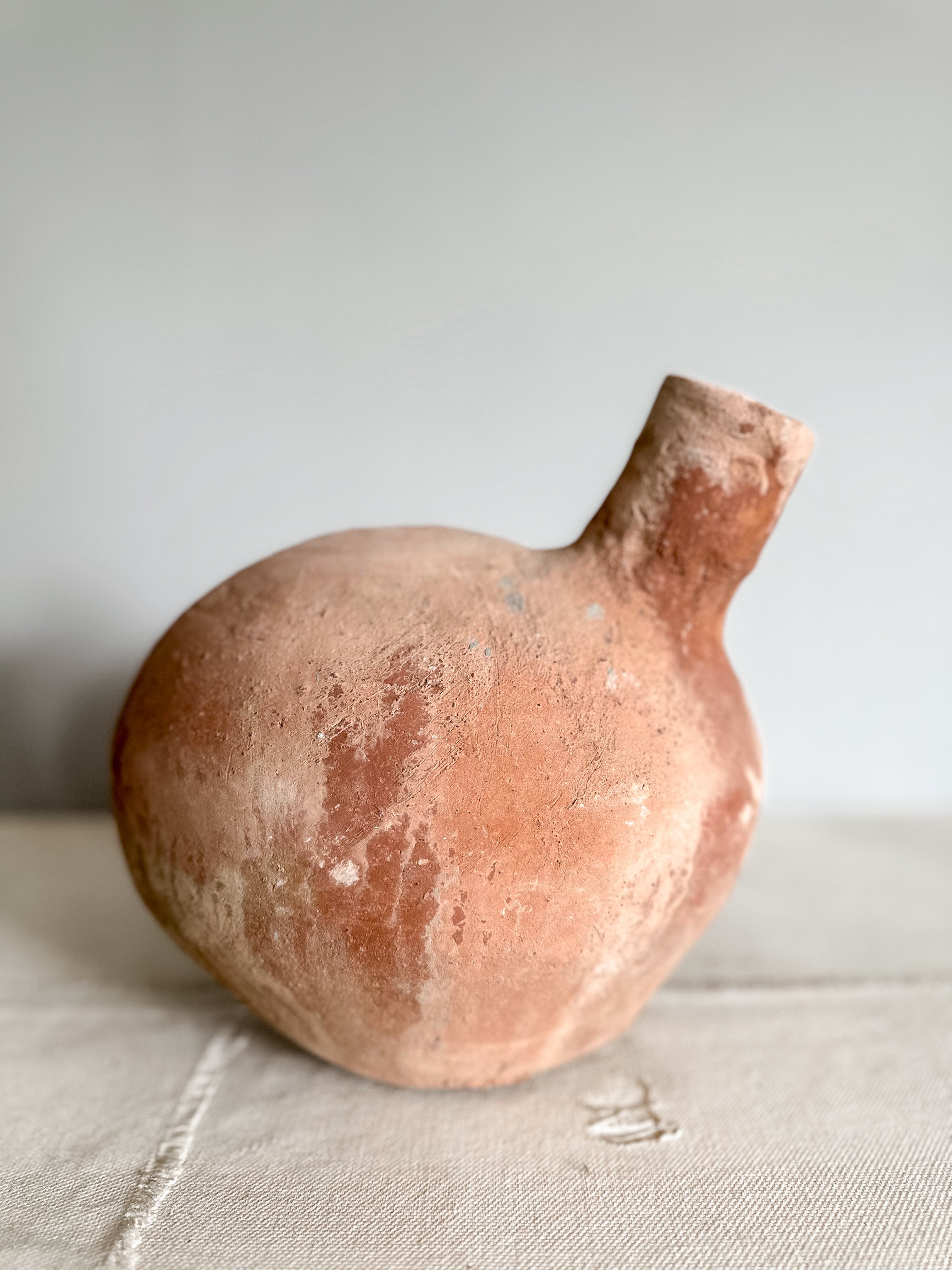 Wir lieben die Schlichtheit und den natürlichen Terrakottaton dieses ungewöhnlich geformten Topfs.