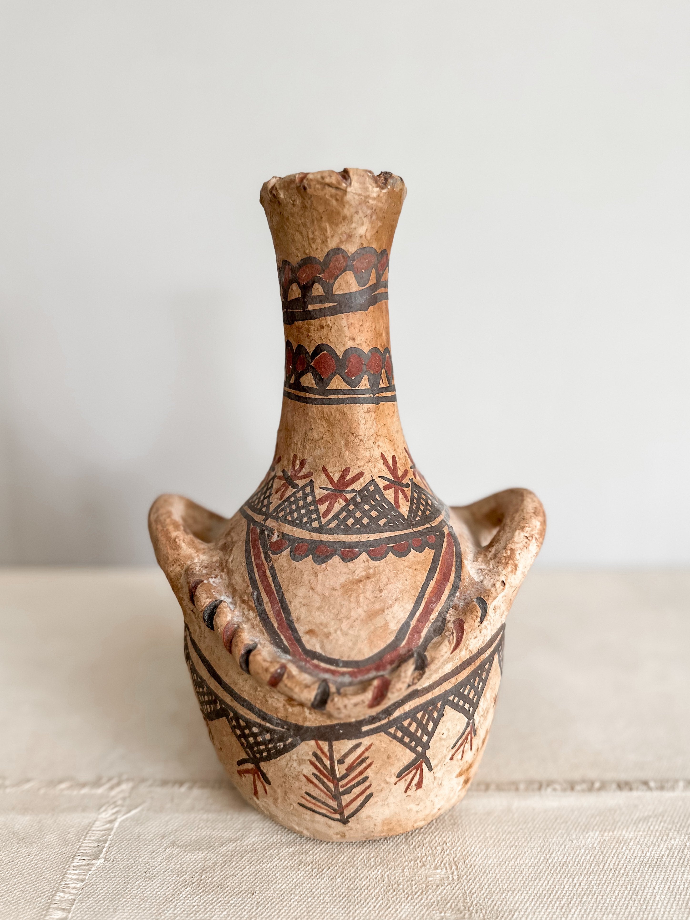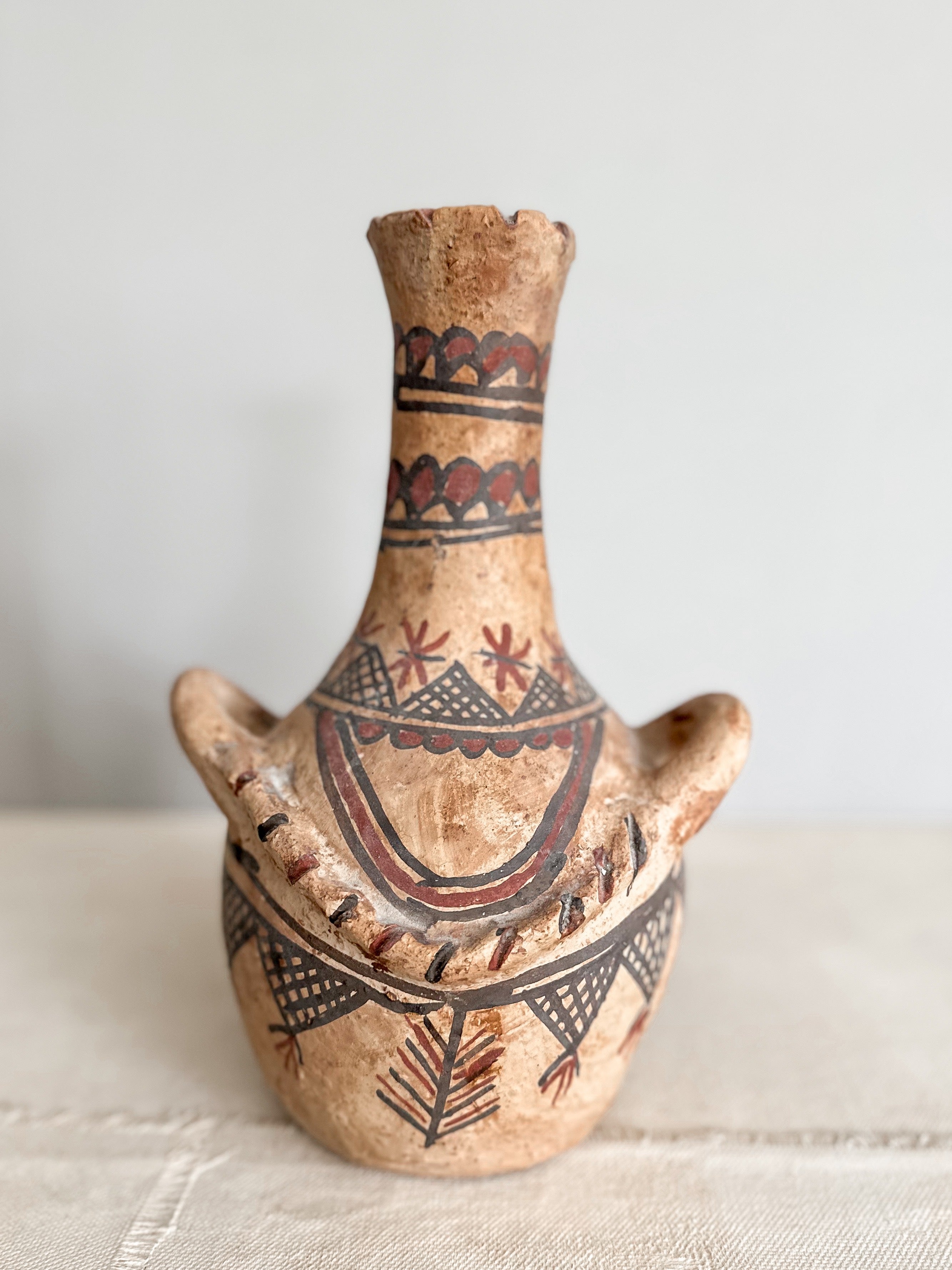 Diese Töpfe werden von den wundervollen Frauen im Rif Gebirge im Norden Marokkos handgefertigt. Die Pottery wird aus lokalem Ton hergestellt und auf offenem Feuer gebrannt. Die geometrischen Muster sind sorgfältig von Hand bemalt und stets einzigartig inspiriert von alter Felsenmalerei.
