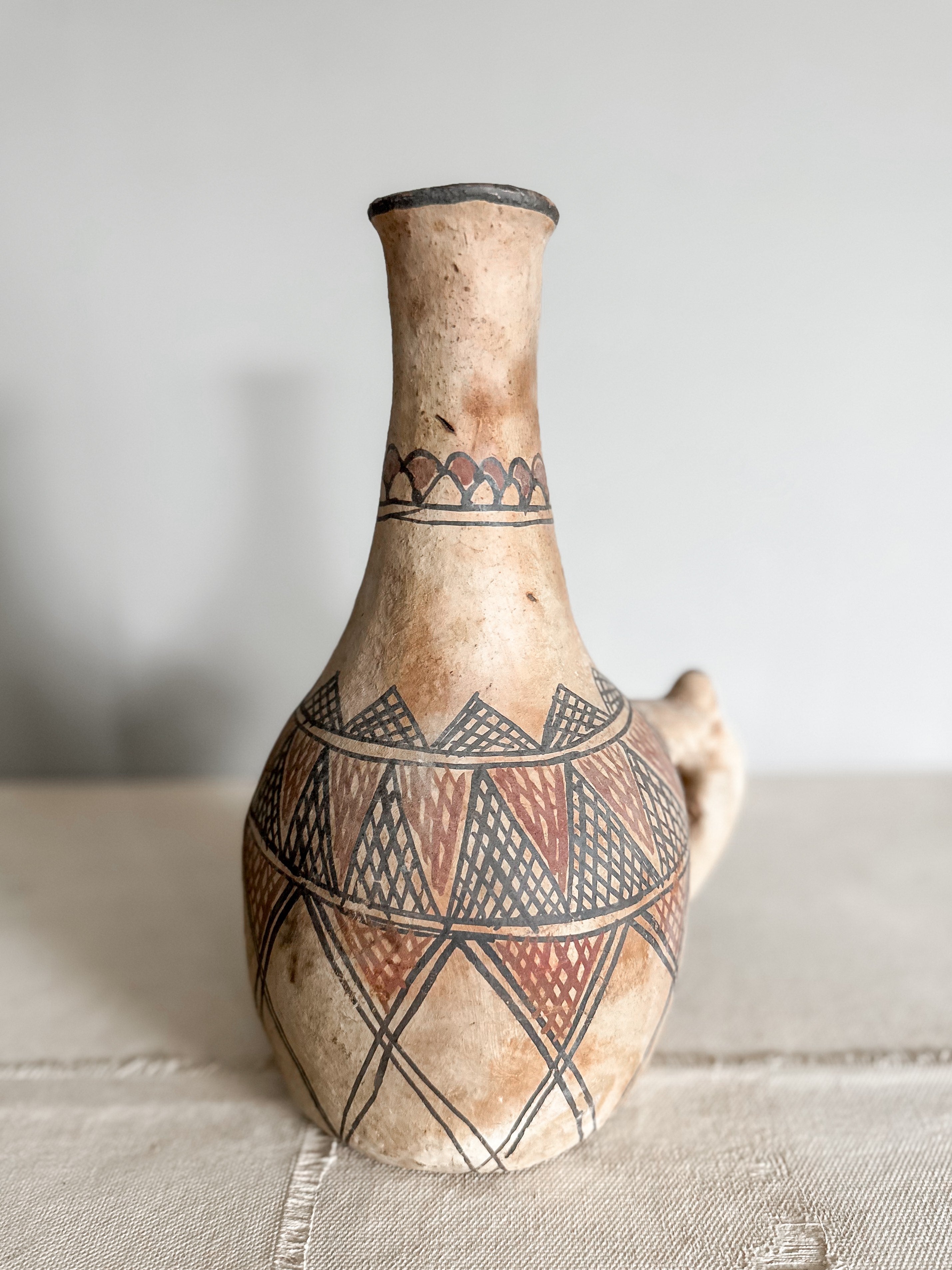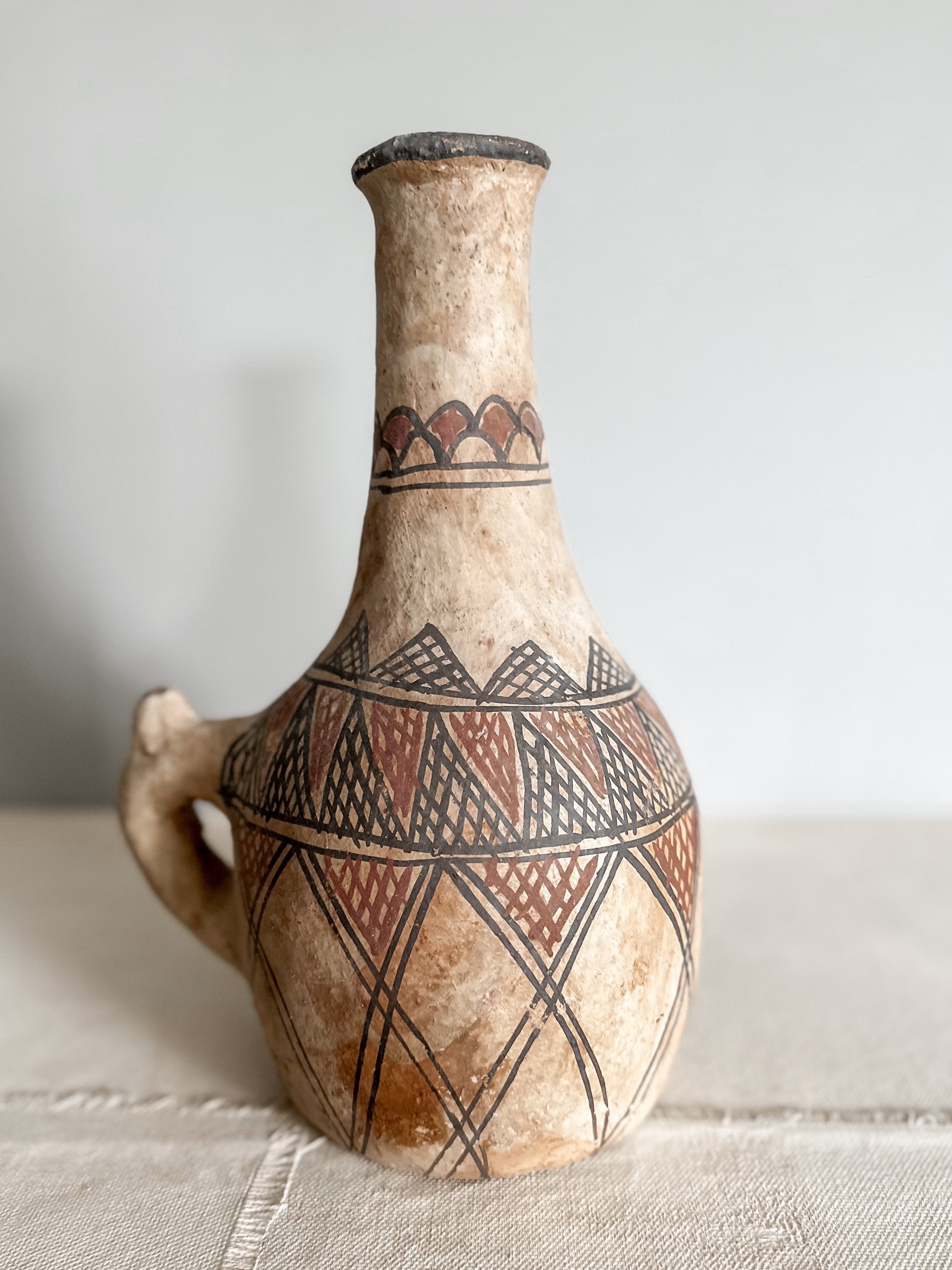 Diese Töpfe werden von den wundervollen Frauen im Rif Gebirge im Norden Marokkos handgefertigt. Die Pottery wird aus lokalem Ton hergestellt und auf offenem Feuer gebrannt. Die geometrischen Muster sind sorgfältig von Hand bemalt und stets einzigartig inspiriert von alter Felsenmalerei.