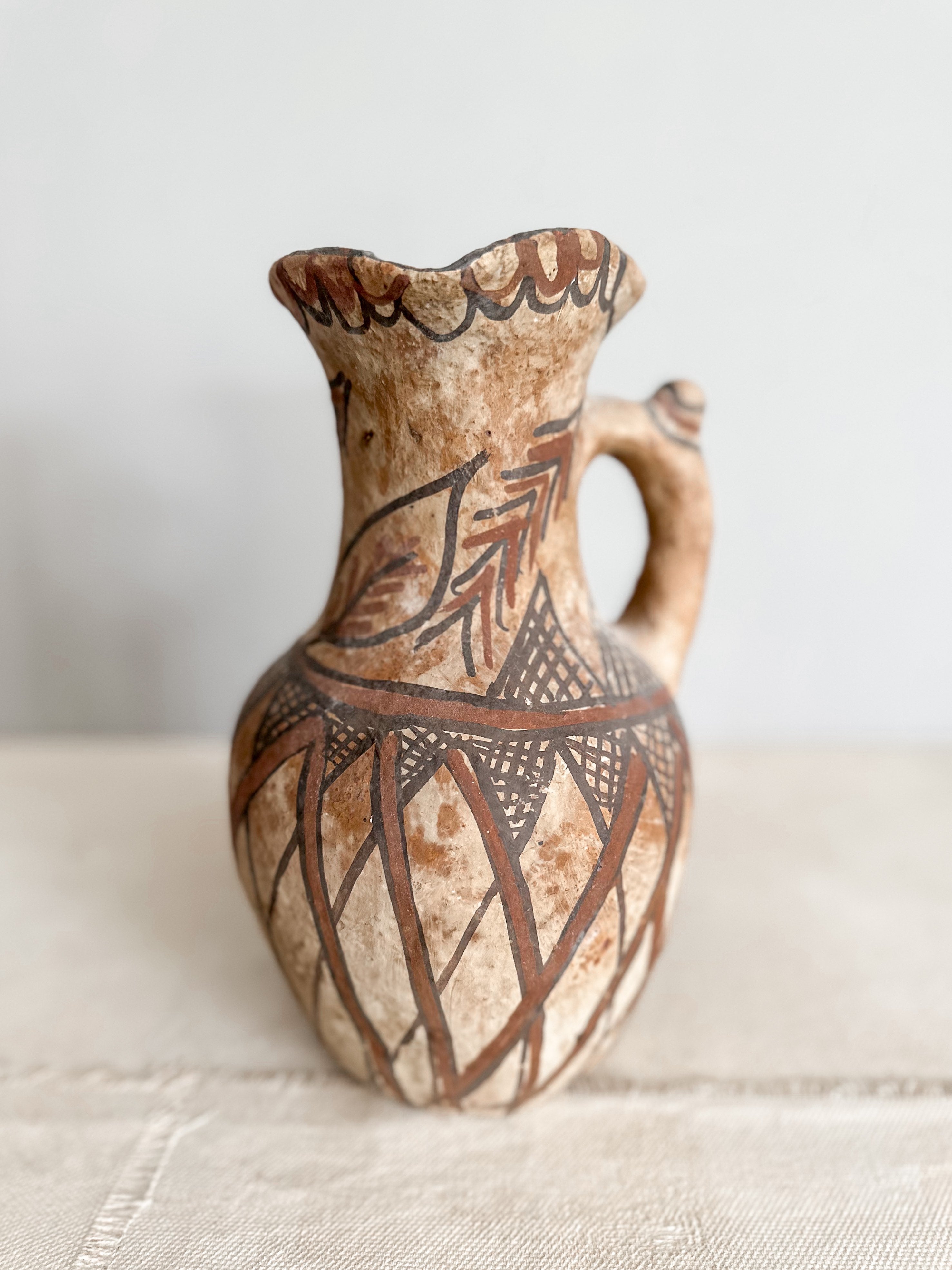 Diese Töpfe werden von den wundervollen Frauen im Rif Gebirge im Norden Marokkos handgefertigt. Die Pottery wird aus lokalem Ton hergestellt und auf offenem Feuer gebrannt. Die geometrischen Muster sind sorgfältig von Hand bemalt und stets einzigartig inspiriert von alter Felsenmalerei.