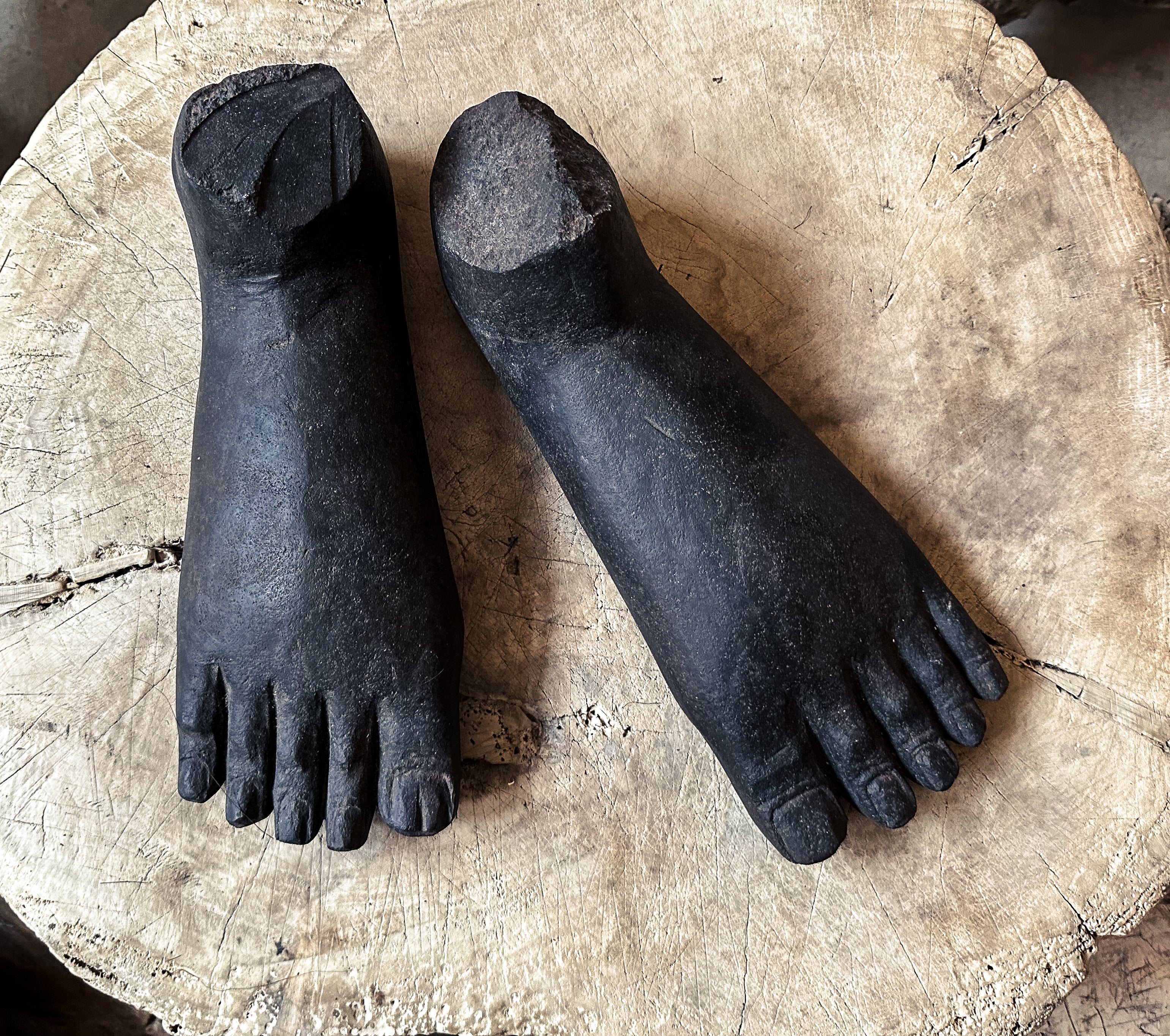 Ausgefallenes Deko-Objekt: Massives Paar Buddha Füße aus Stein.