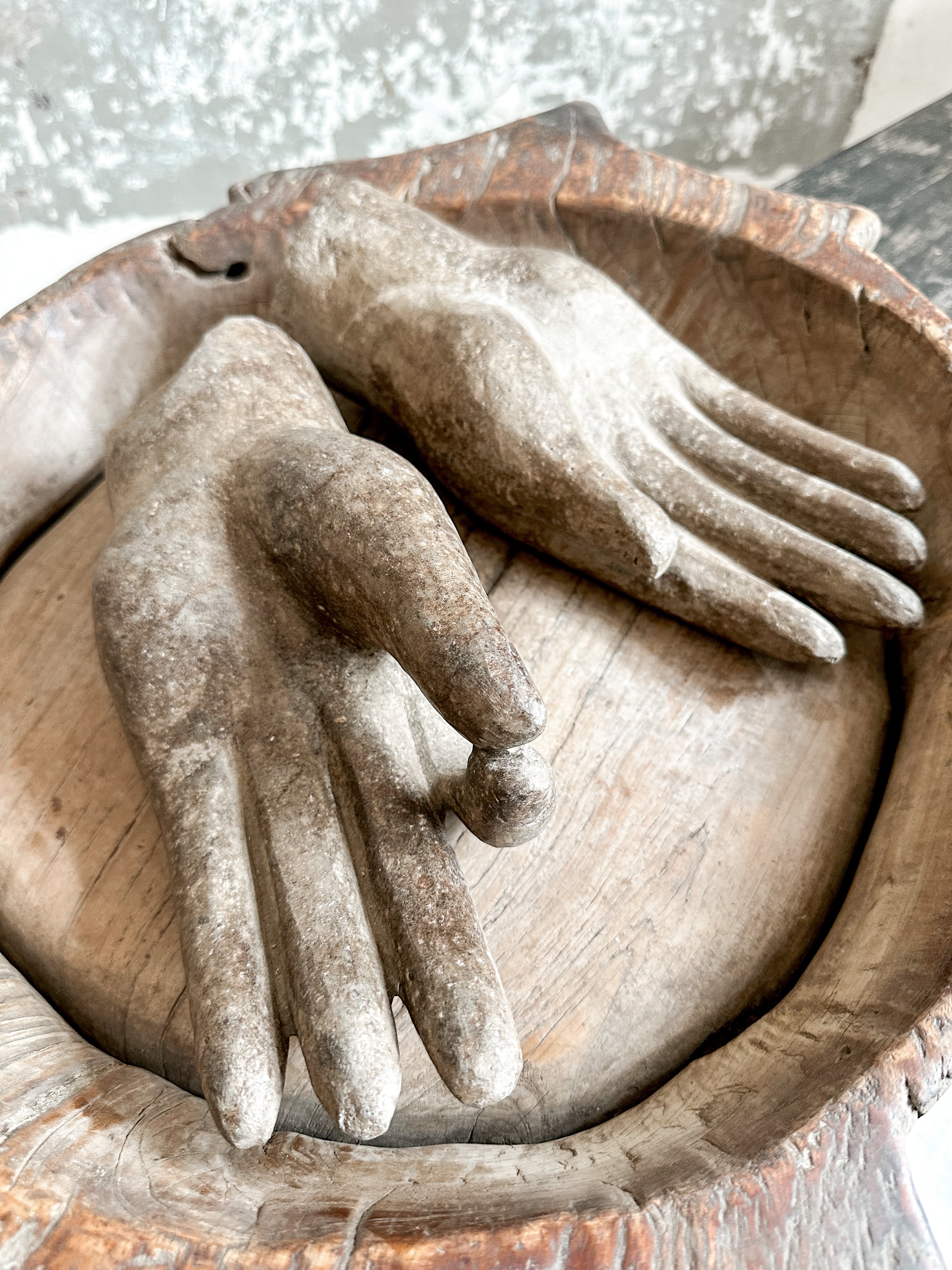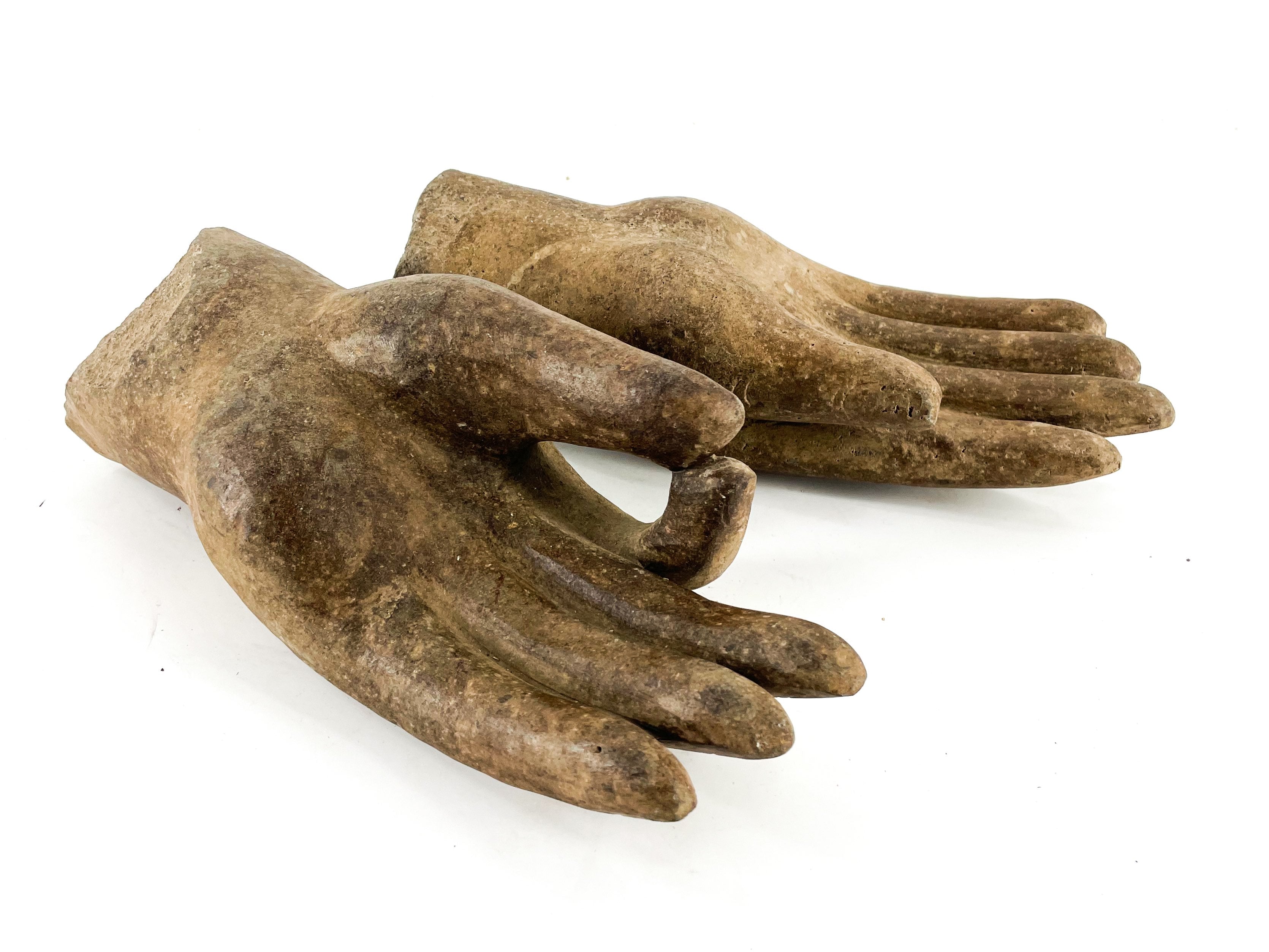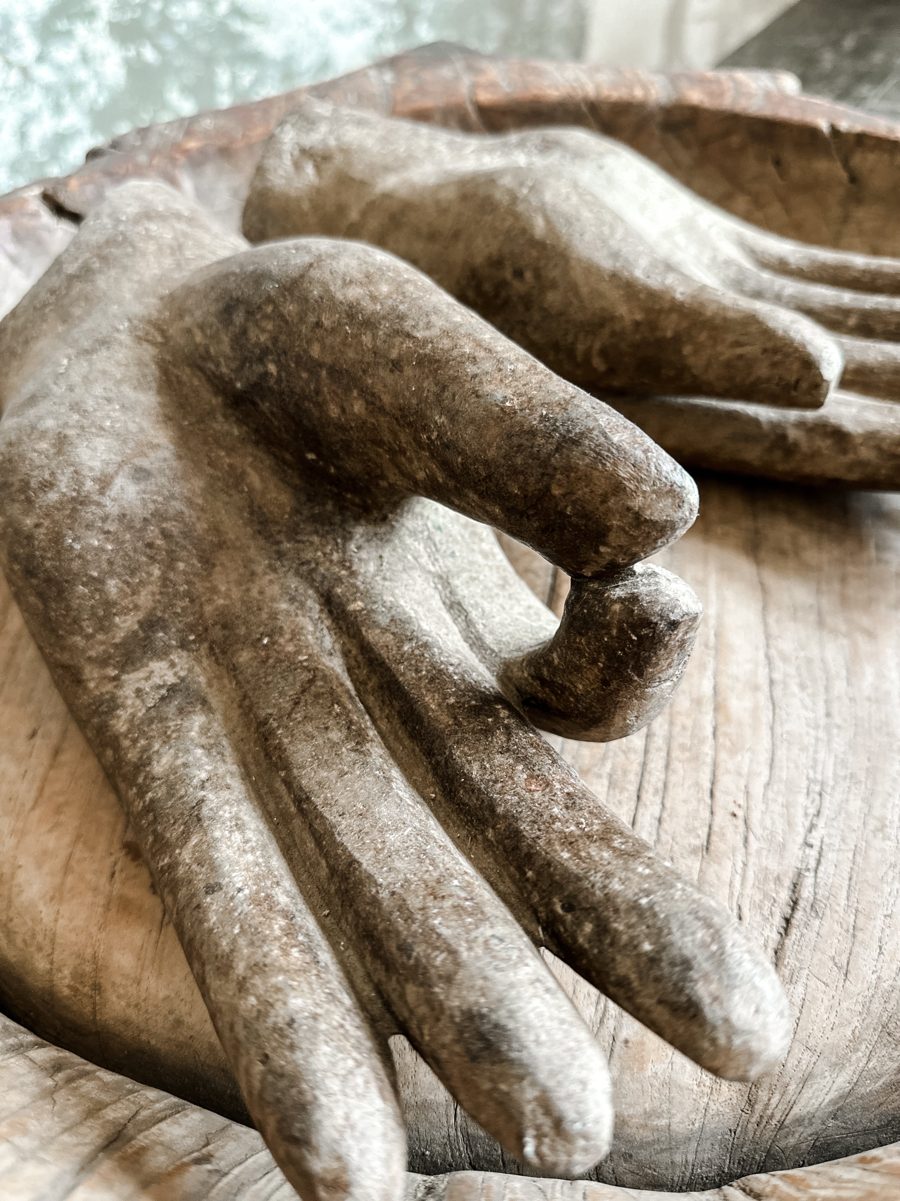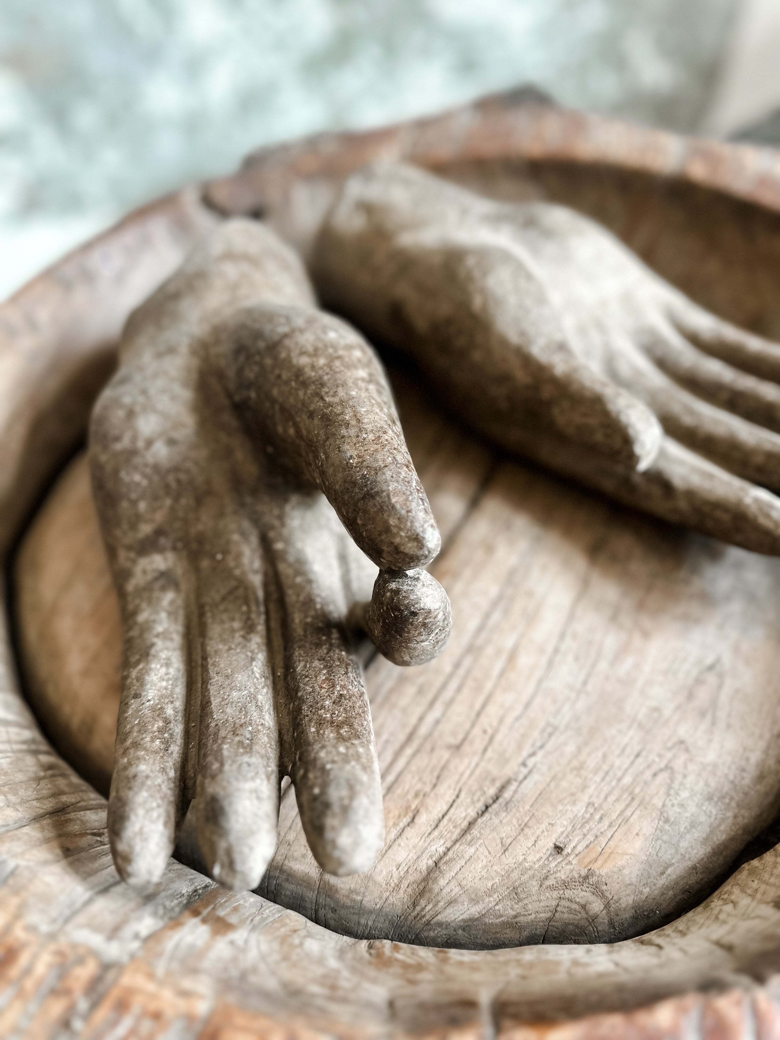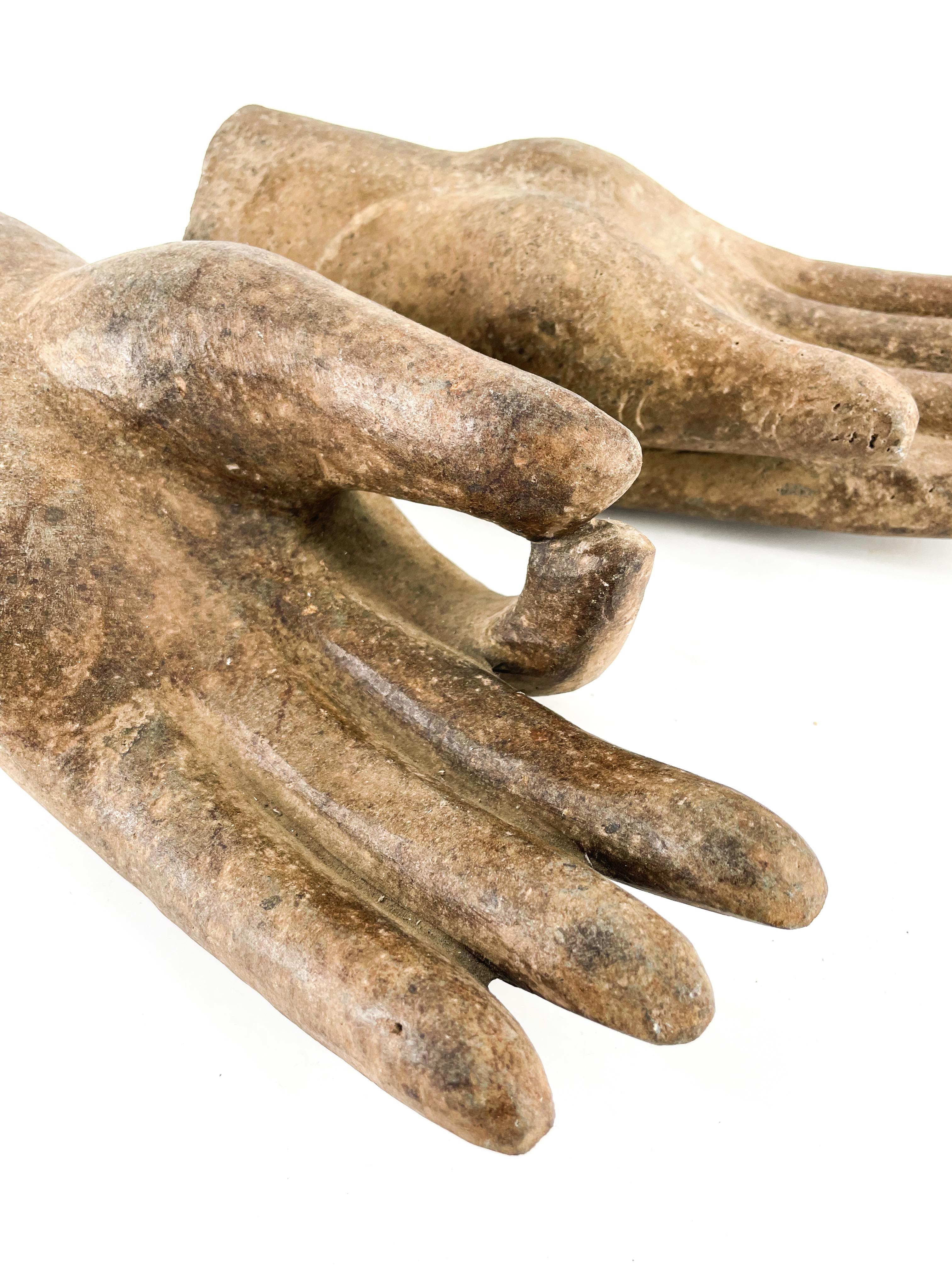 Ausgefallenes Deko-Objekt: Massives Paar Buddha Hände aus Stein.