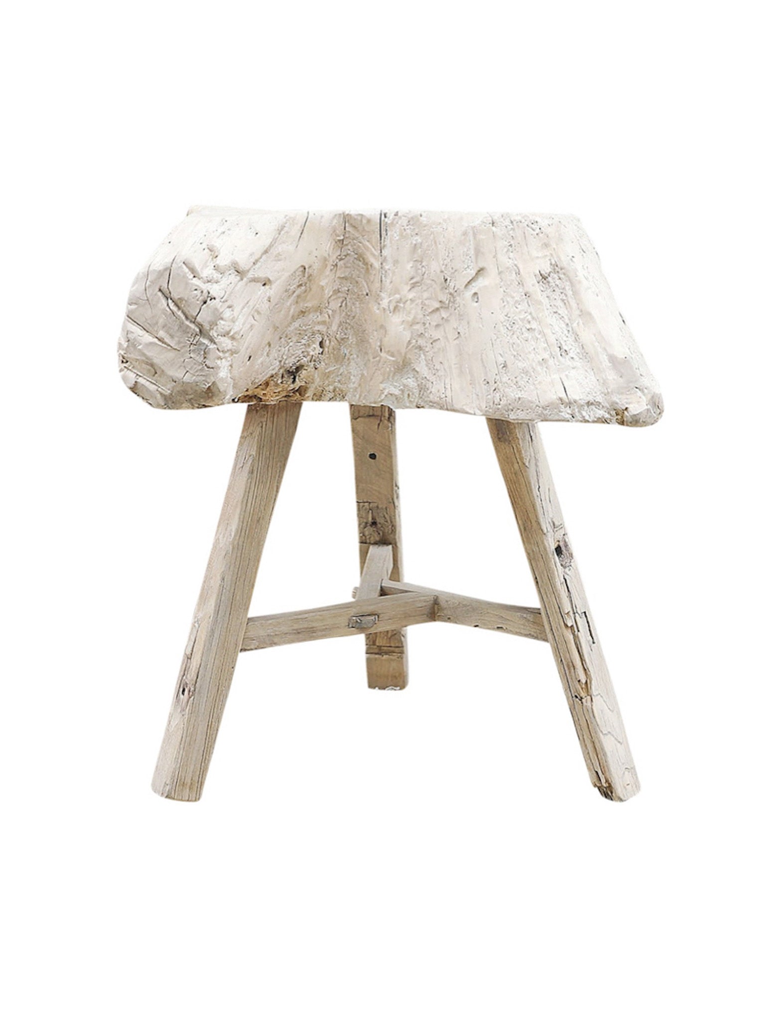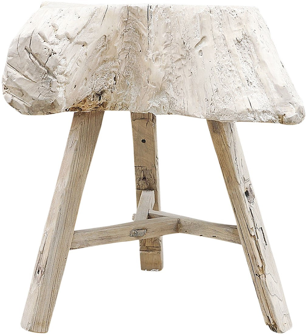 Seltener white washed Butcher's Block Hocker aus Pappelholz. 80 Jahre alt! Aus Shandong, China.