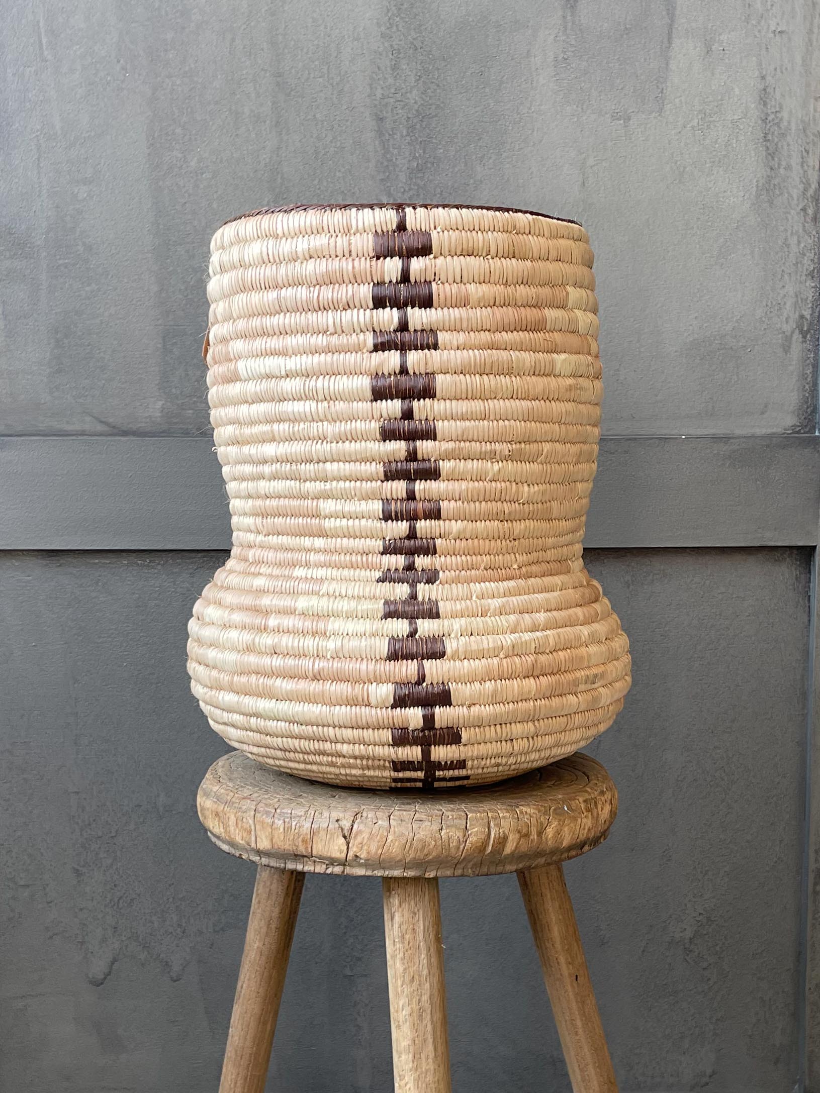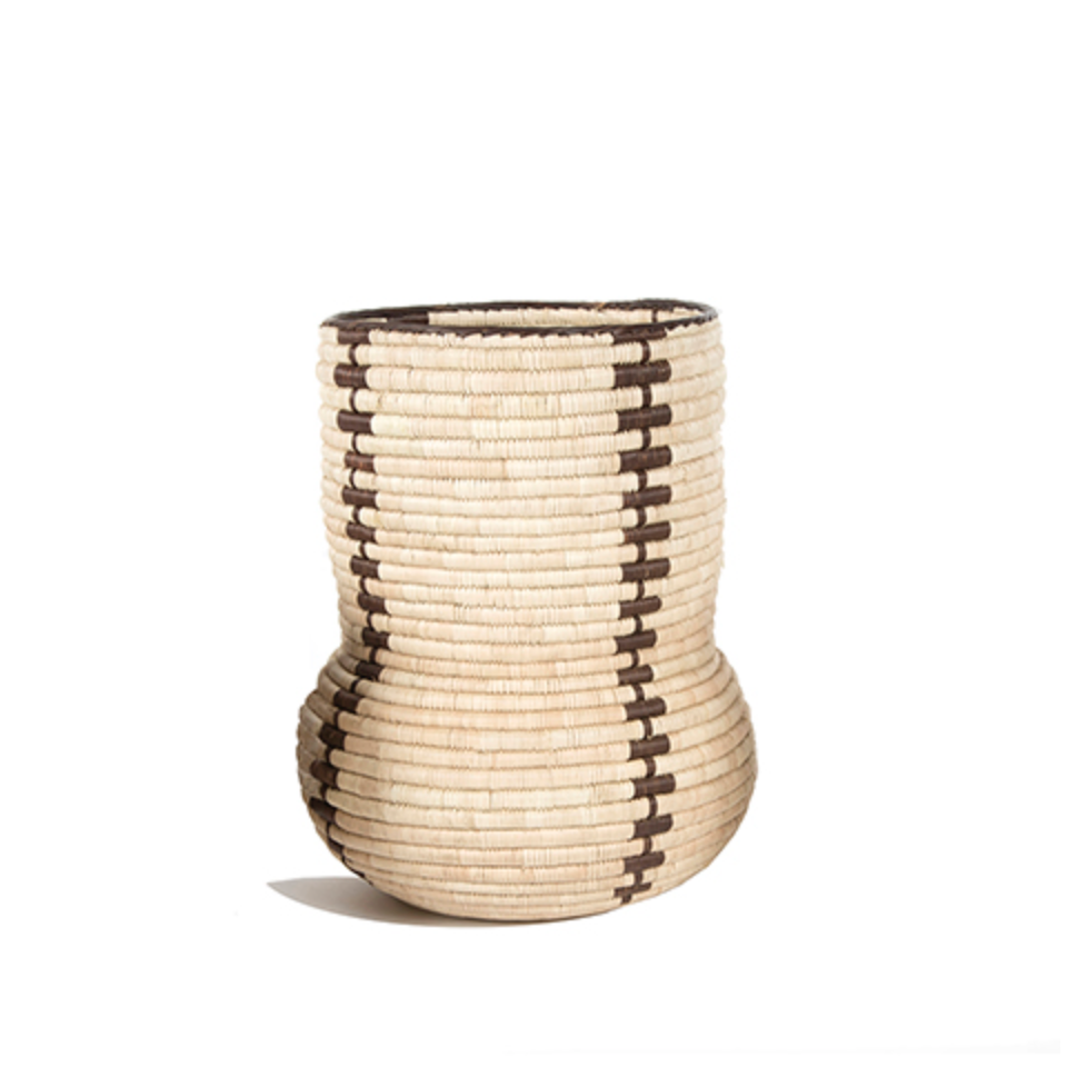 Aus jungen Palmenblättern wird dieser Korb in Zimbabwe von Hand gewebt. Seinen Namen verdankt er seiner Ähnlichkeit mit einem Butternut Kürbis.