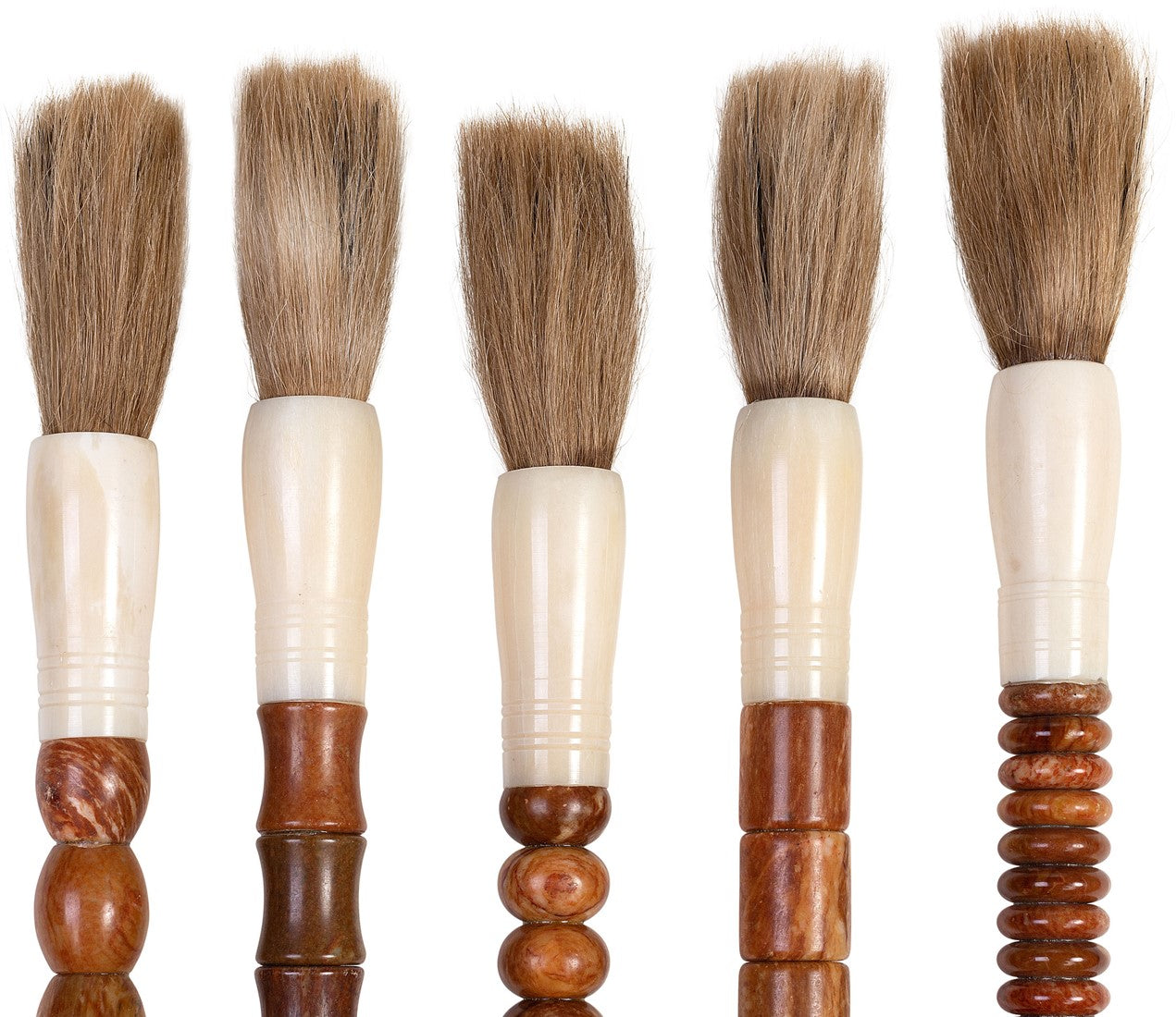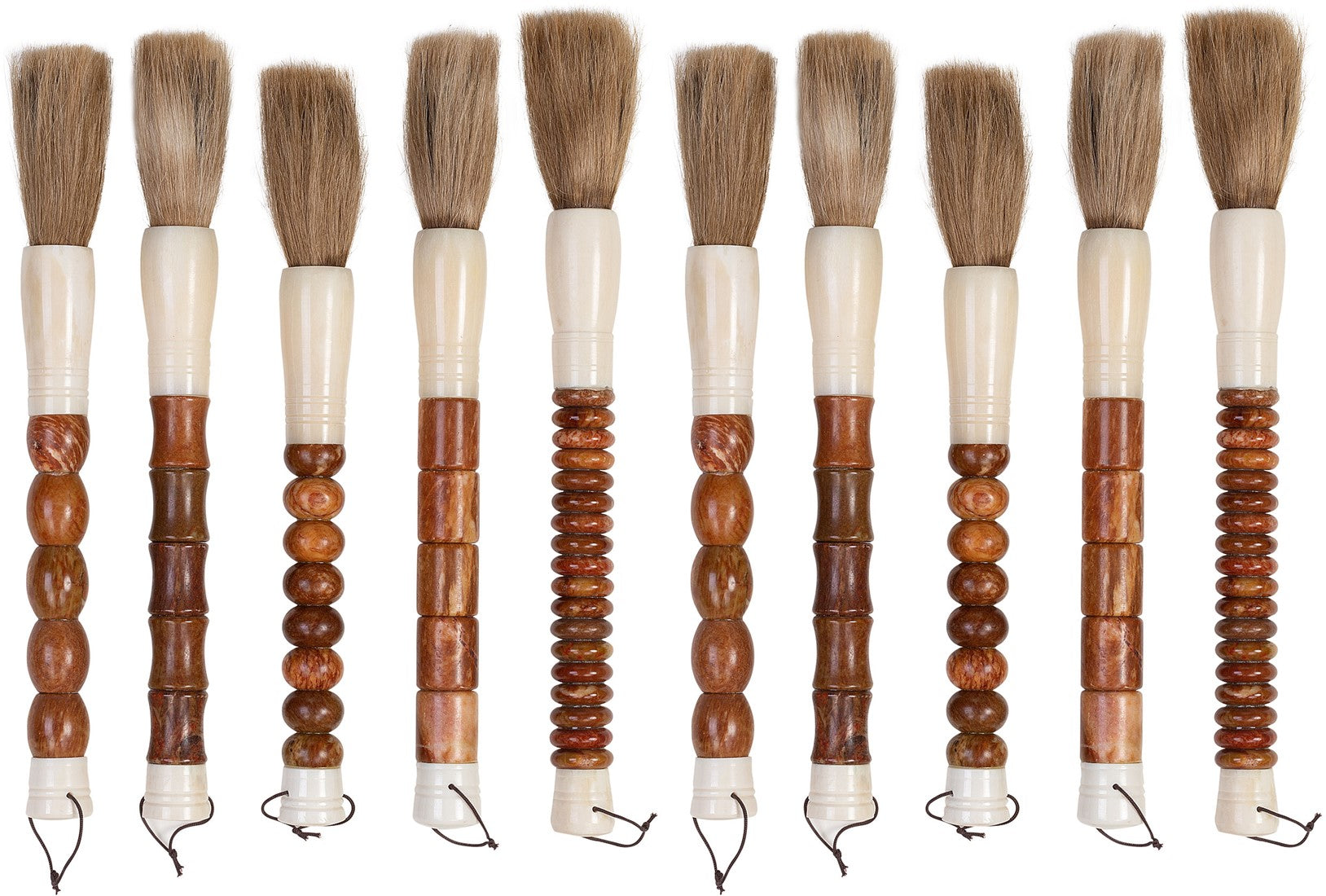 Wunderschöner Kalligraphie Pinsel aus China, einzigartiges Deko-Objekt in einem warmen, braunen Naturton. Materialien: Knochen, Haar, Stein.