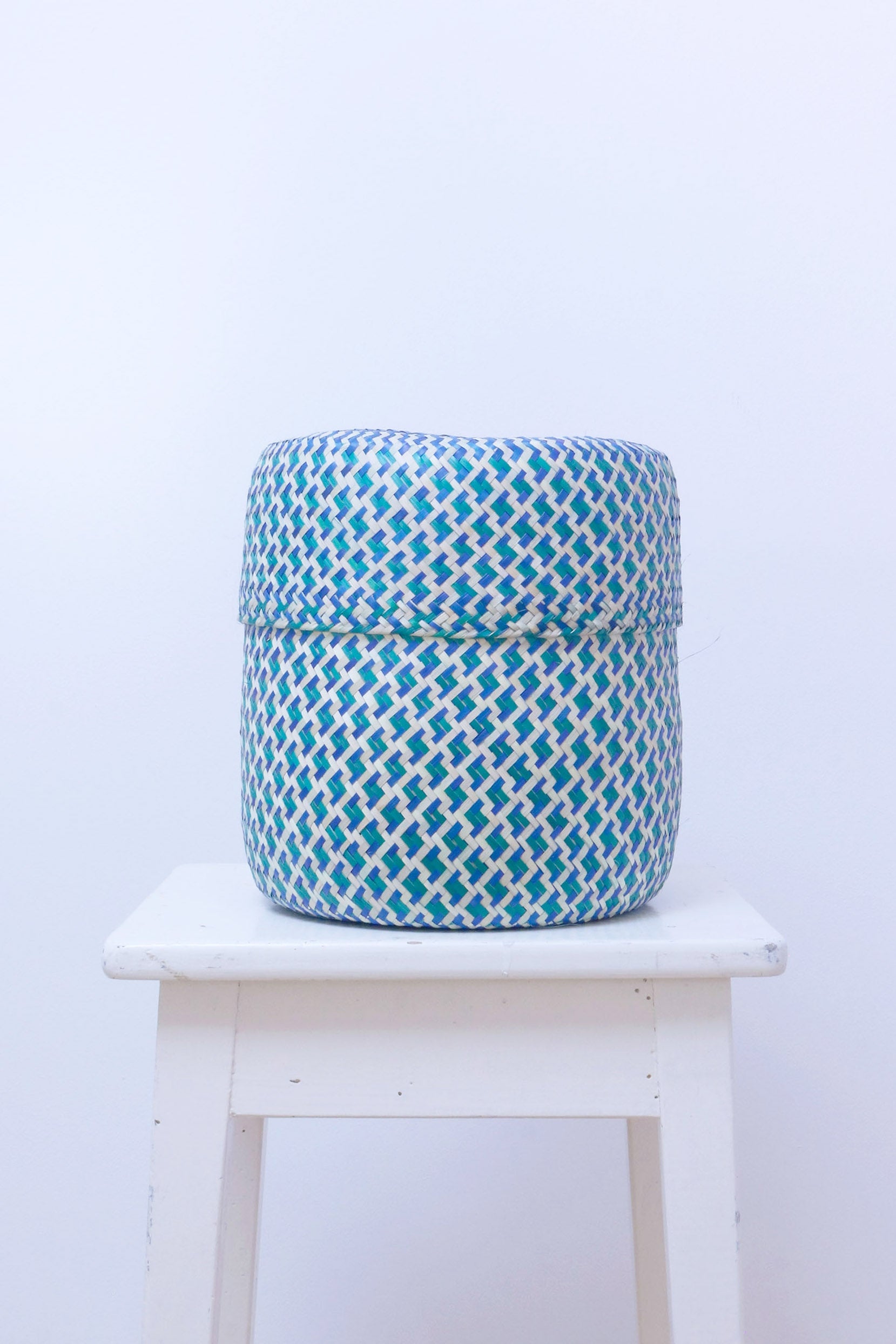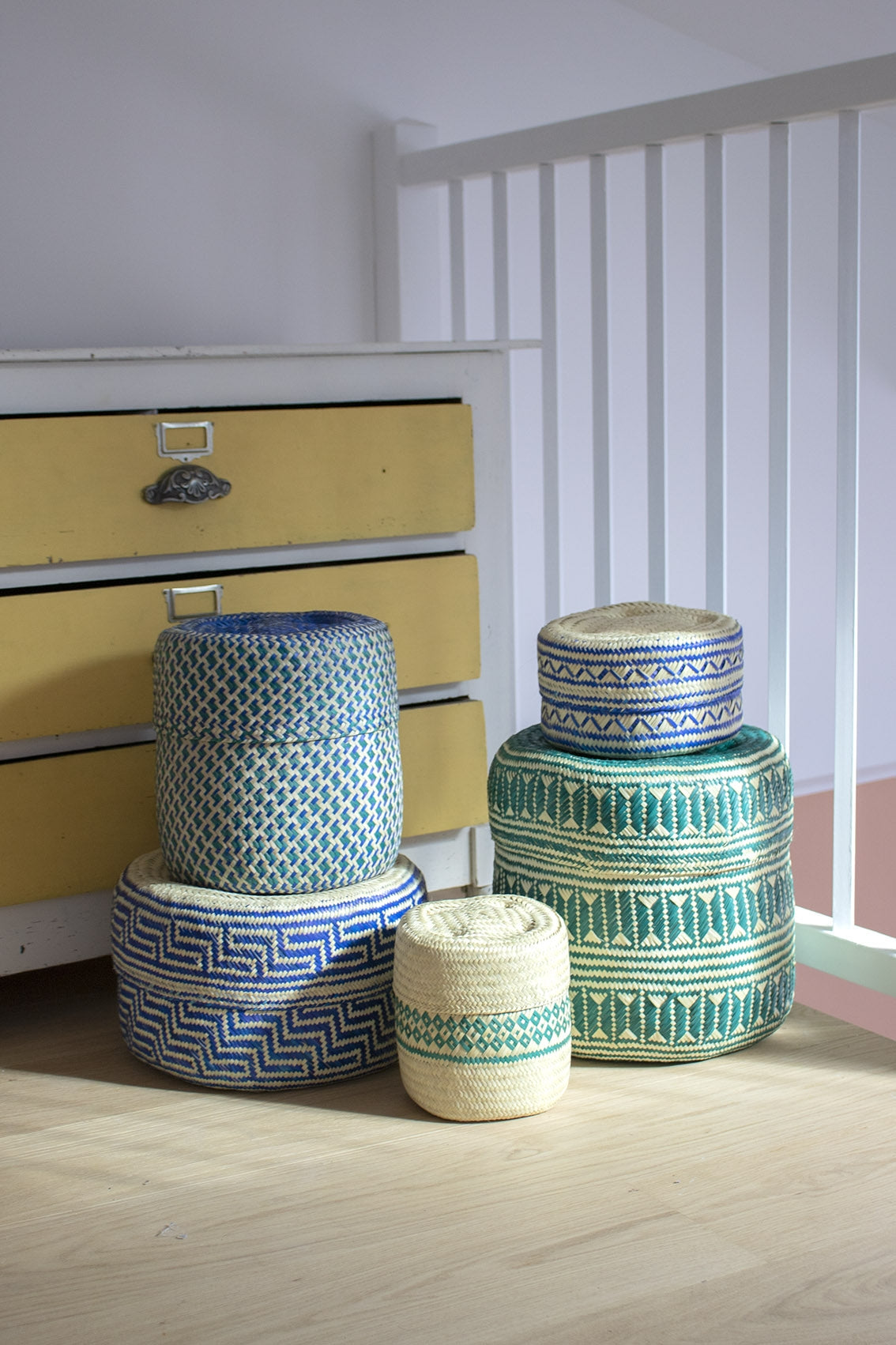 Handgeflochtene Palmenkörbe, 5er Set blau-grün
