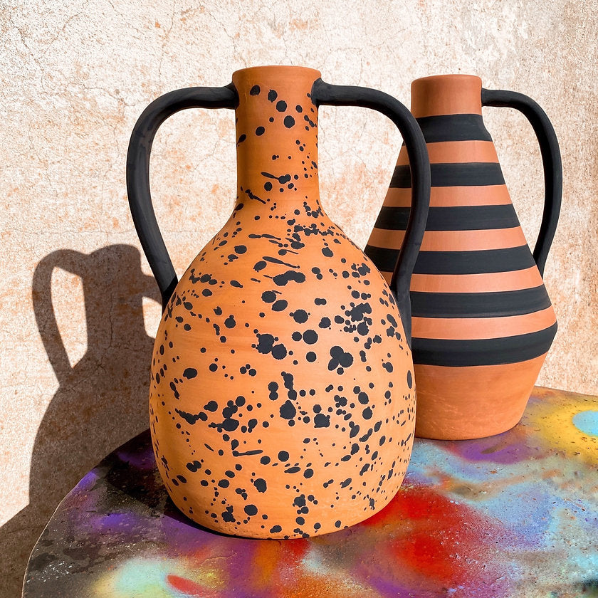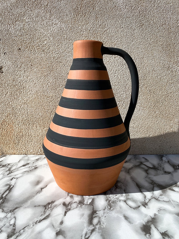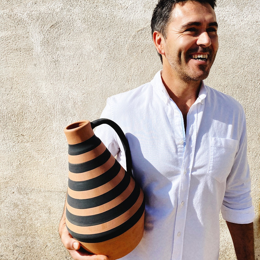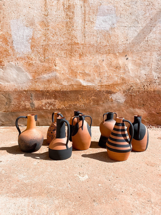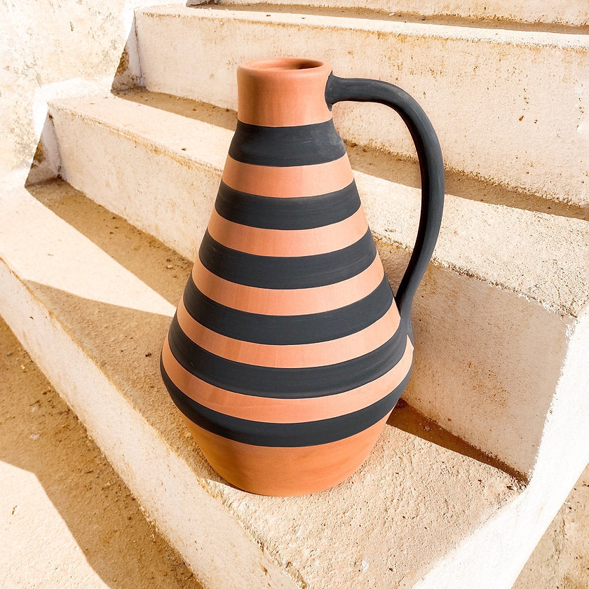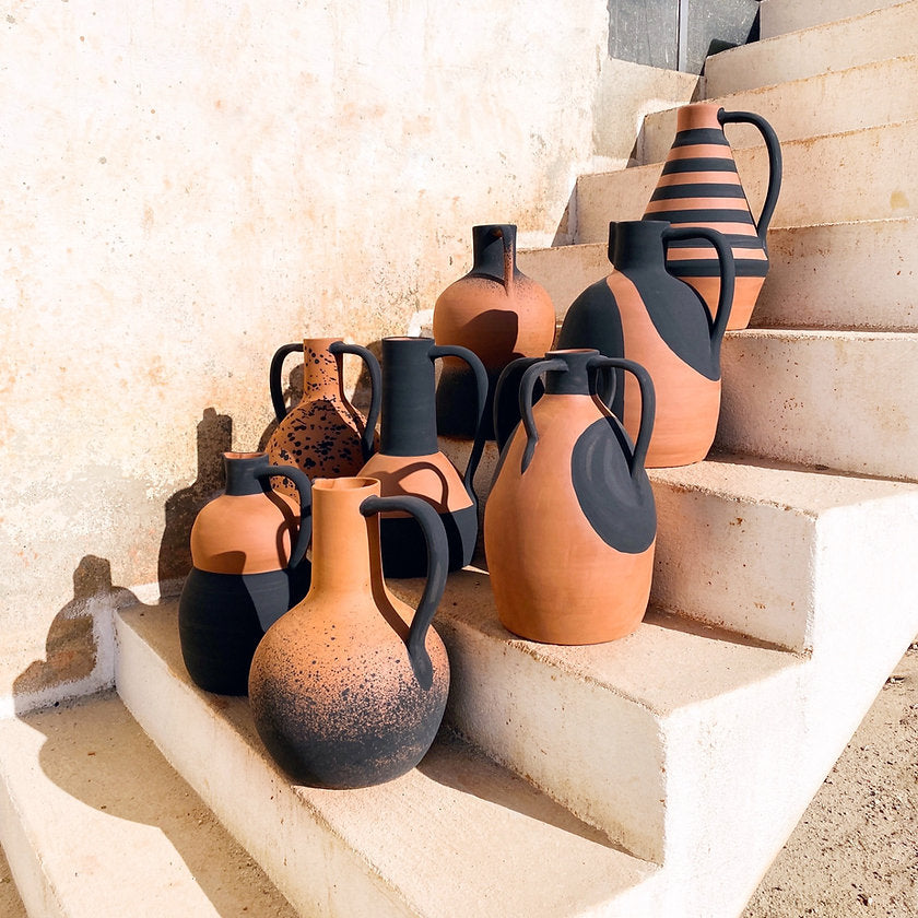 Jeder Krug wird nach Fertigung in der Sonne getrocknet, gebrannt, schwarz lackiert und matt gebrannt. Wir lieben den Look! Danke an den talentierten Töpfer Rui!