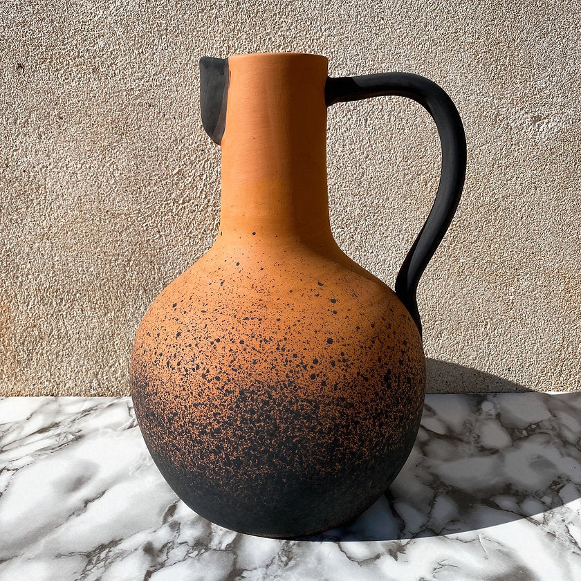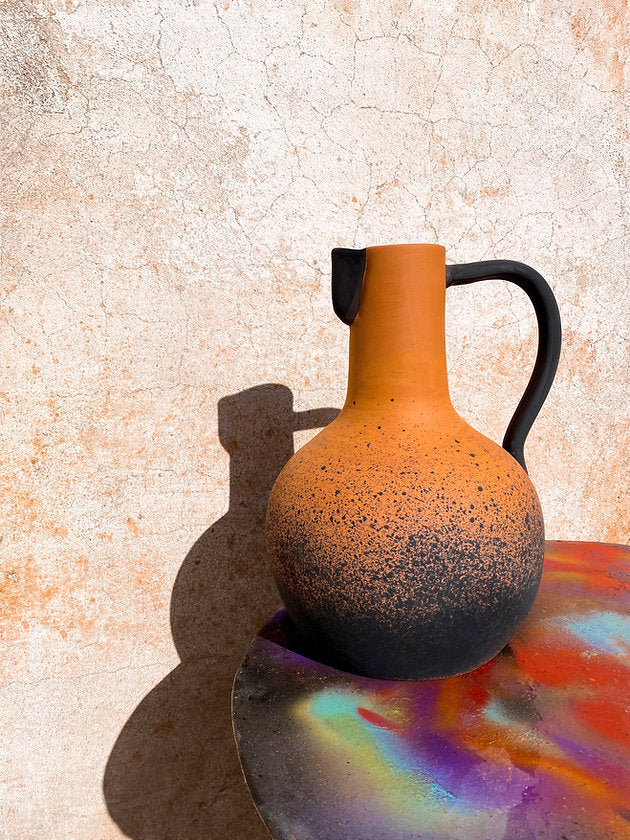 Jeder Krug wird nach Fertigung in der Sonne getrocknet, gebrannt, schwarz lackiert und matt gebrannt. Wir lieben den Look! Danke an den talentierten Töpfer Rui!