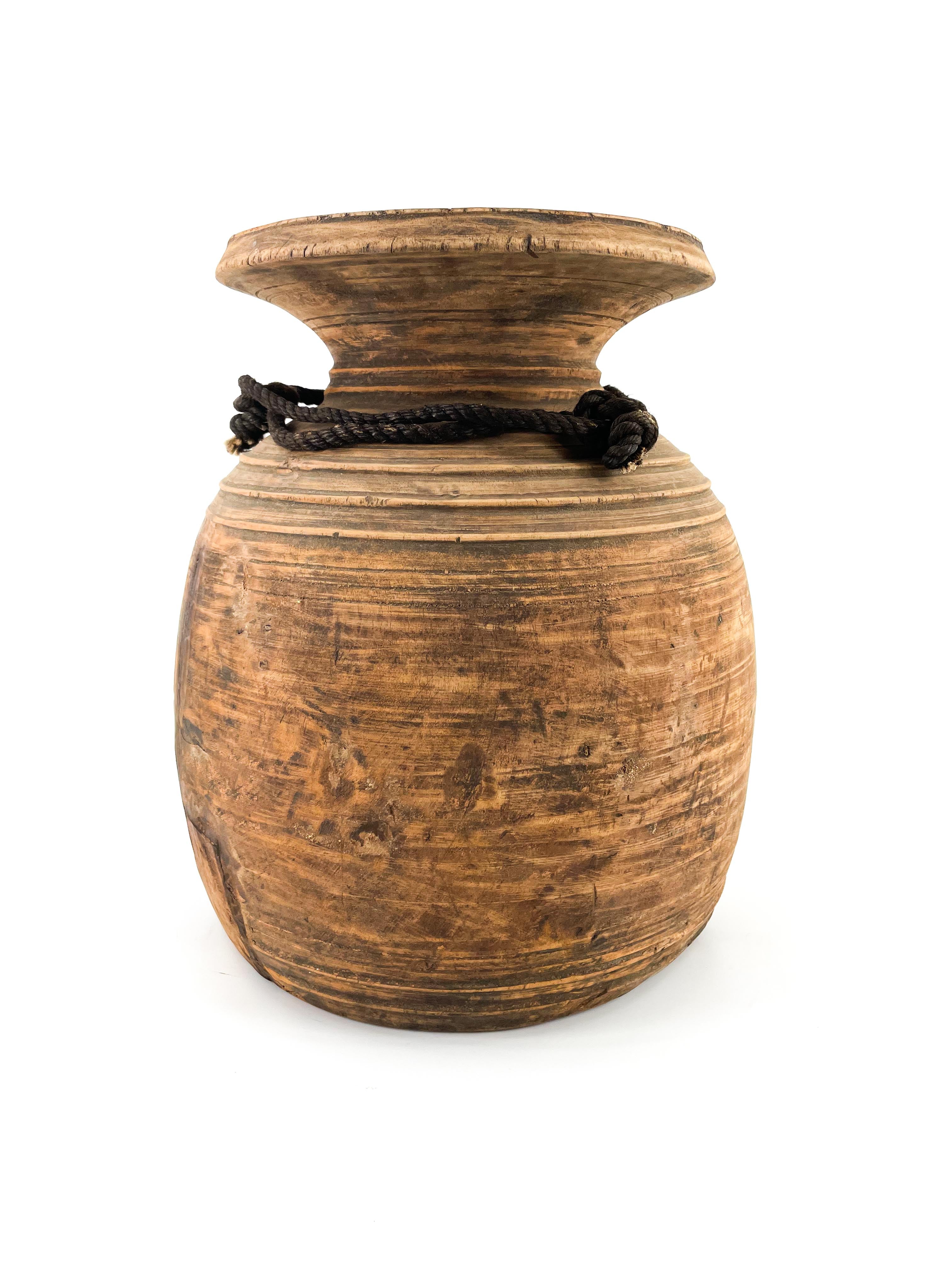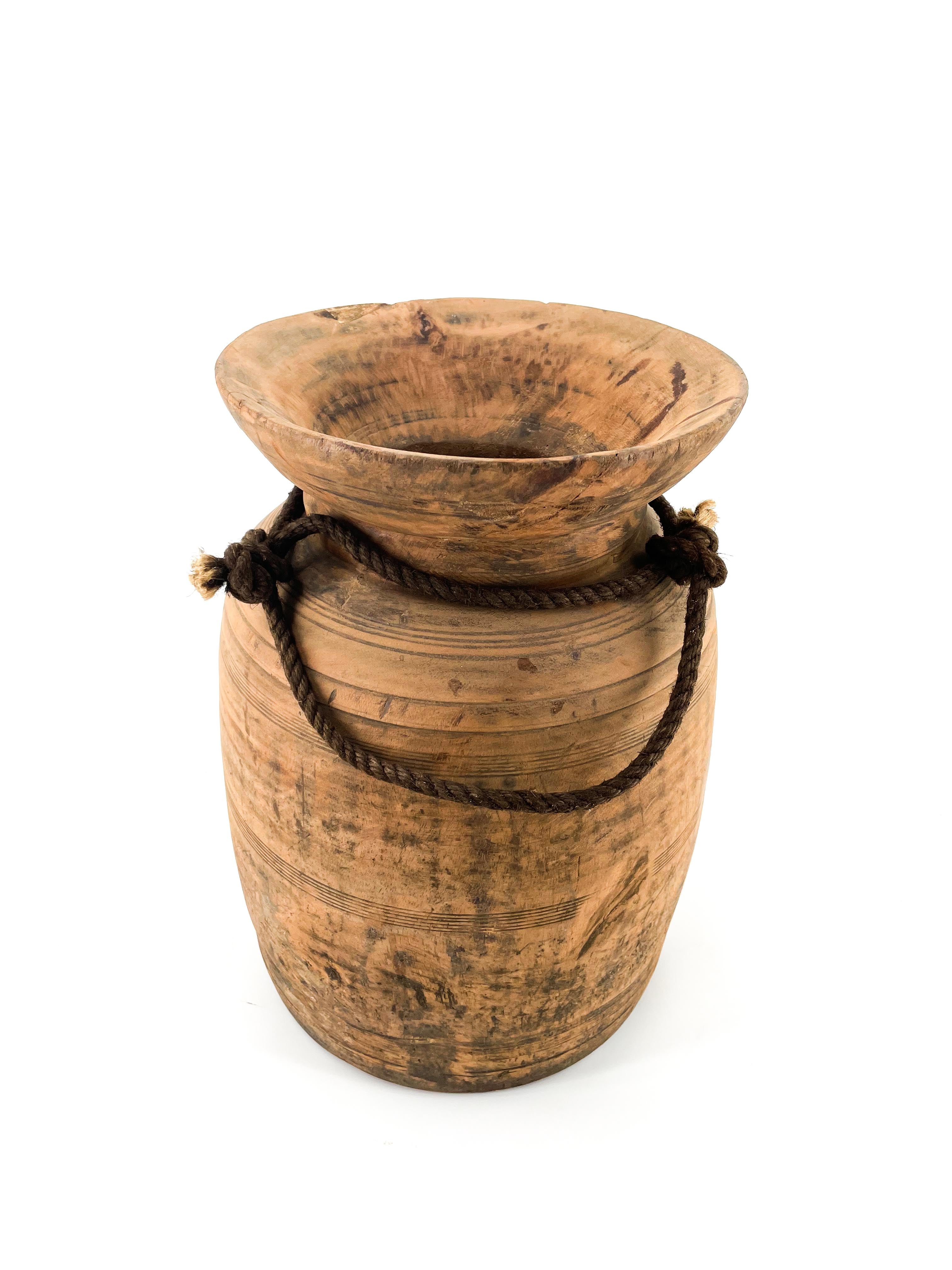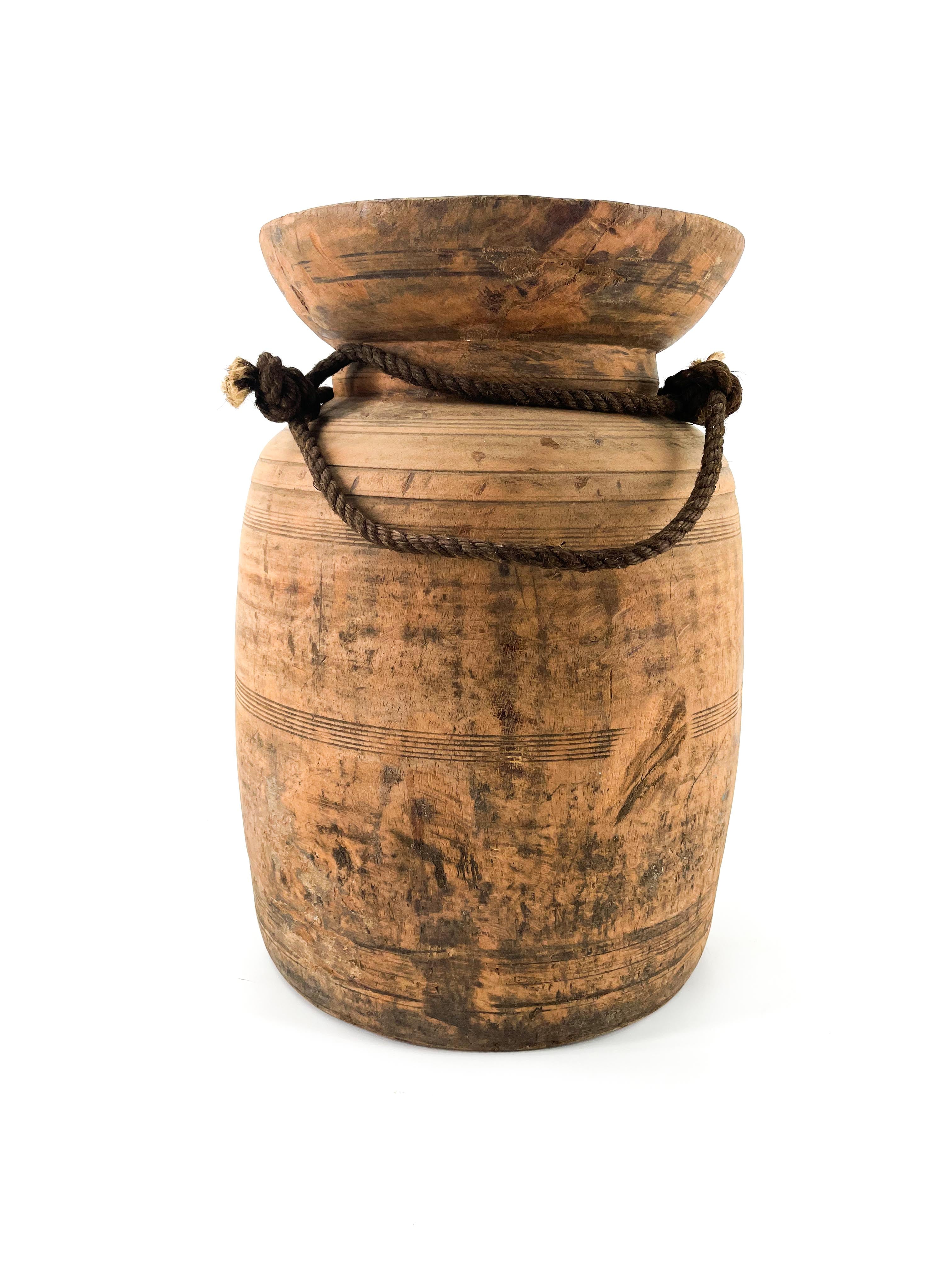 Diese alten Holzkrüge wurden früher oft verwendet, um Lebensmittel zu lagern oder sogar um Butter darin zu schlagen. Ob allein für sich selbst oder zum Beispiel mit Trockenblumen dekoriert, immer ein wunderschönes Interior Accessoire! Die Form variiert je nach Krug.
