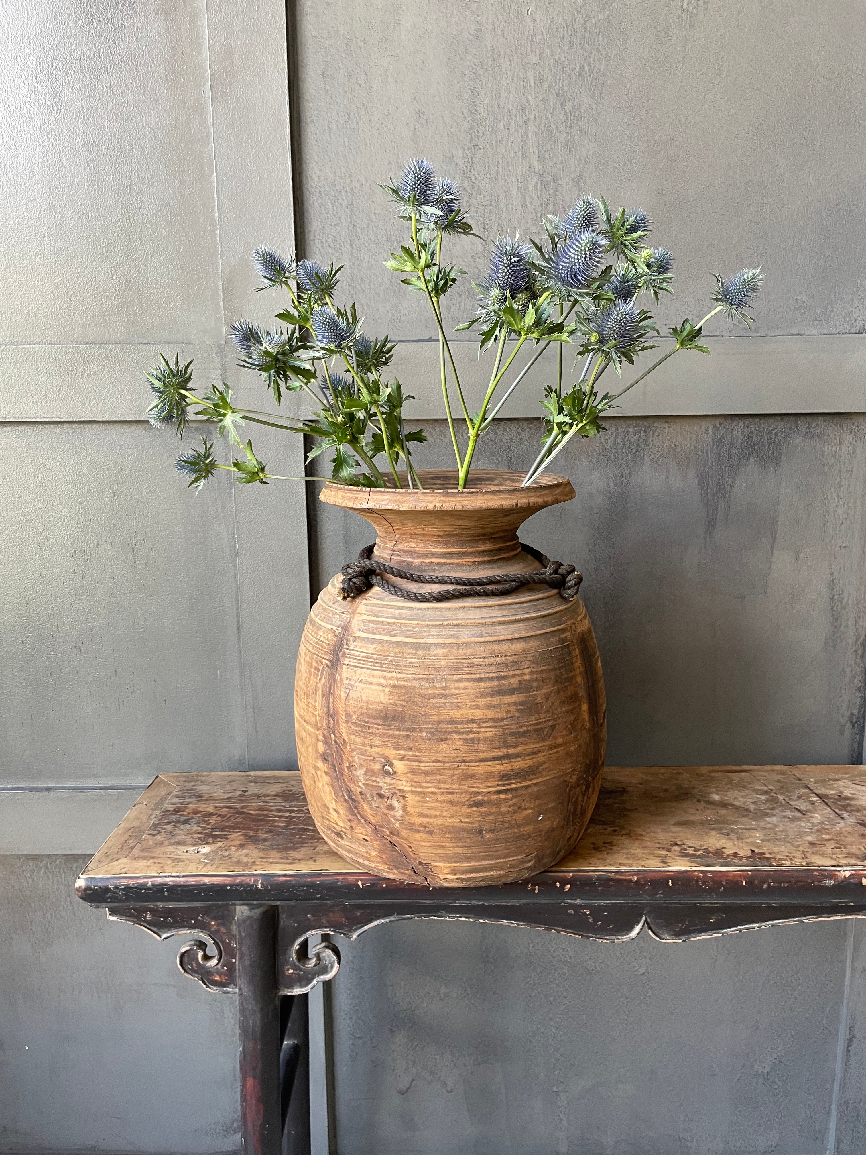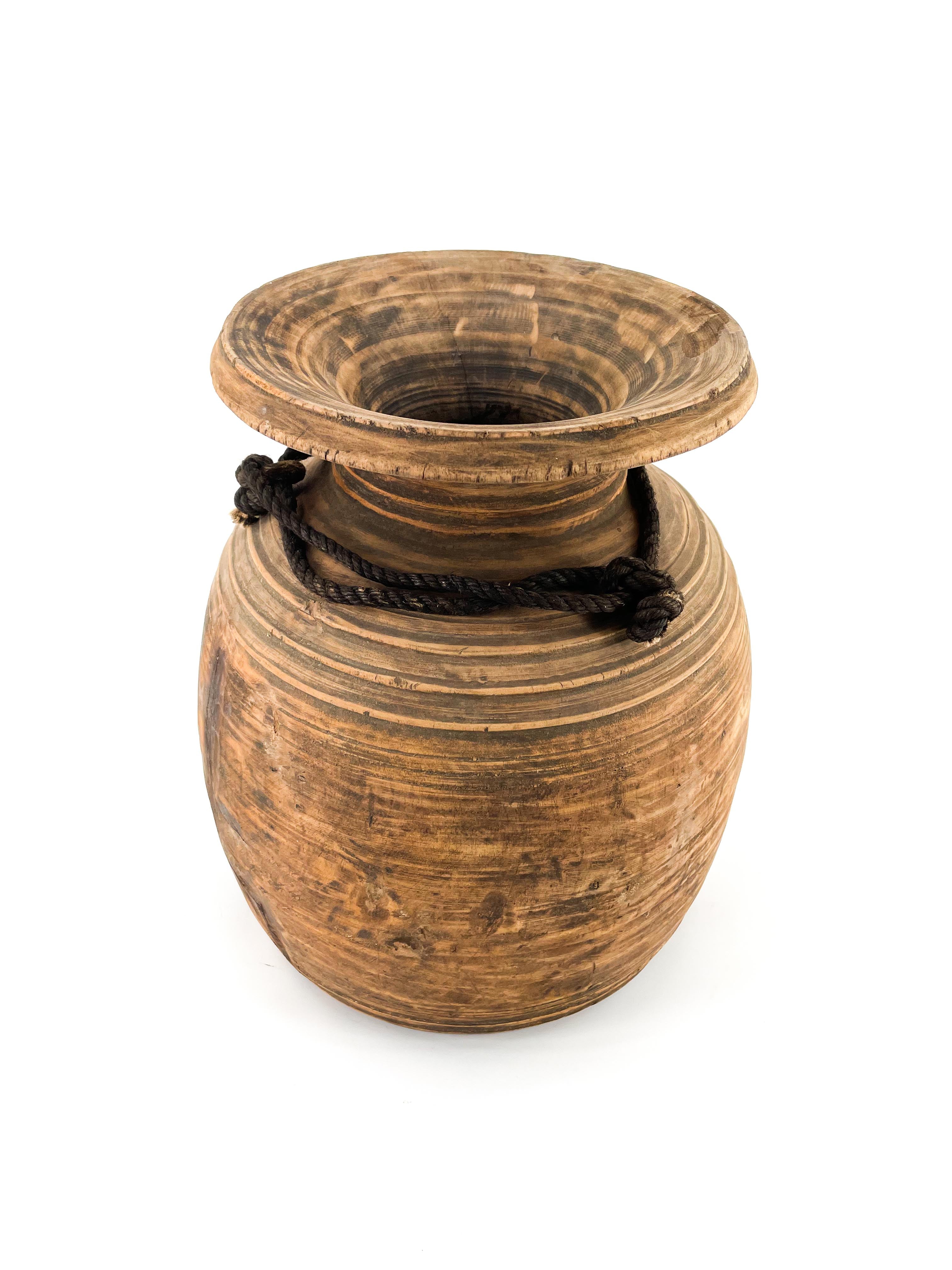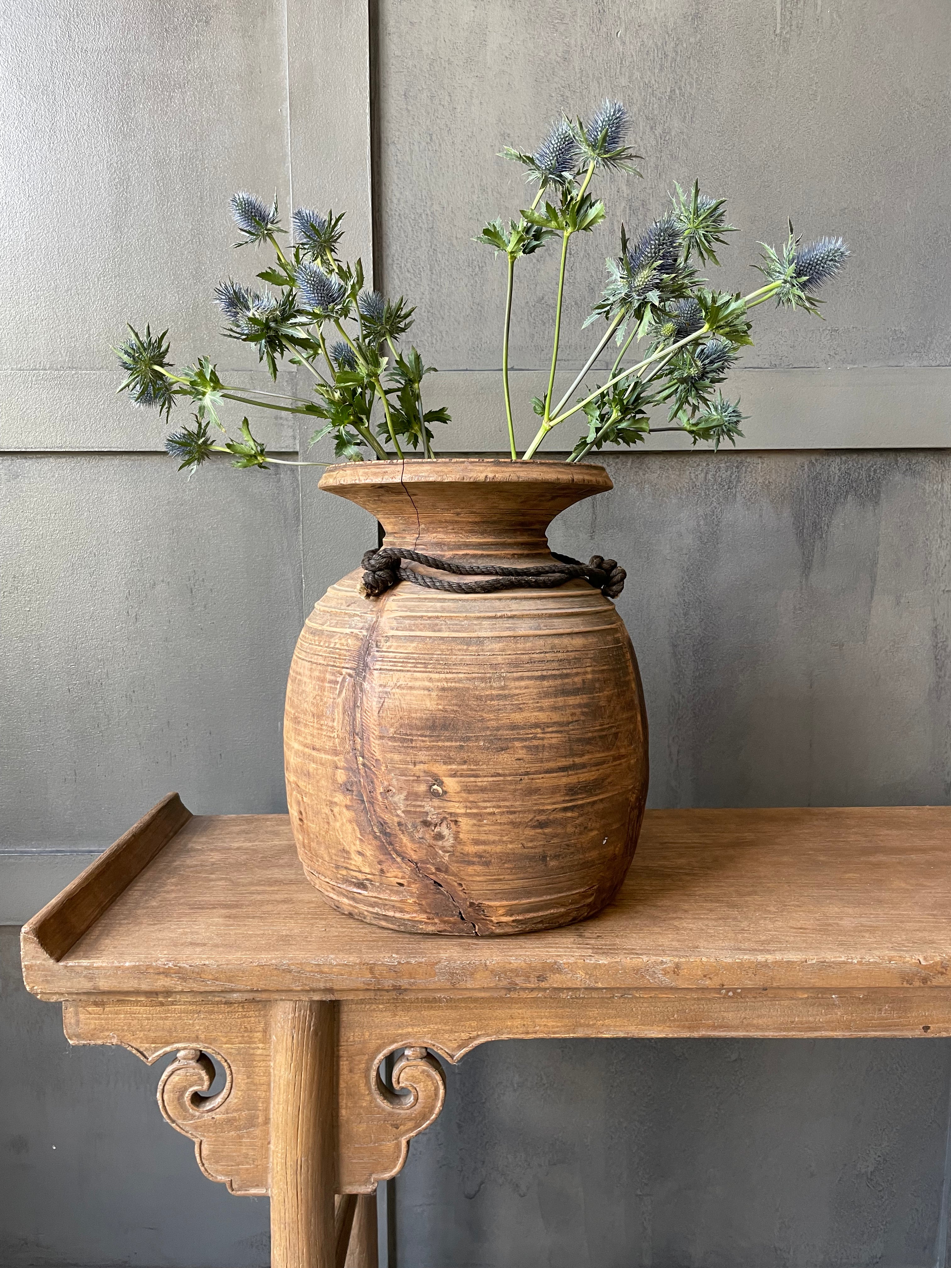 Diese alten Holzkrüge wurden früher oft verwendet, um Lebensmittel zu lagern oder sogar um Butter darin zu schlagen. Ob allein für sich selbst oder zum Beispiel mit Trockenblumen dekoriert, immer ein wunderschönes Interior Accessoire! Die Form variiert je nach Krug.