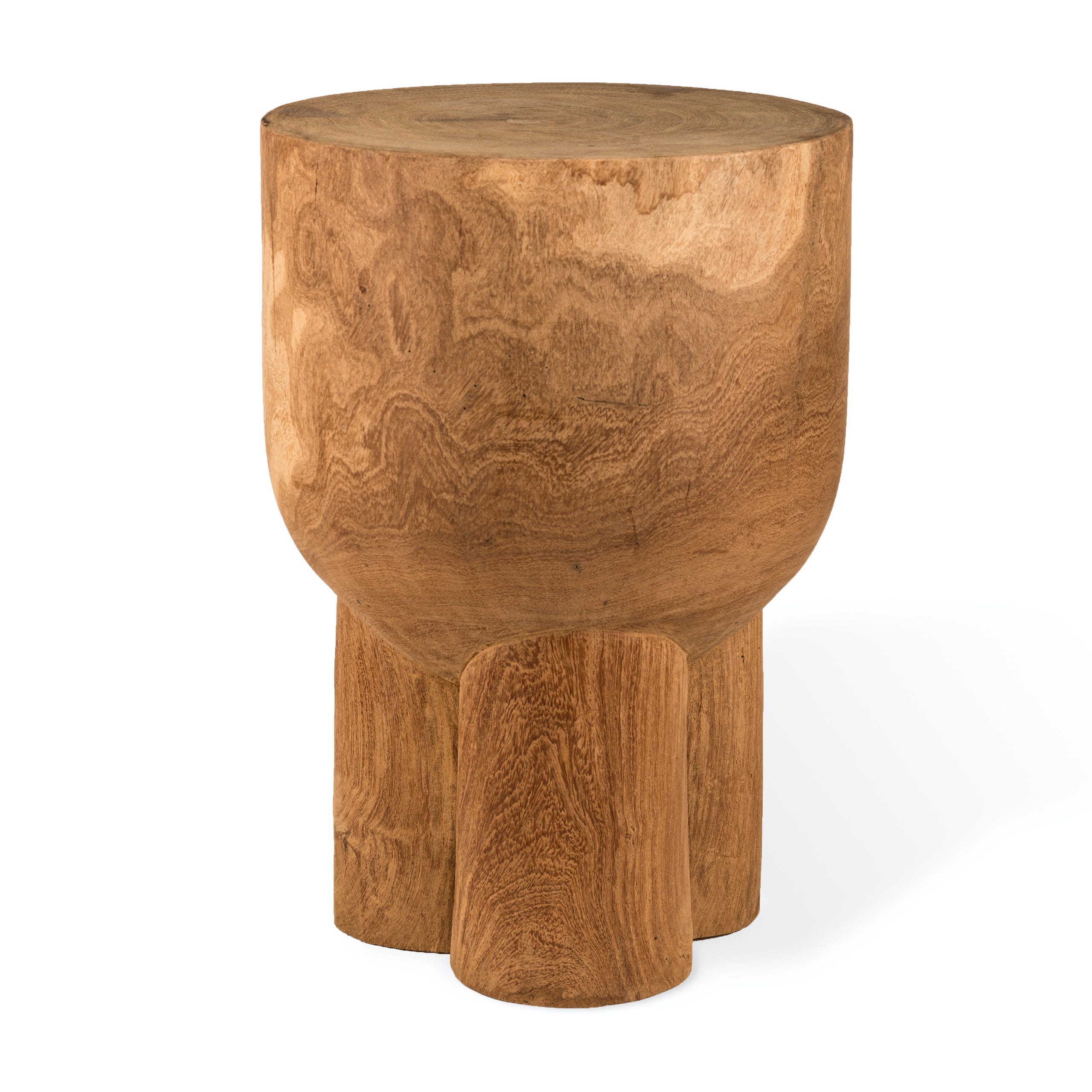 Hocker aus einem Block Massivholz, traditionell hergestellt.