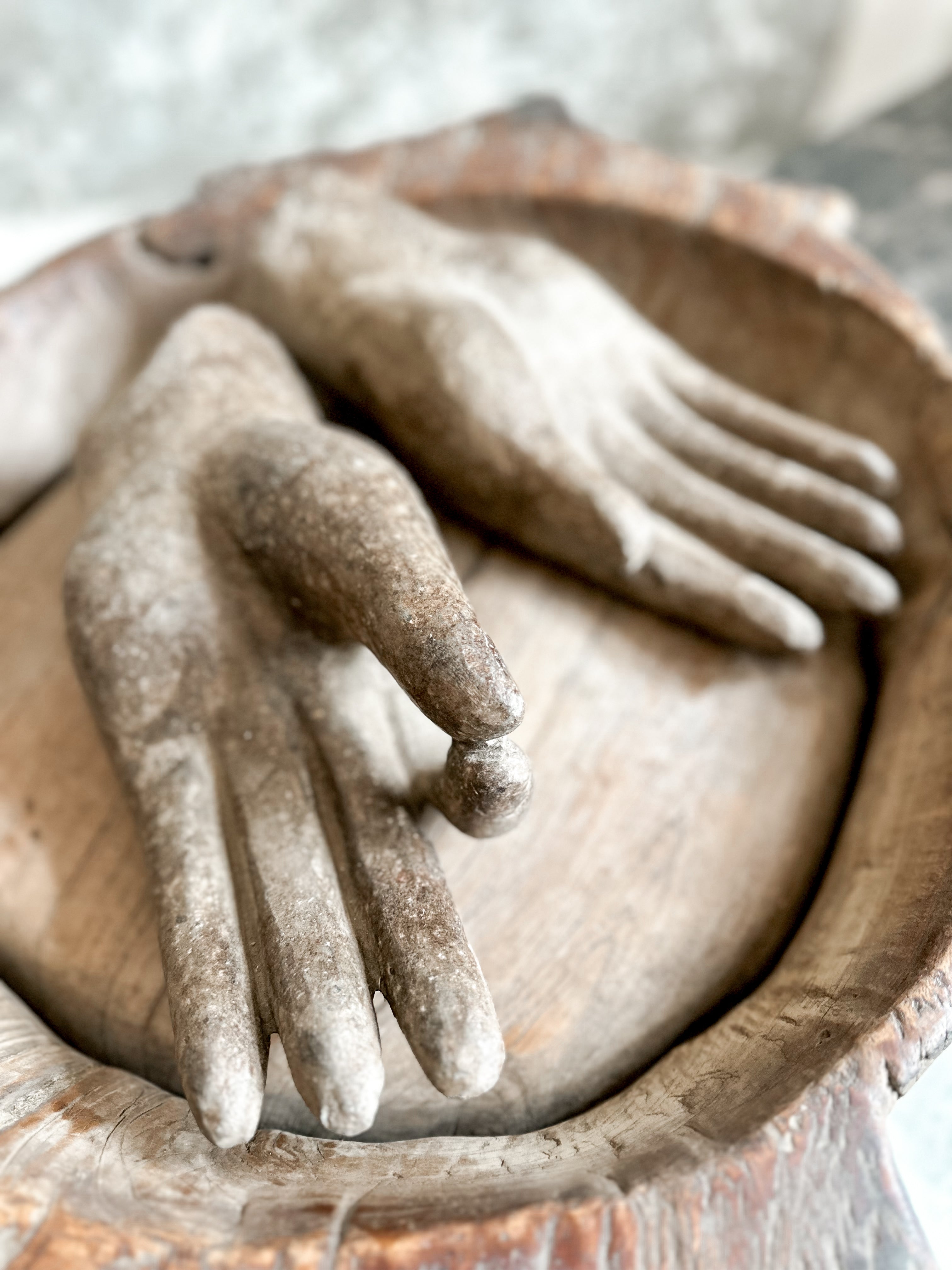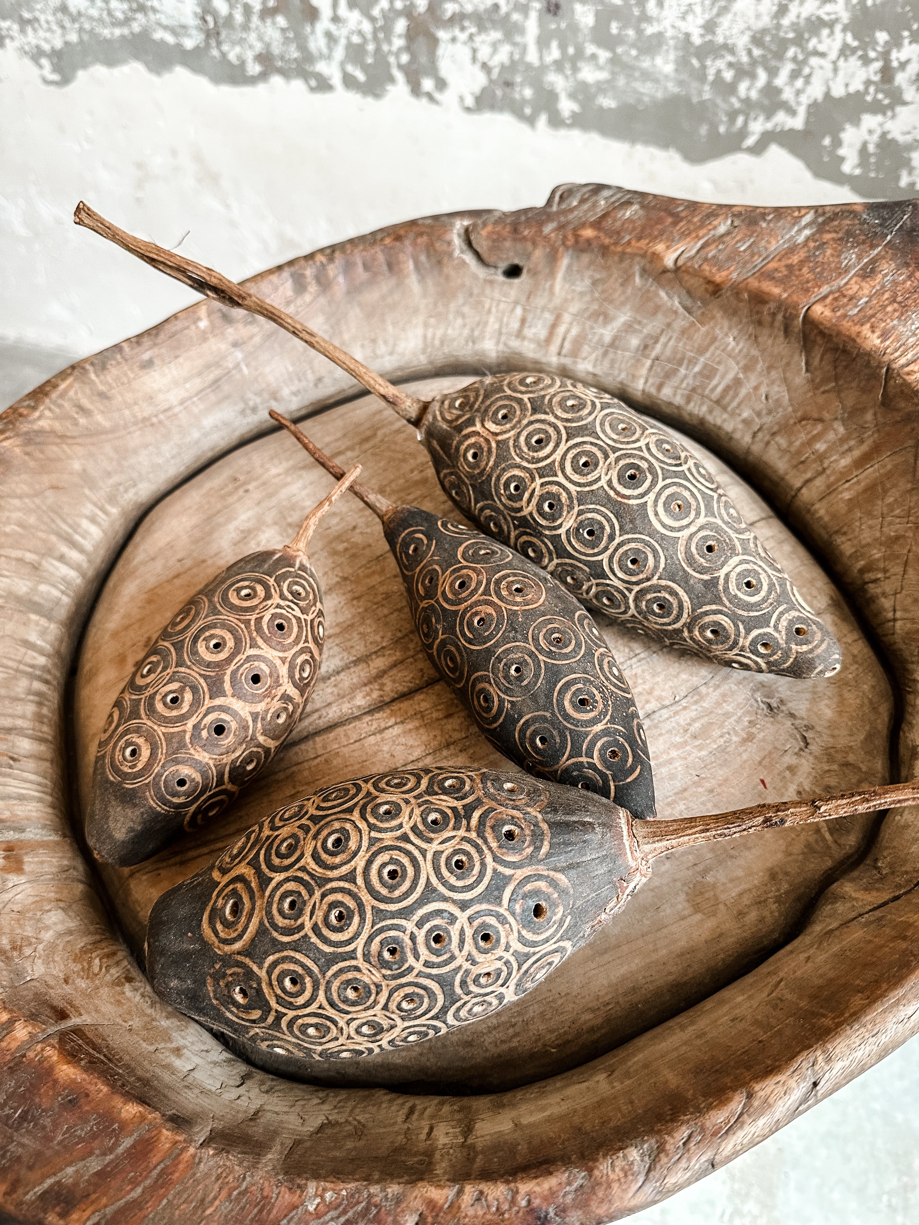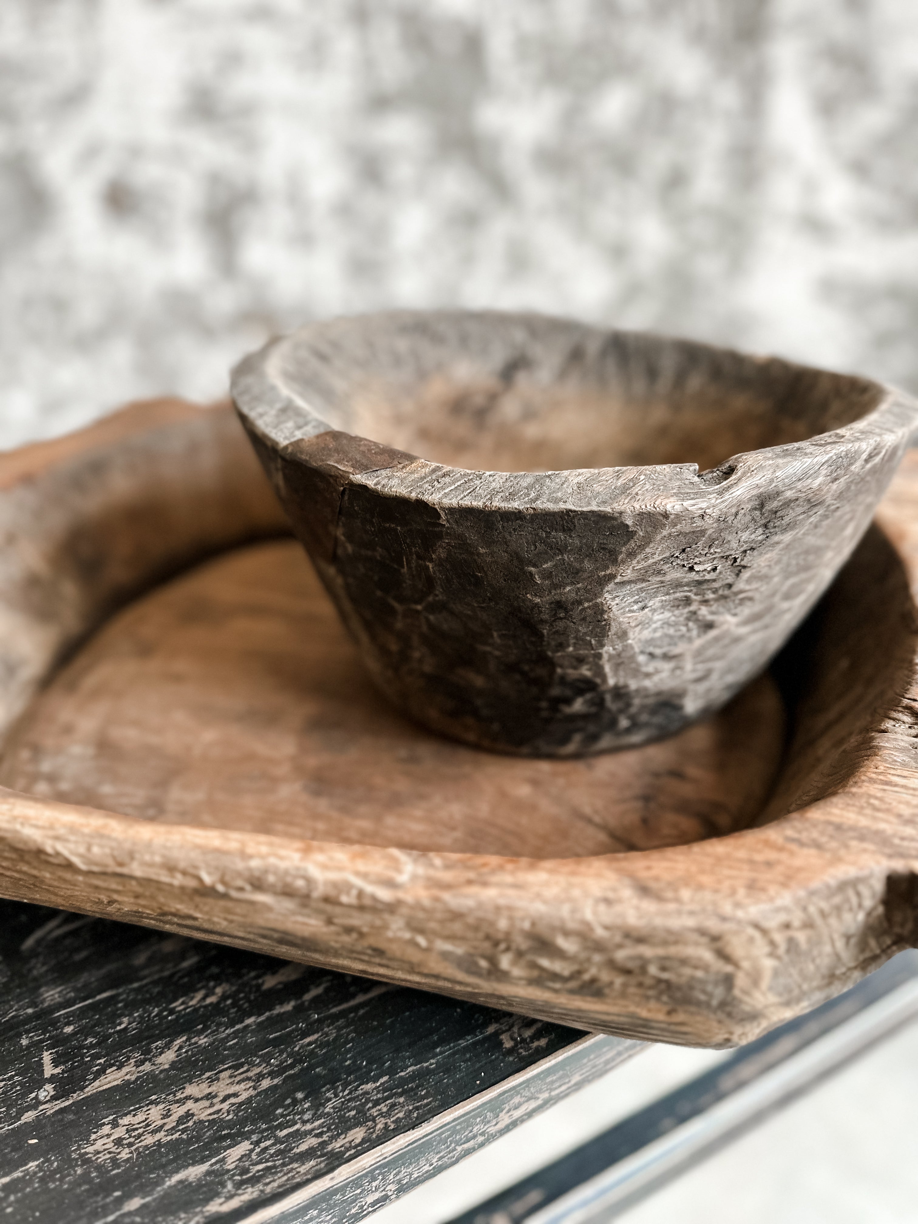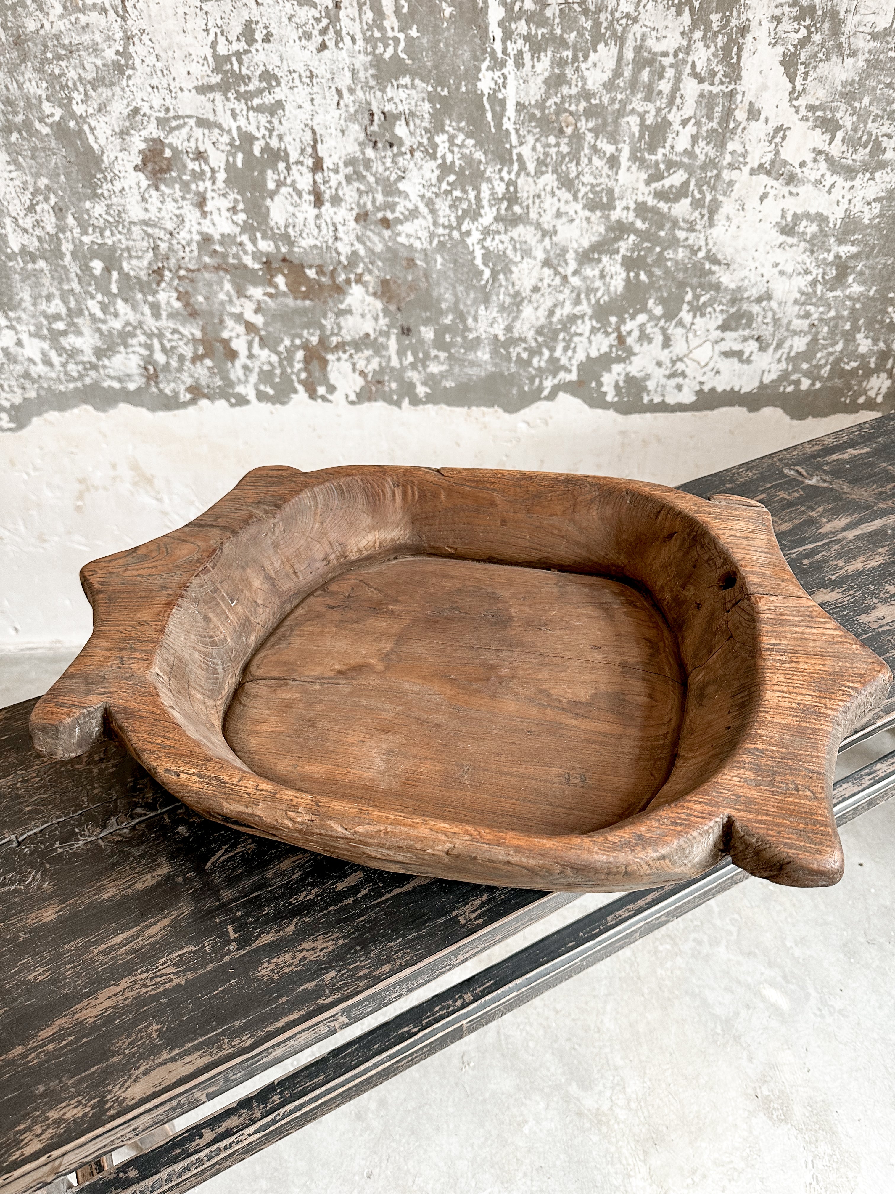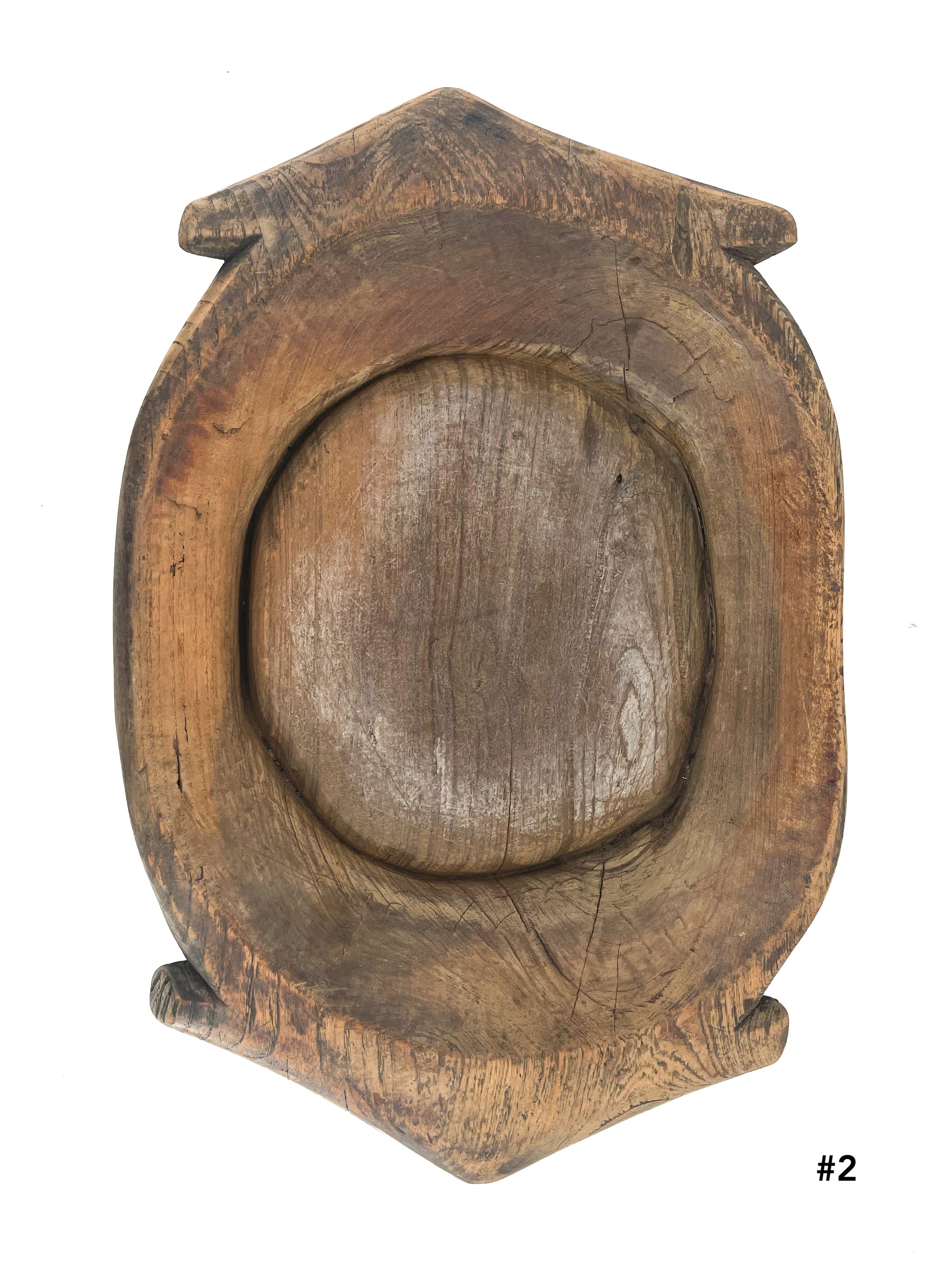 Alte, massive Holzschale aus Indien, jede Schale hat einen eigenen Charakter und eine eigene Form (jedoch alle ähnlich).