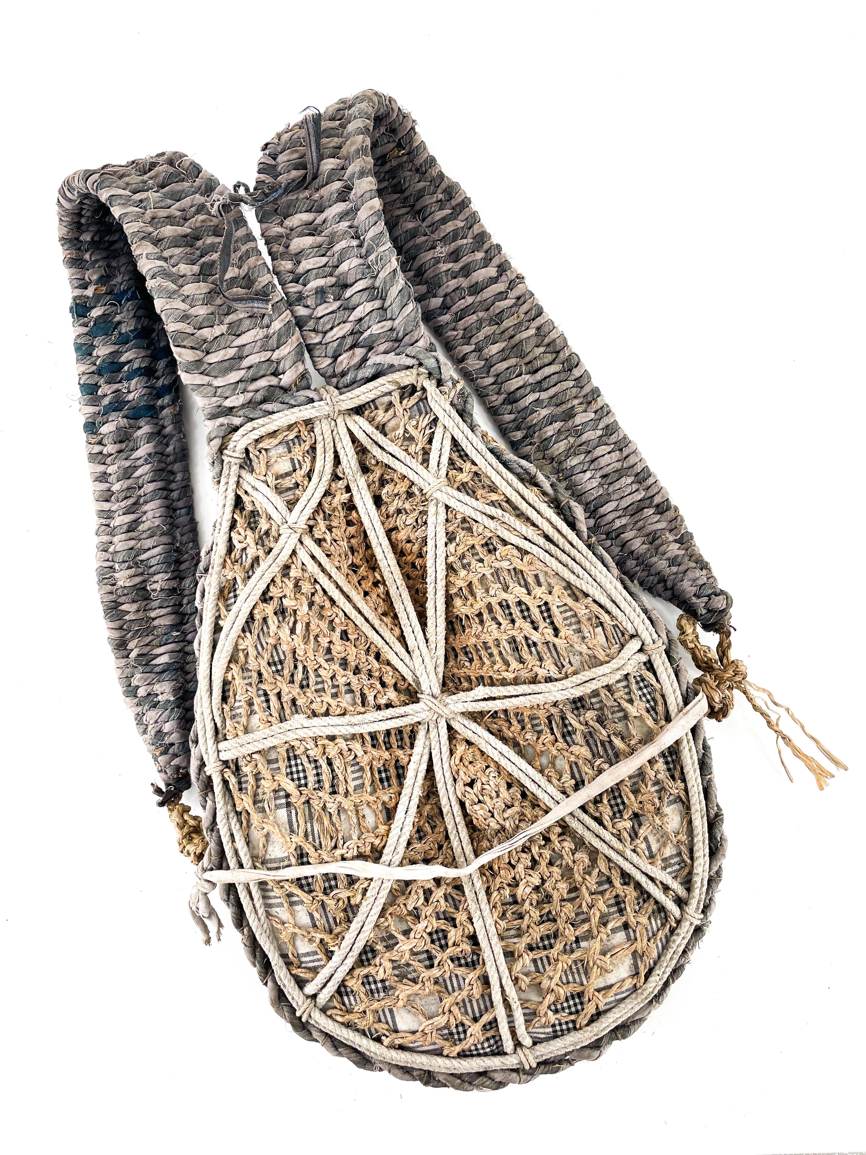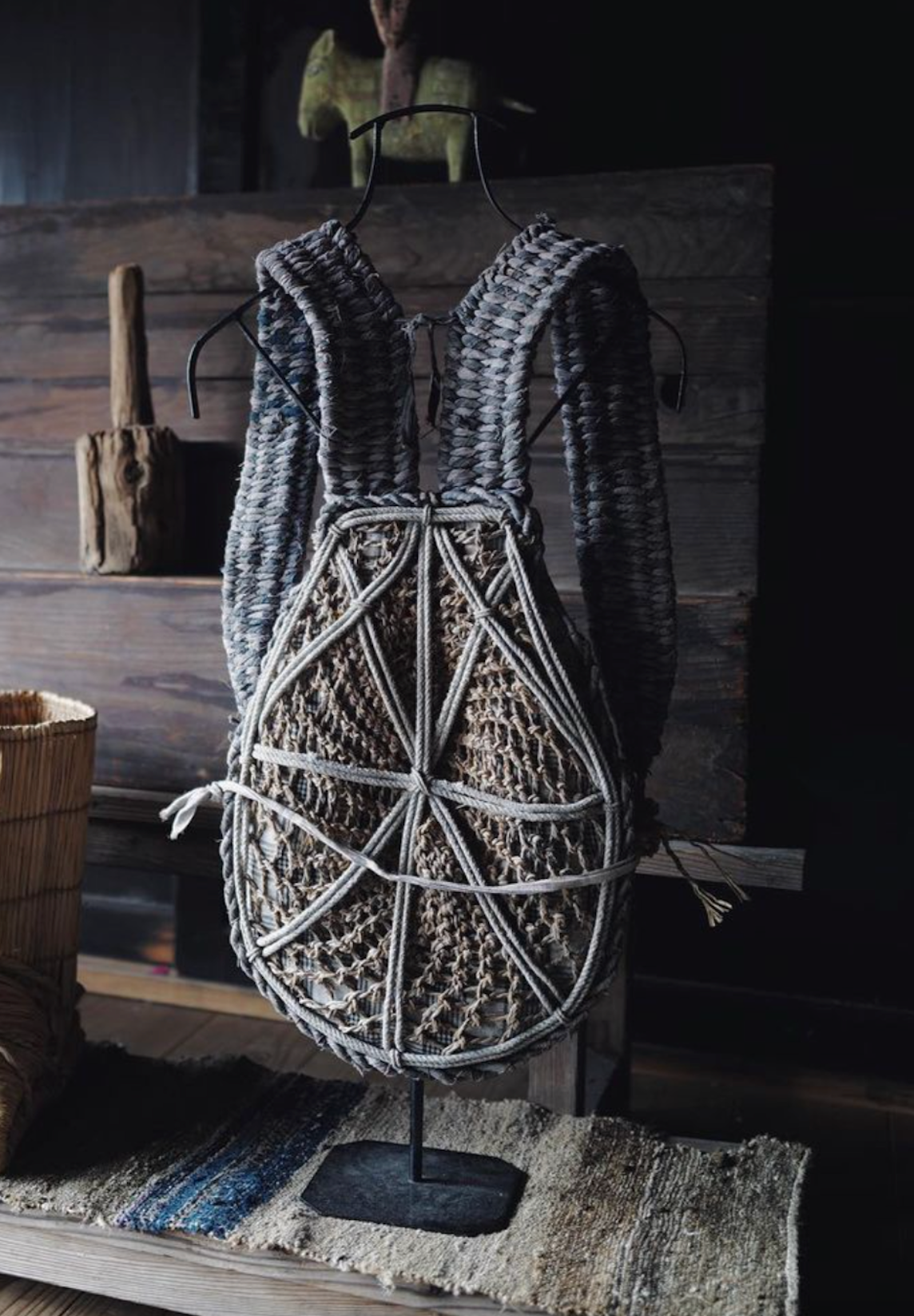 Dieser Vintage Rucksack wurde von japanischen Bauern im Winter hergestellt, wenn deren Landwirtschaft sprichwörtlich auf Eis lag. Aus Baumwolle und Stroh.