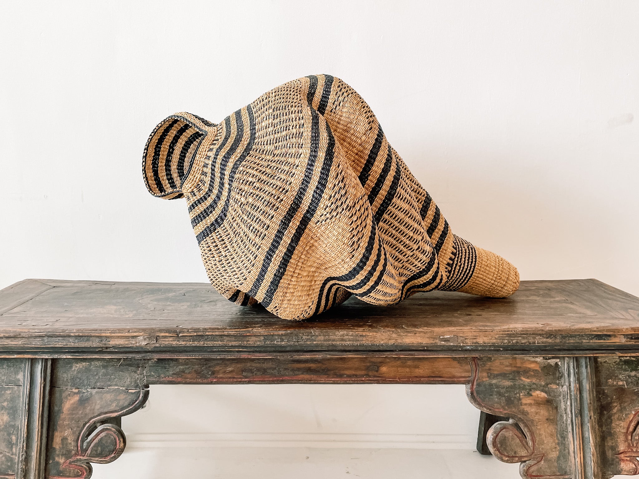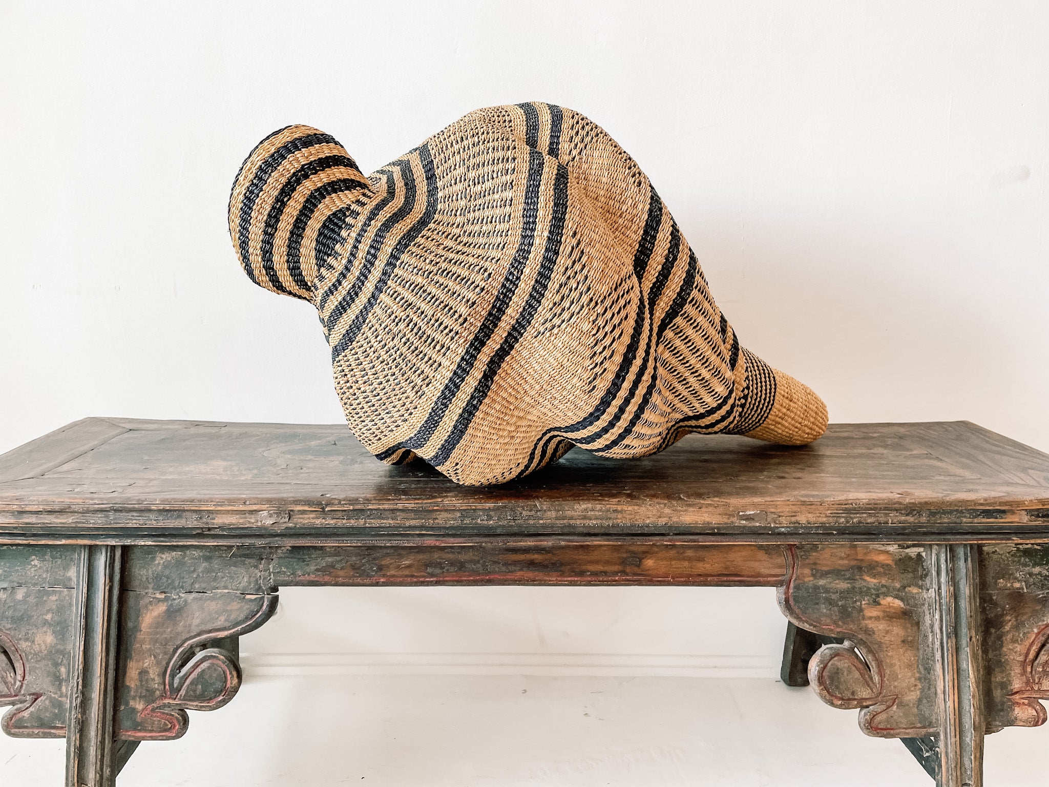 Katayeli-tia (Muschel) ... oder der Schneckenkorb, wie er auch liebevoll genannt wird. Kwame hat diesen exklusiven Korb in Form einer Muschelschale im Laufe von 3 ½ Wochen hergestellt, und wir sind von seiner Schönheit und Multidimensionalität beeindruckt. Lokale Korbtraditionen zu ehren und zeitgenössische Formen zu schaffen, das ist Kunst!