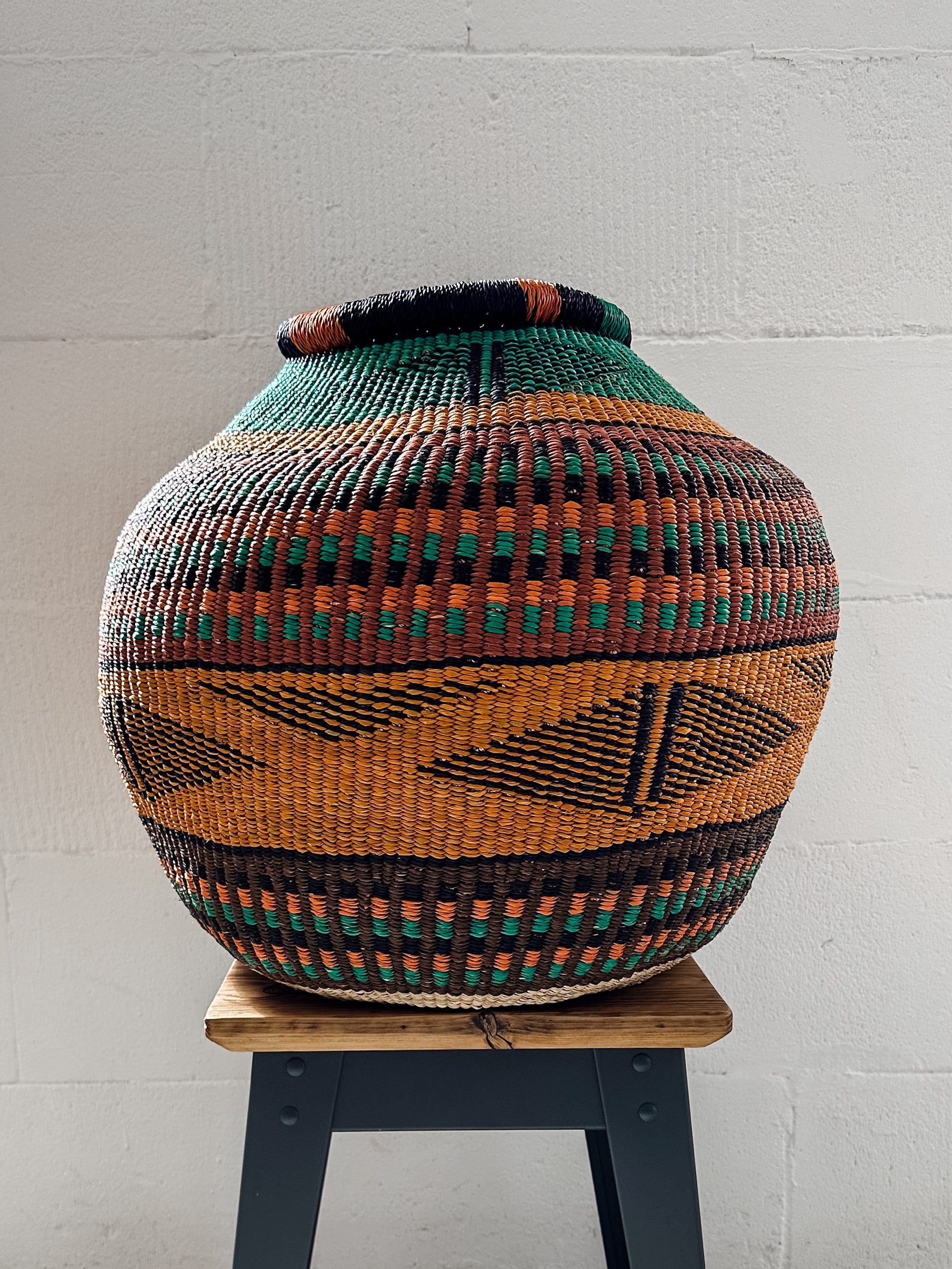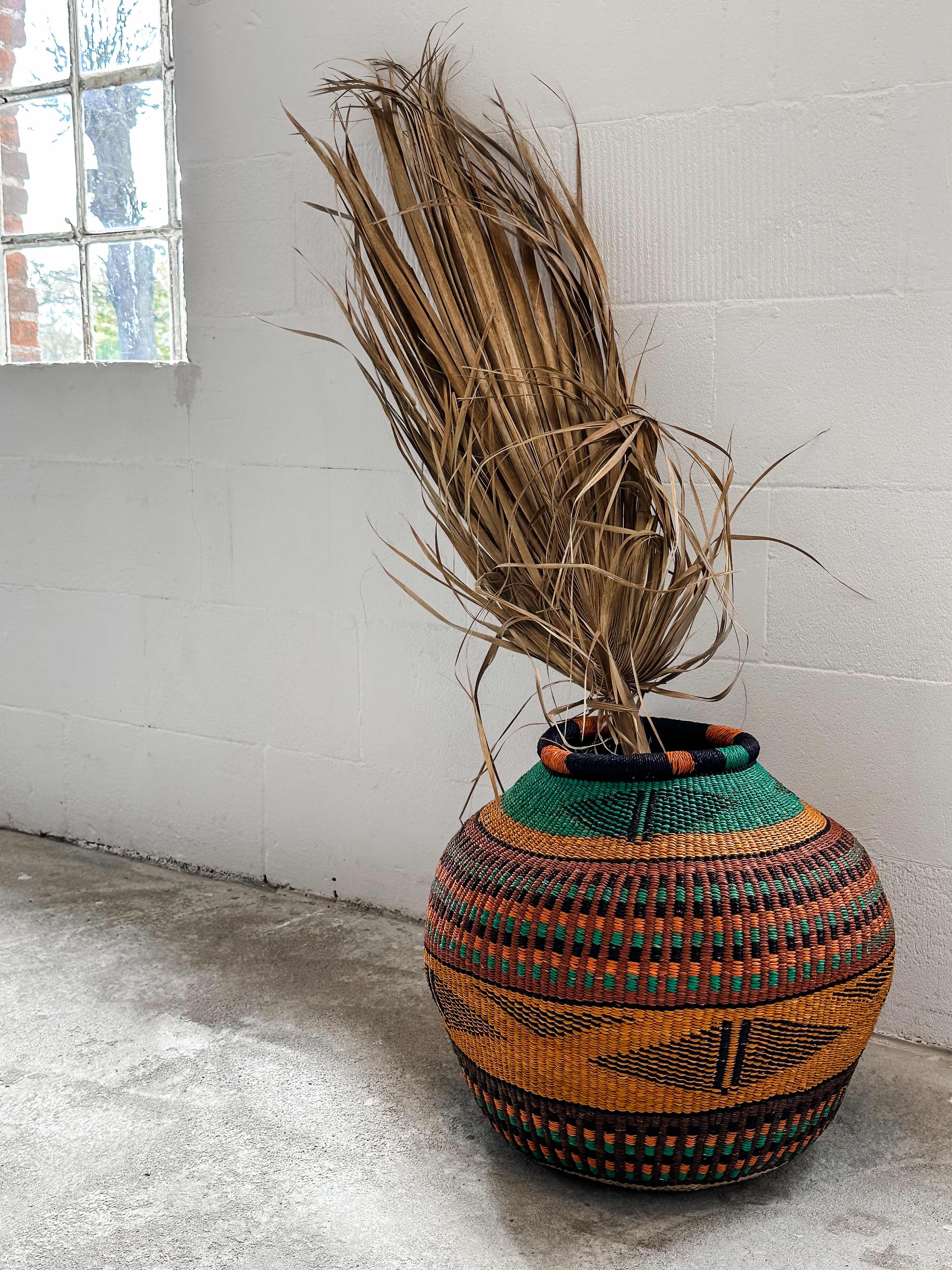 Dieser bauchige Korb ist eine Meisterleistung des Webens und trotz des einfachen Designs schwierig zu fertigen. Es braucht einen erfahrenen Handwerker, um die Proportionen so elegant zu meistern.
