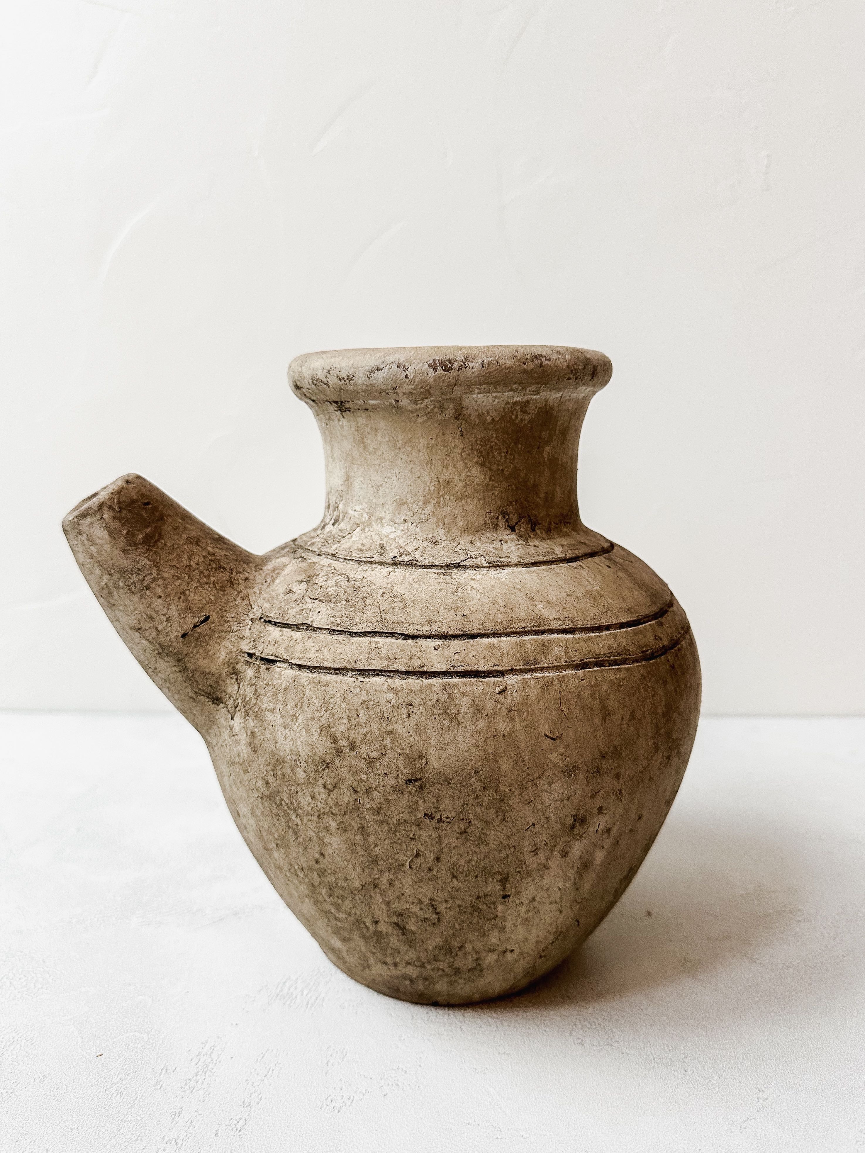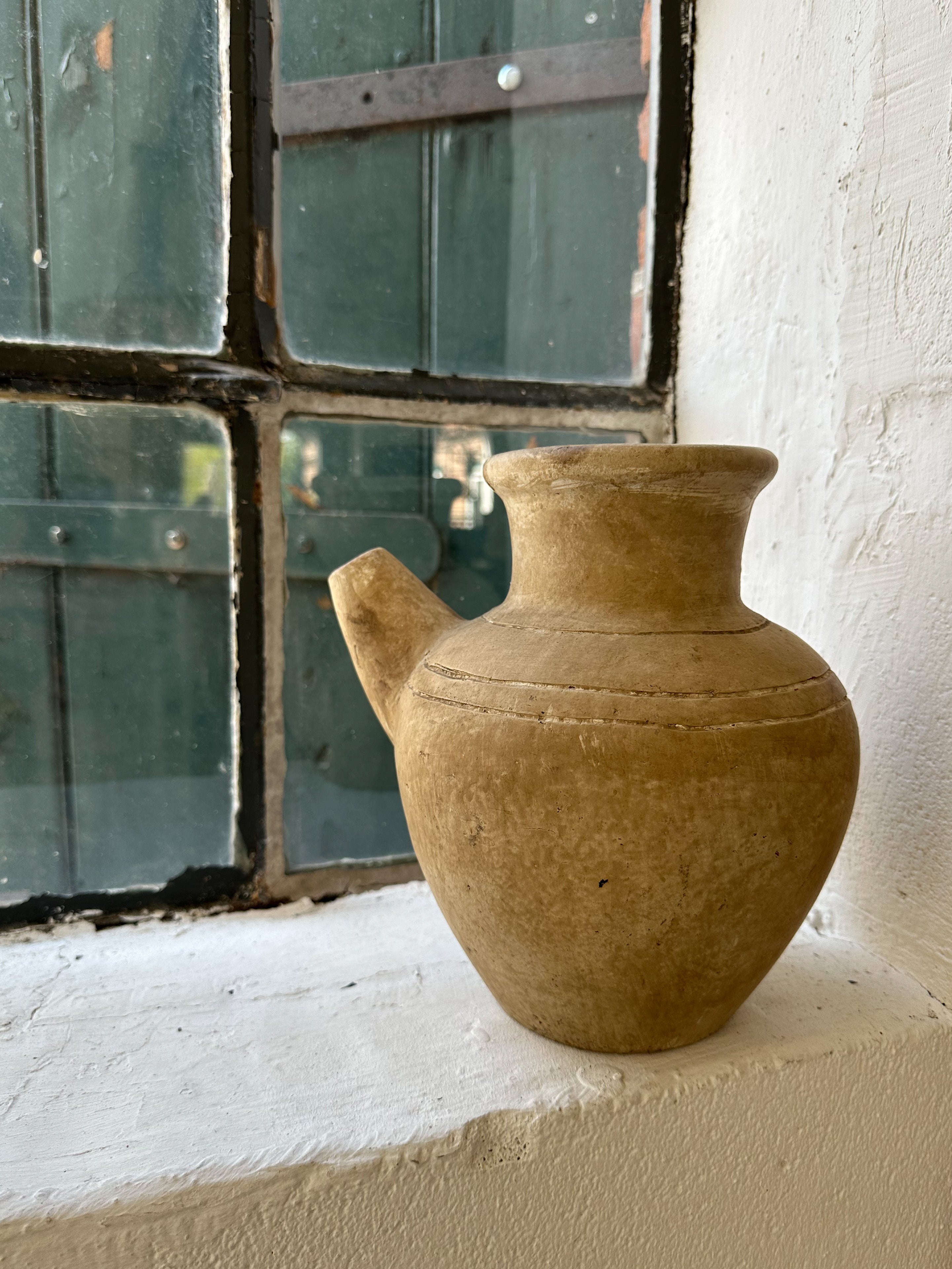 Wundervoller alter Wasserkrug aus Terrakotta mit seitlichem Ausguss. Dieses Gefäß ist für sich selbst ein schönes Dekorationsobjekt, aber auch einzigartig als Vase.